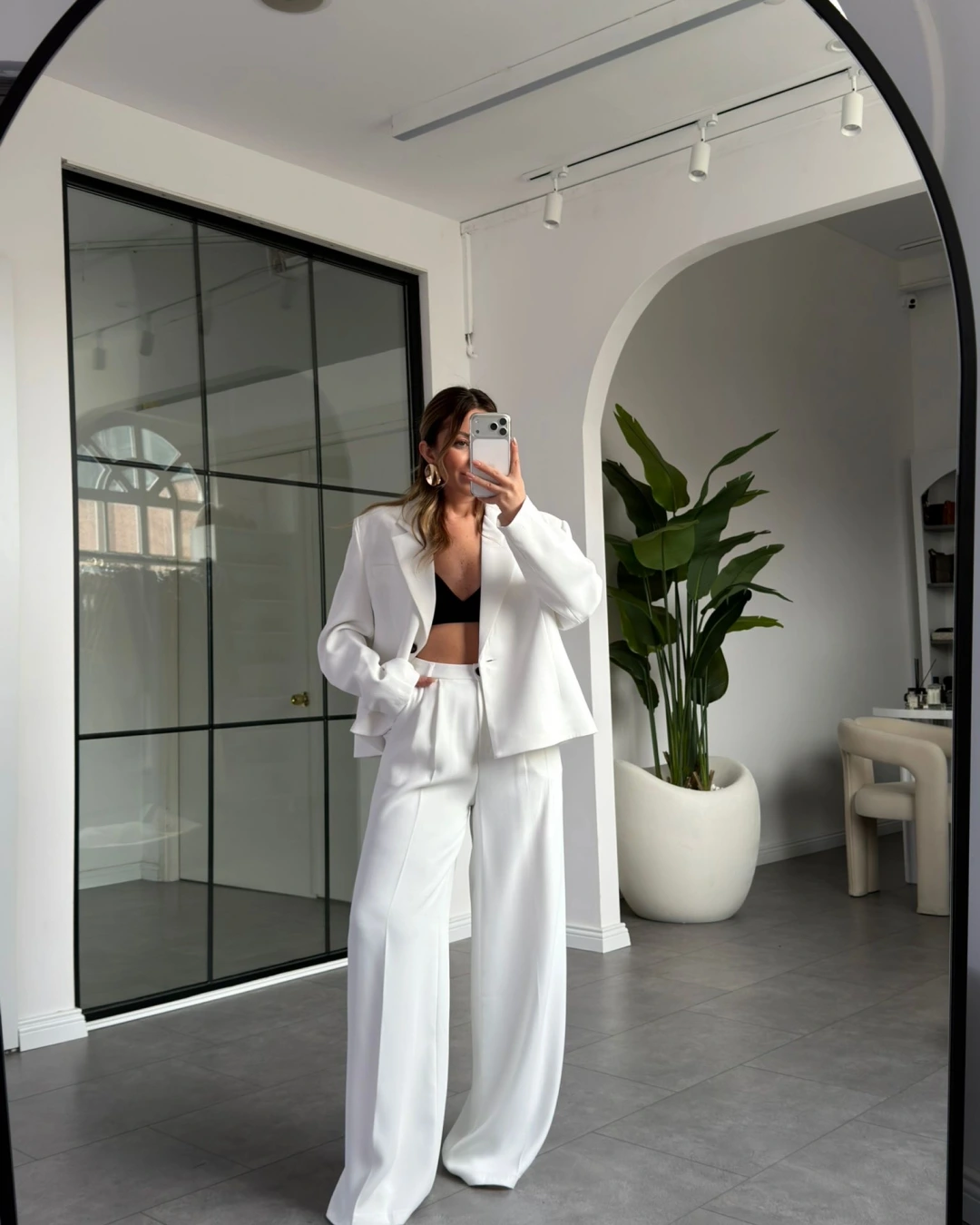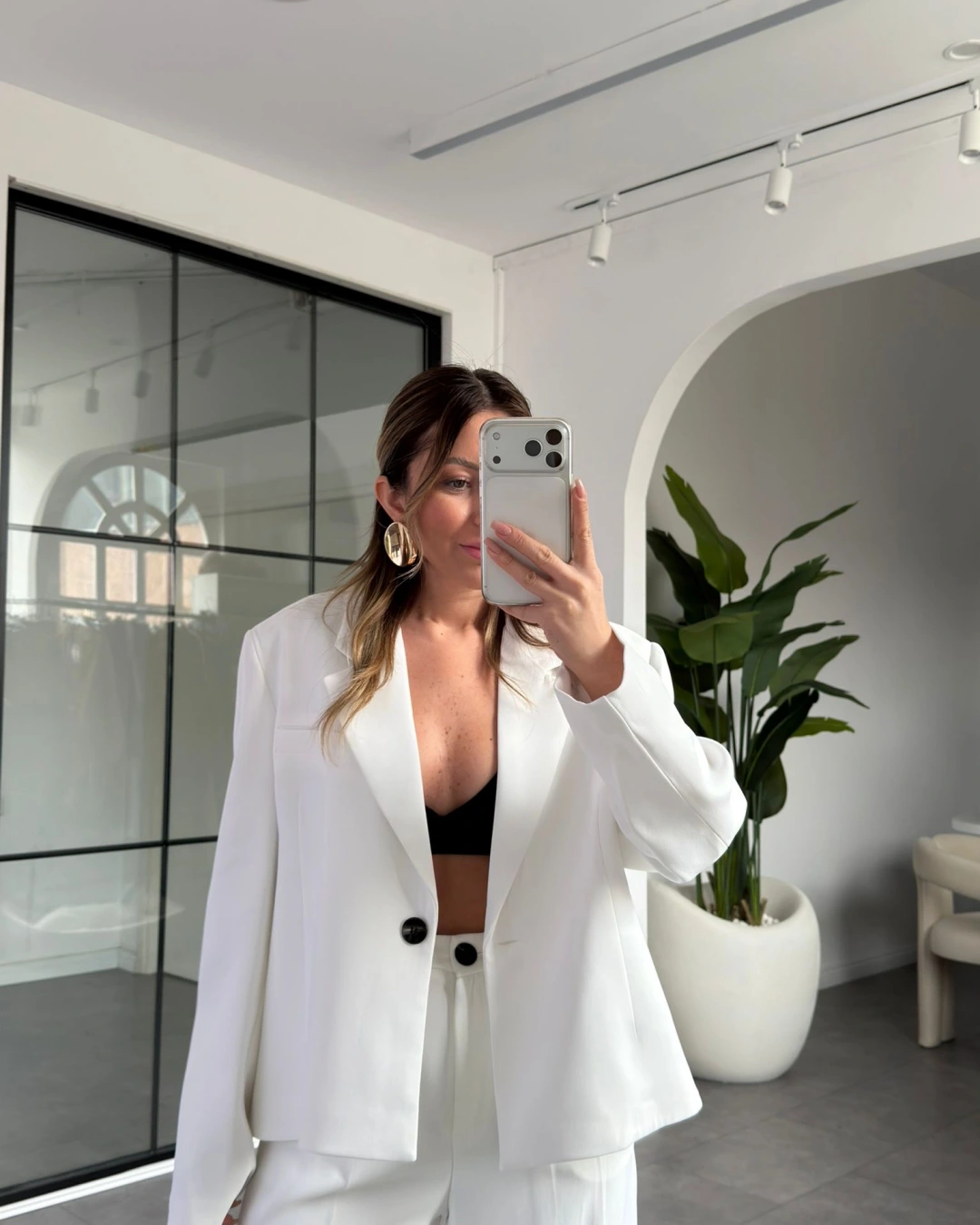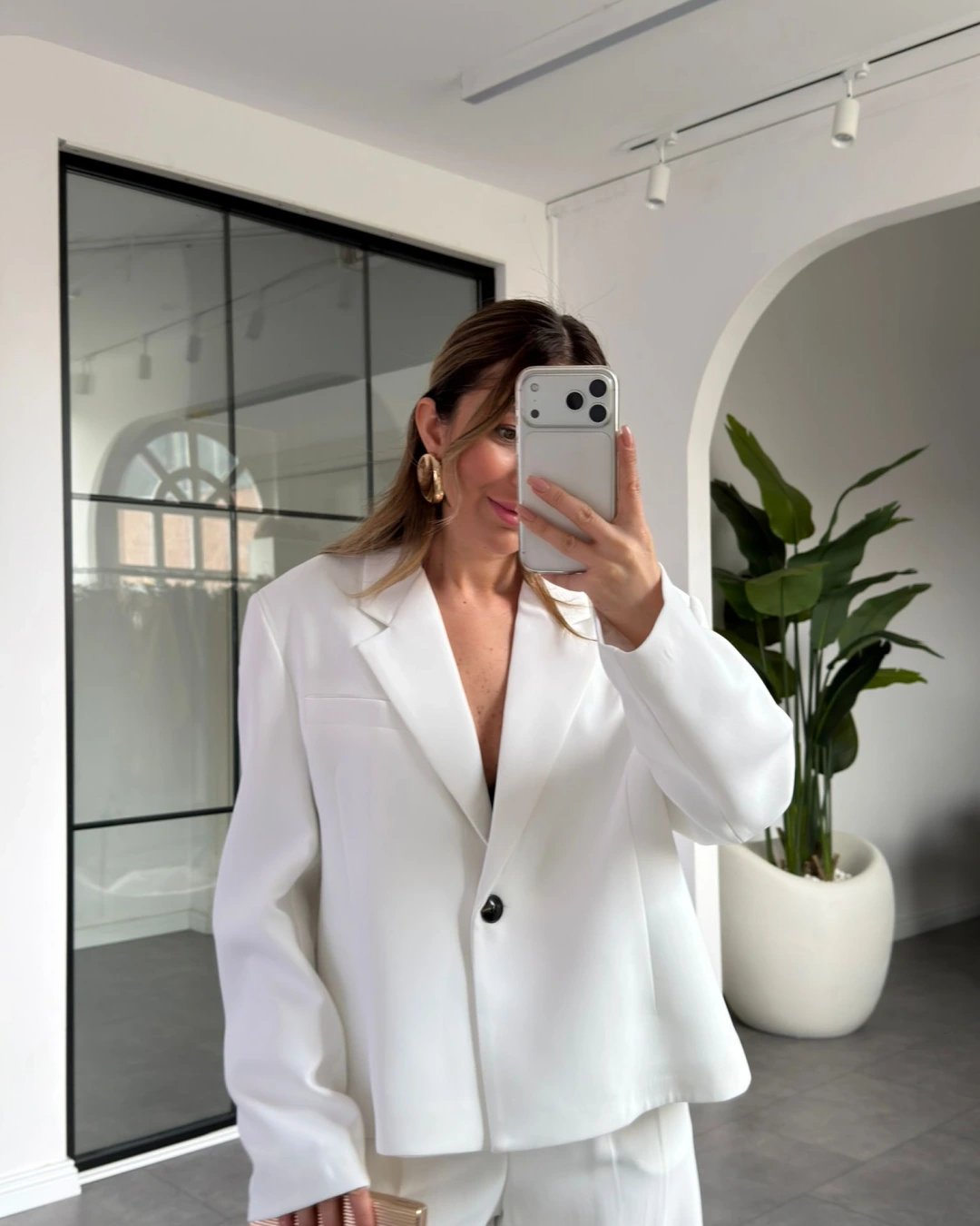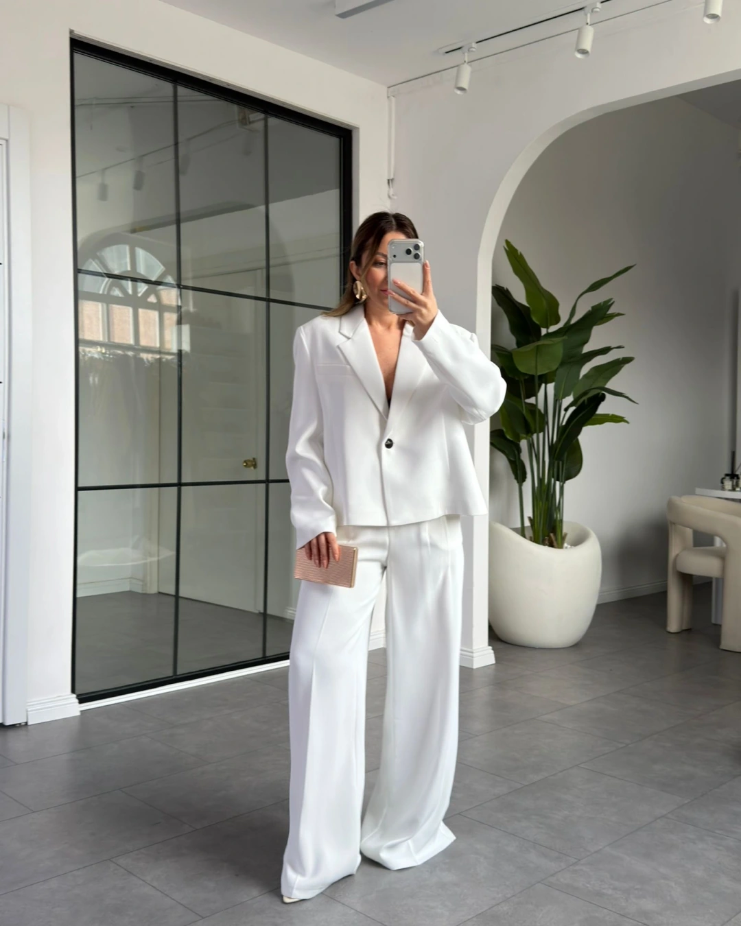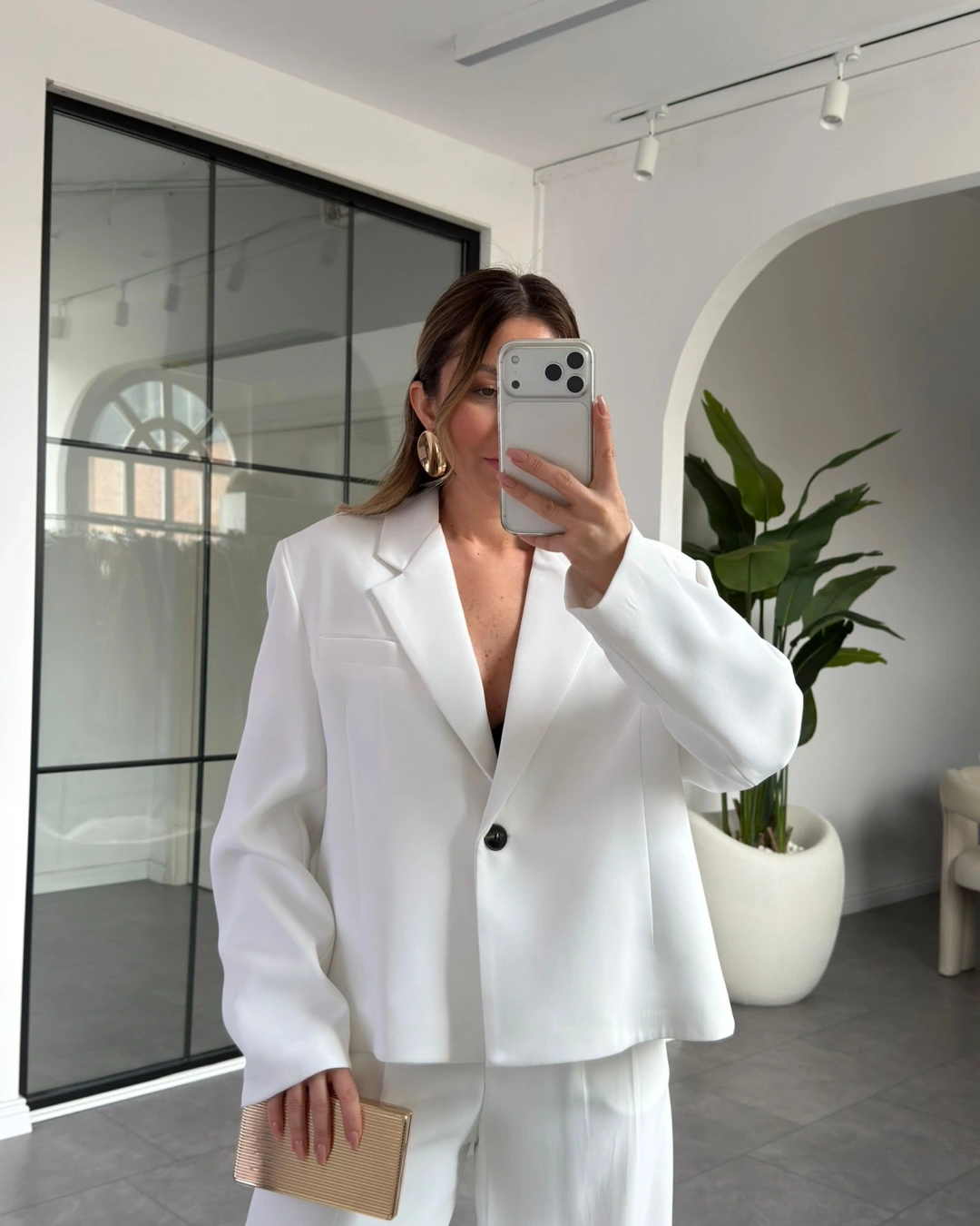 BEYAZ TEK DÜĞMELİ CEKET PANTOLON TAKIM 9489
