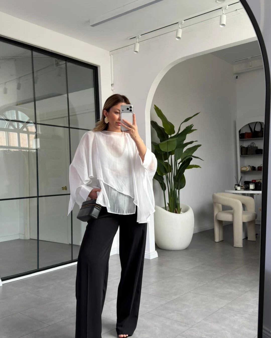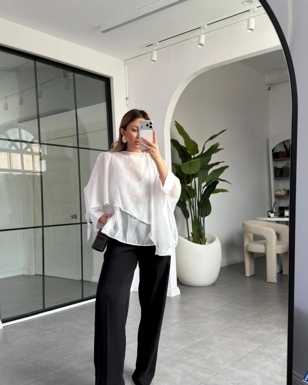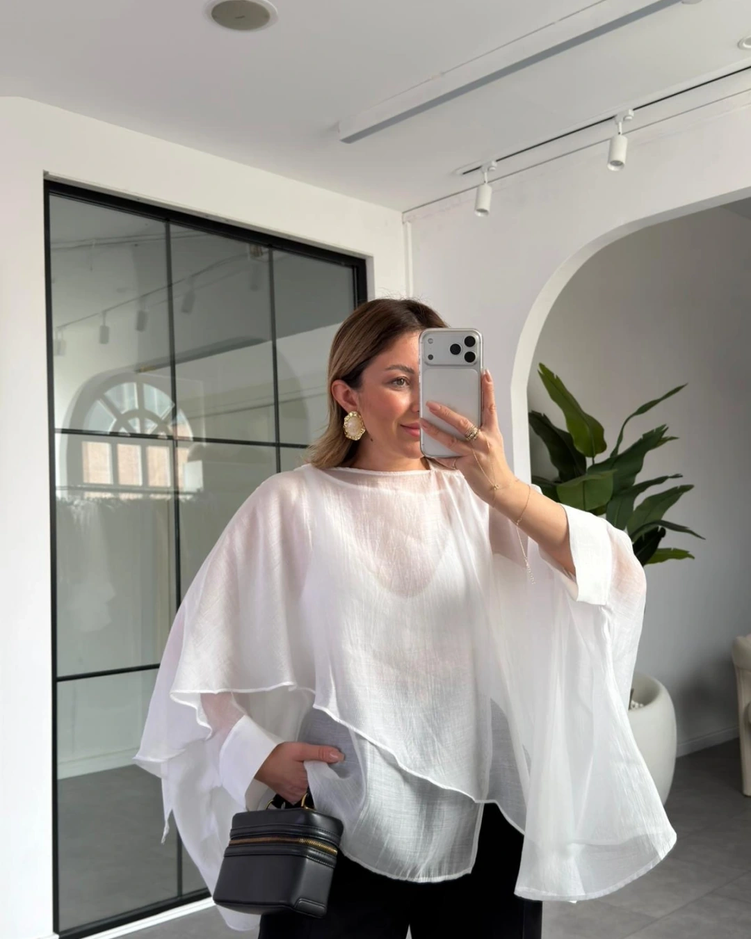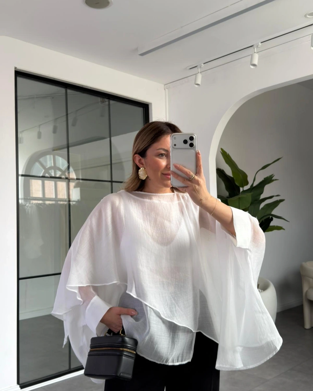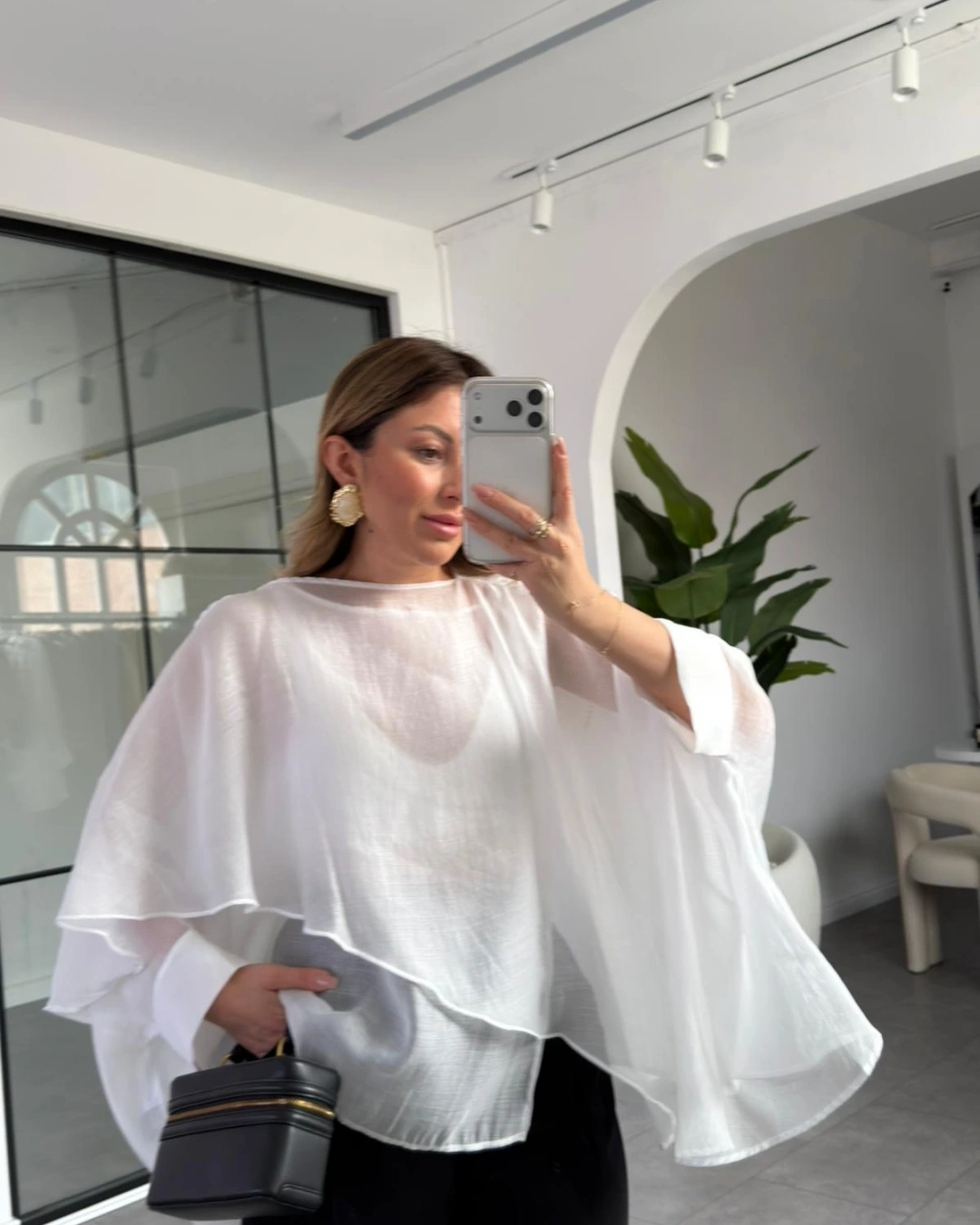 BEYAZ UÇUŞAN PELERİN BLUZ 5026