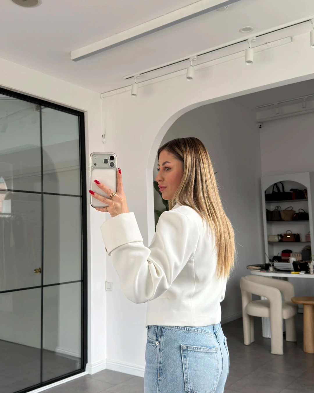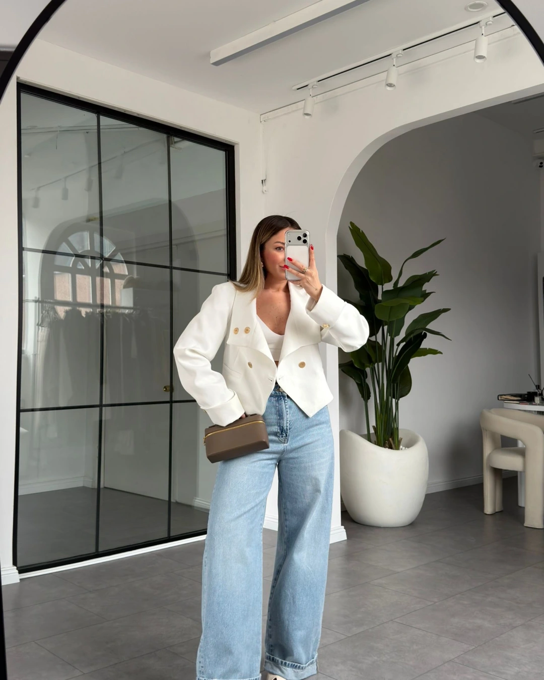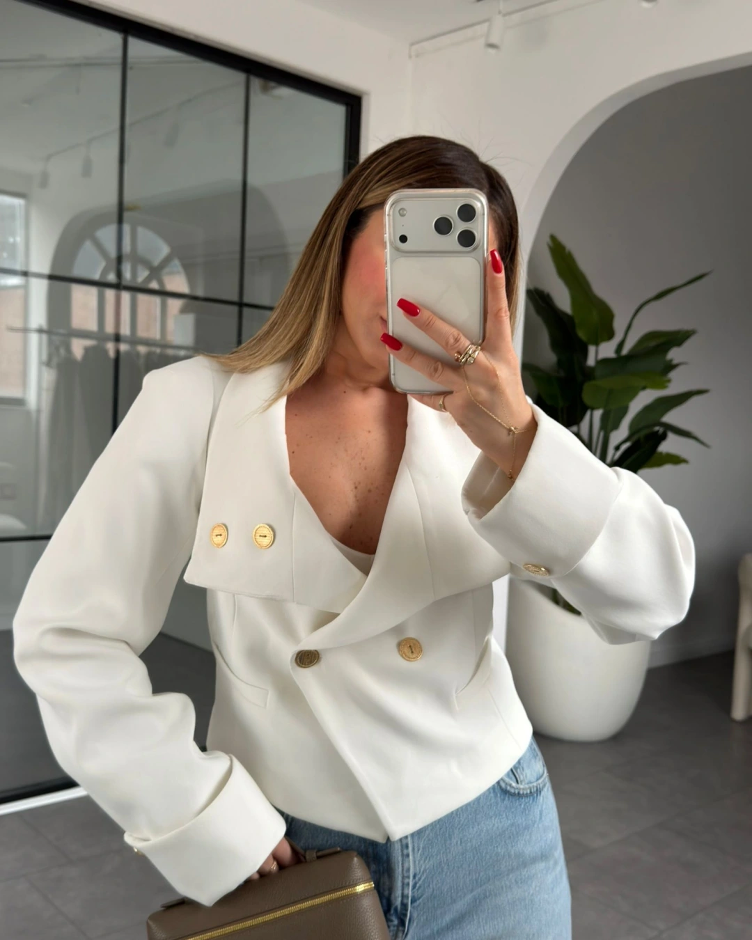 BEYAZ VATKALI GOLD DÜĞMELİ CROP CEKET 01204