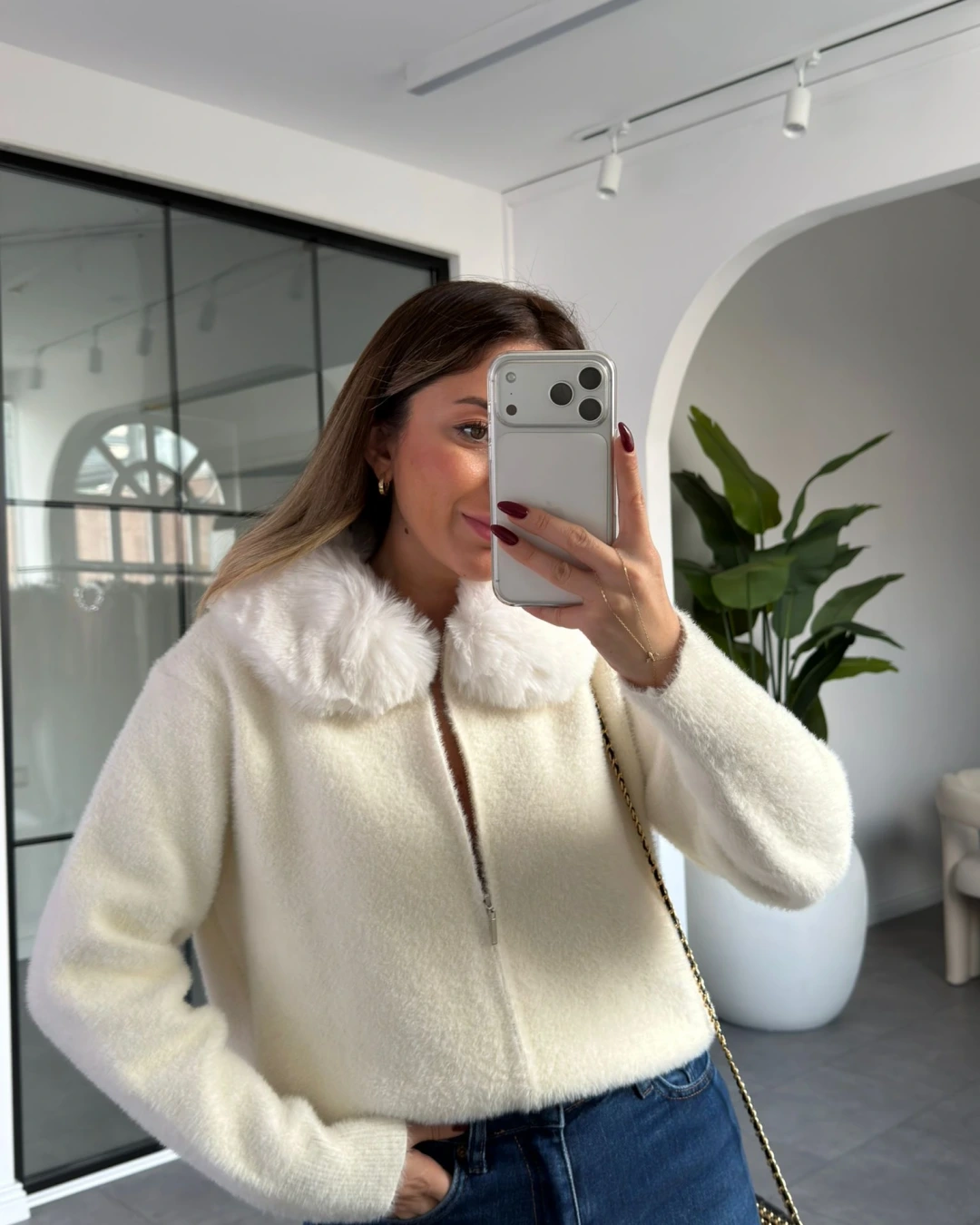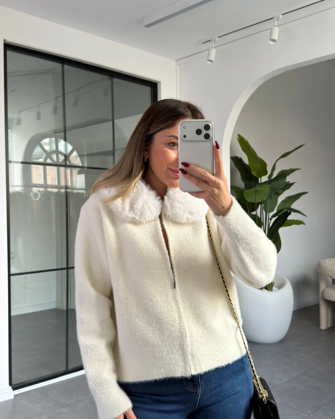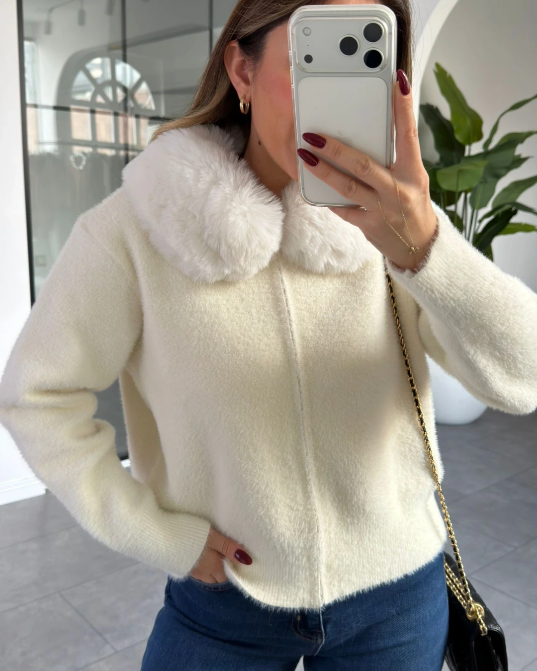 BEYAZ YAKA KÜRK DETAY YUMUŞACIK HIRKA
