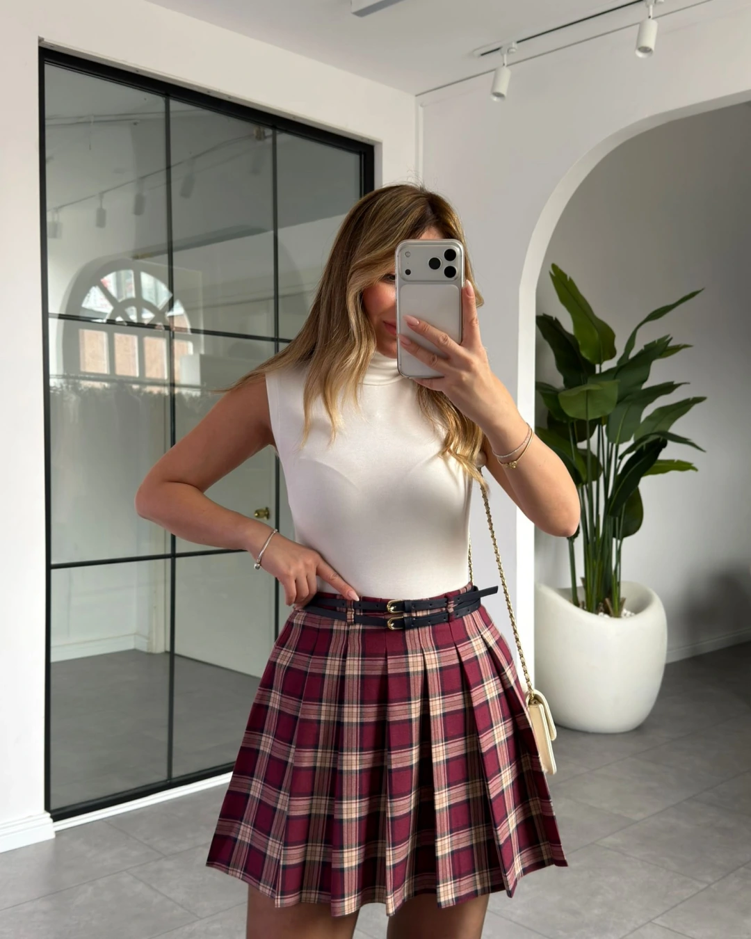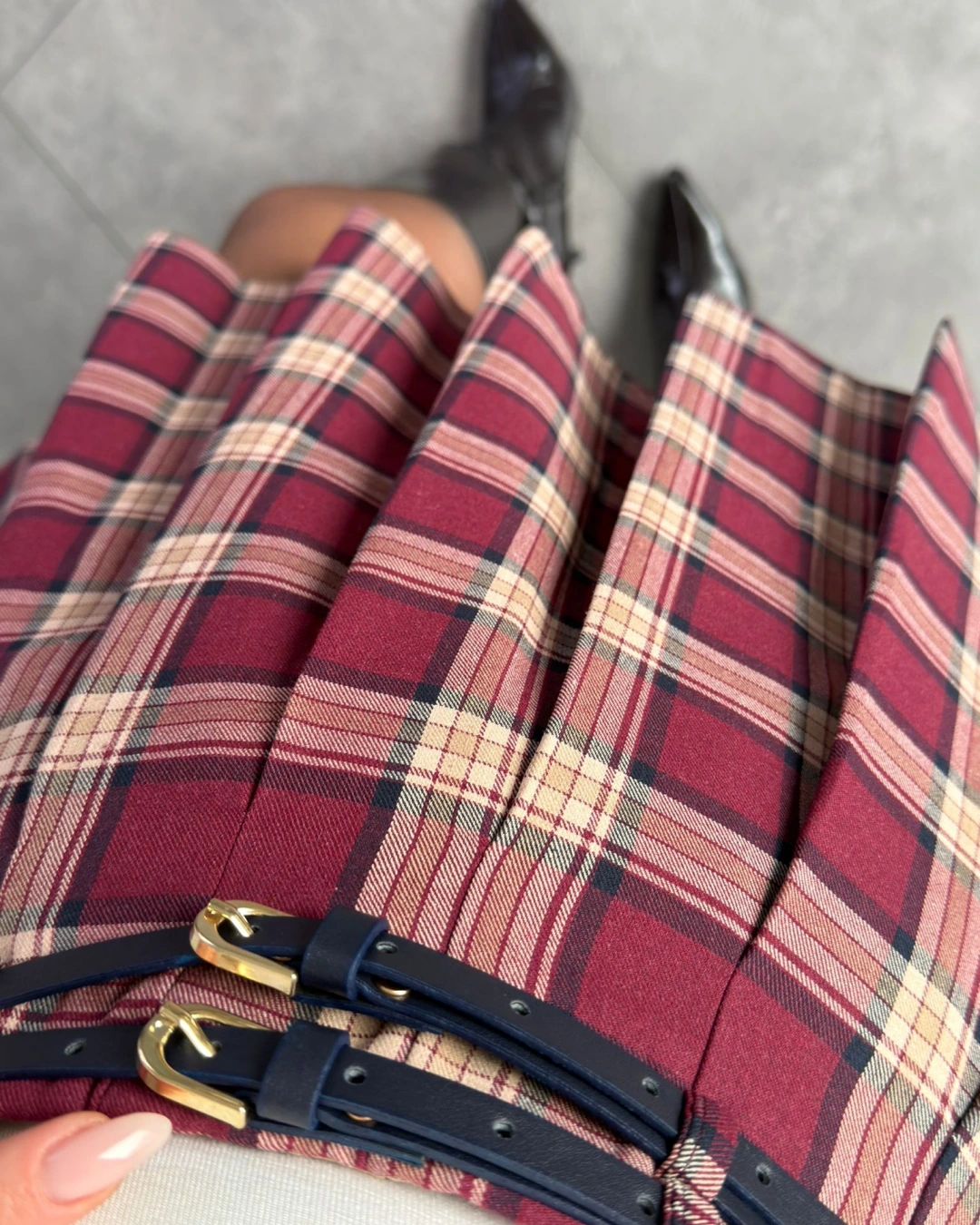 BORDO EKOSE DESEN PİLELİ MİNİ ETEK