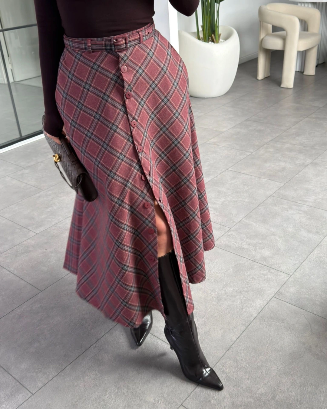 BORDO KEMERLİ ÖNÜ DÜĞMELİ EKOSE ETEK