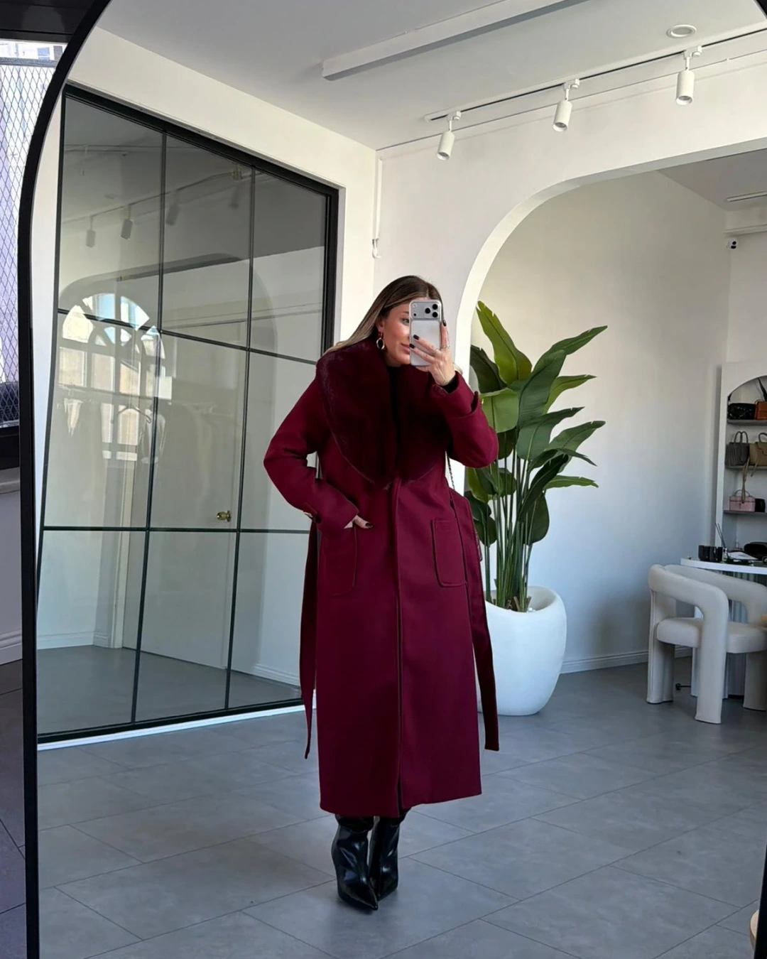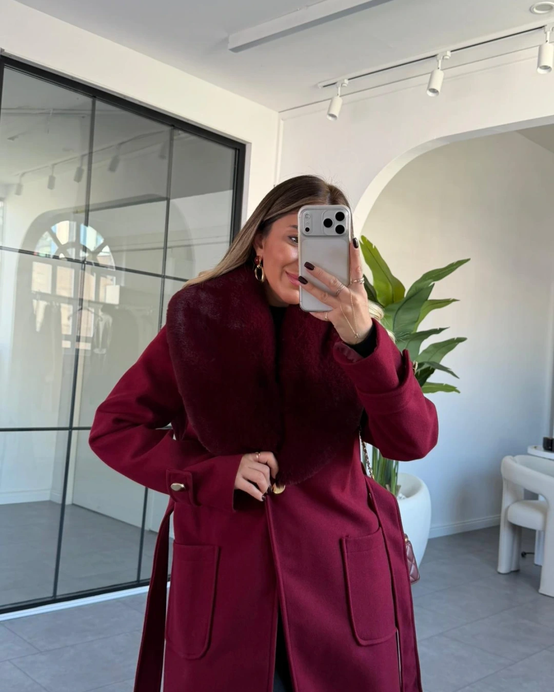 BORDO KÜRK YAKA PREMİUM KAŞE KABAN