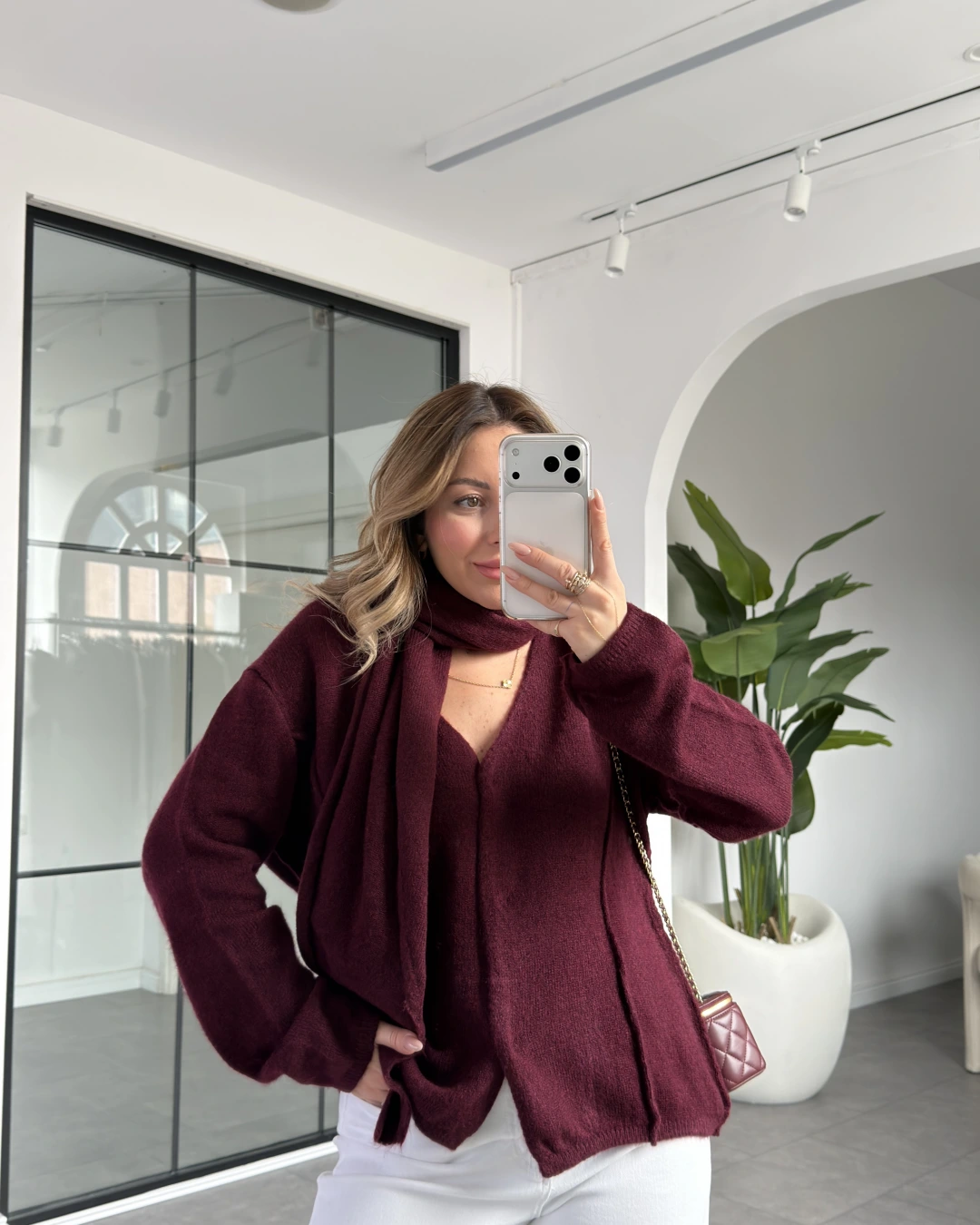 BORDO ŞAL DETAYLI YUMUŞACIK DOKUDA HIRKA