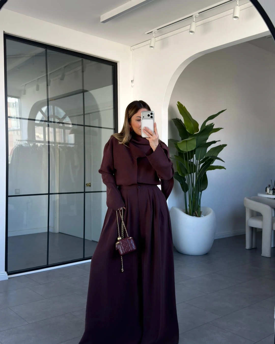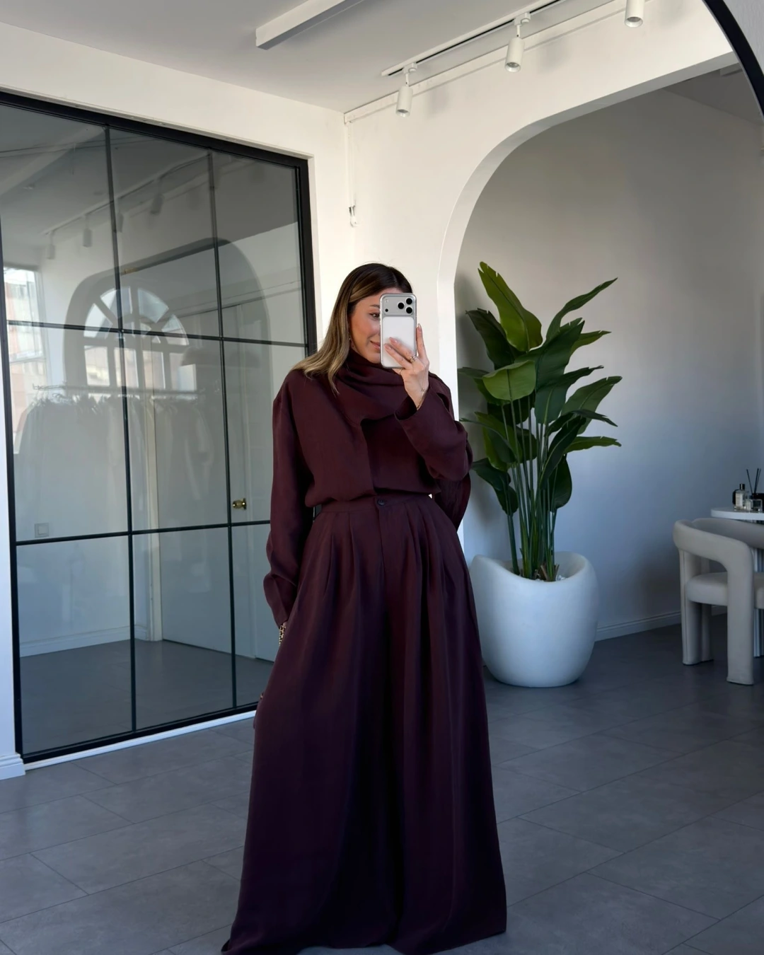 BORDO ŞAL YAKA GÖMLEK PANTOLON TAKIM 0679