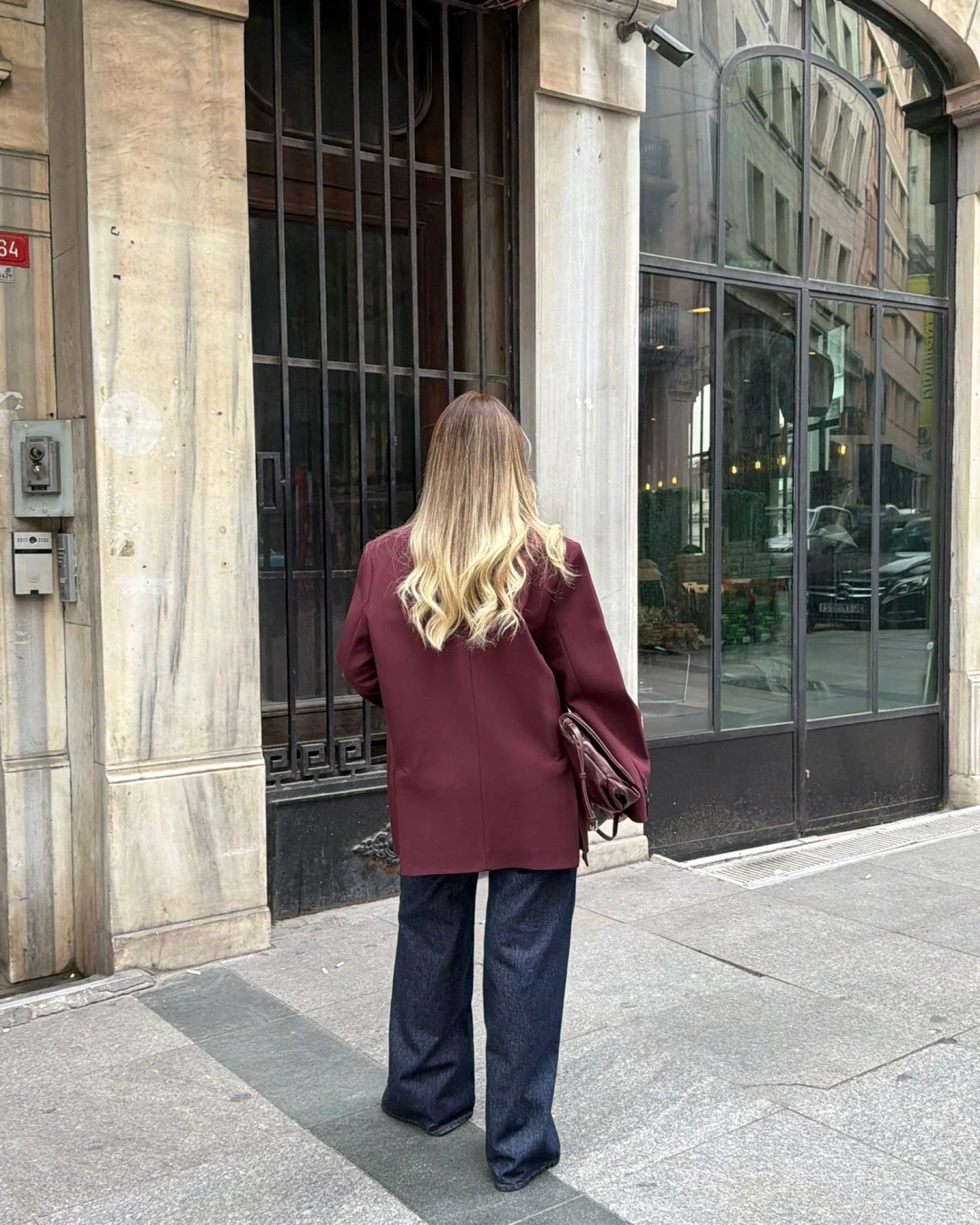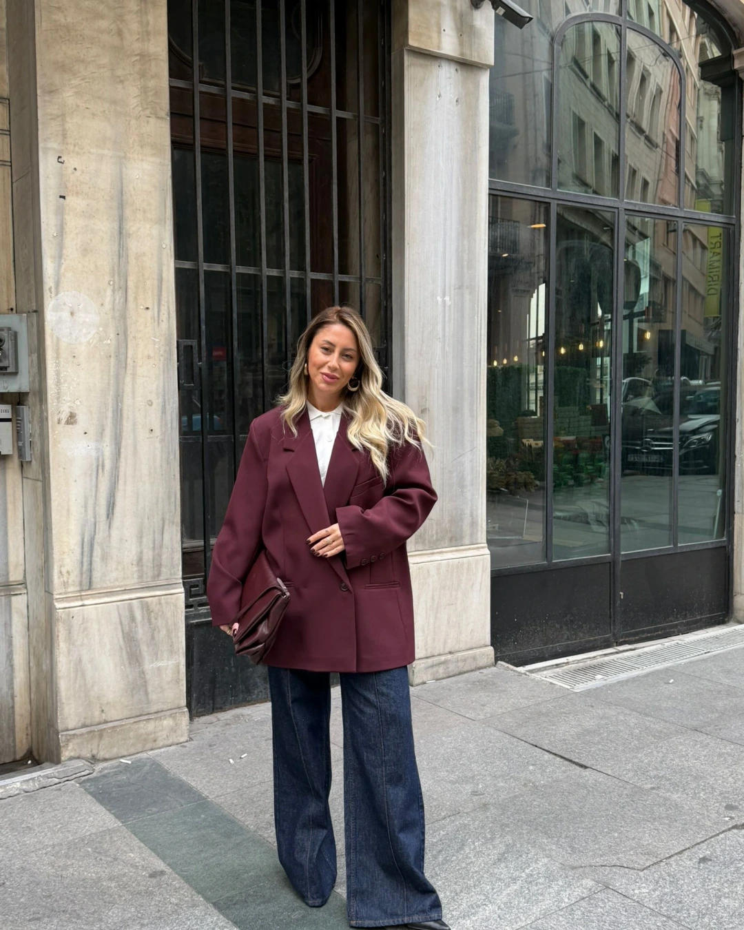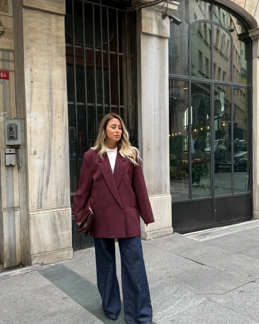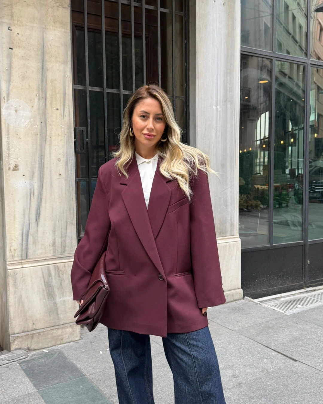 BORDO TEK DÜĞMELİ OVERSİZE BLAZER CEKET