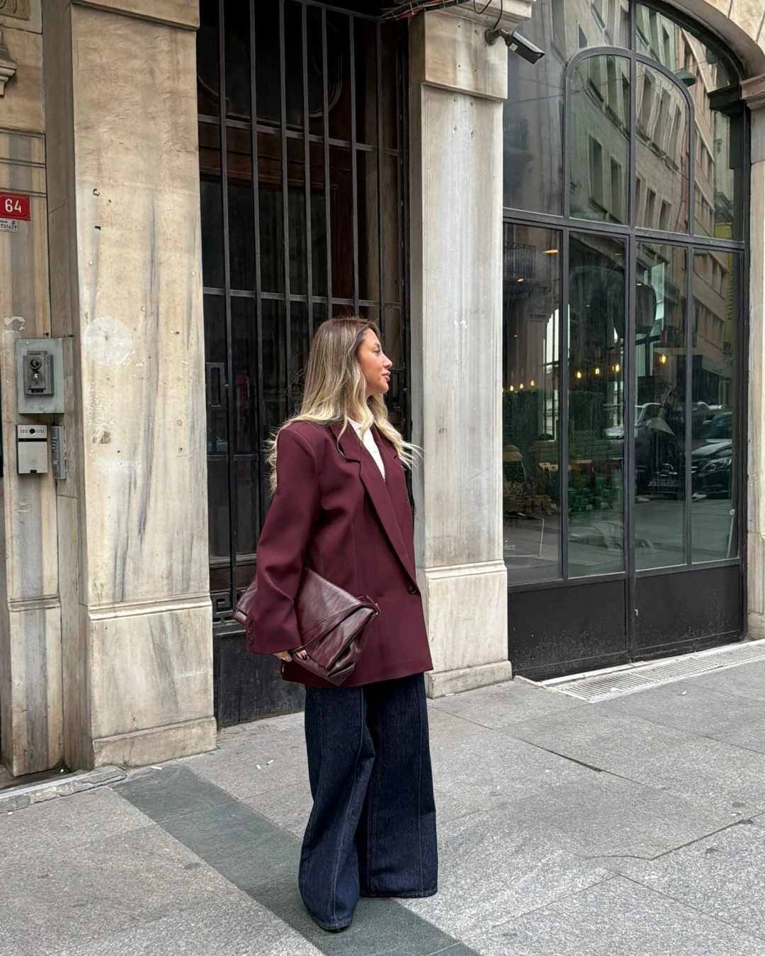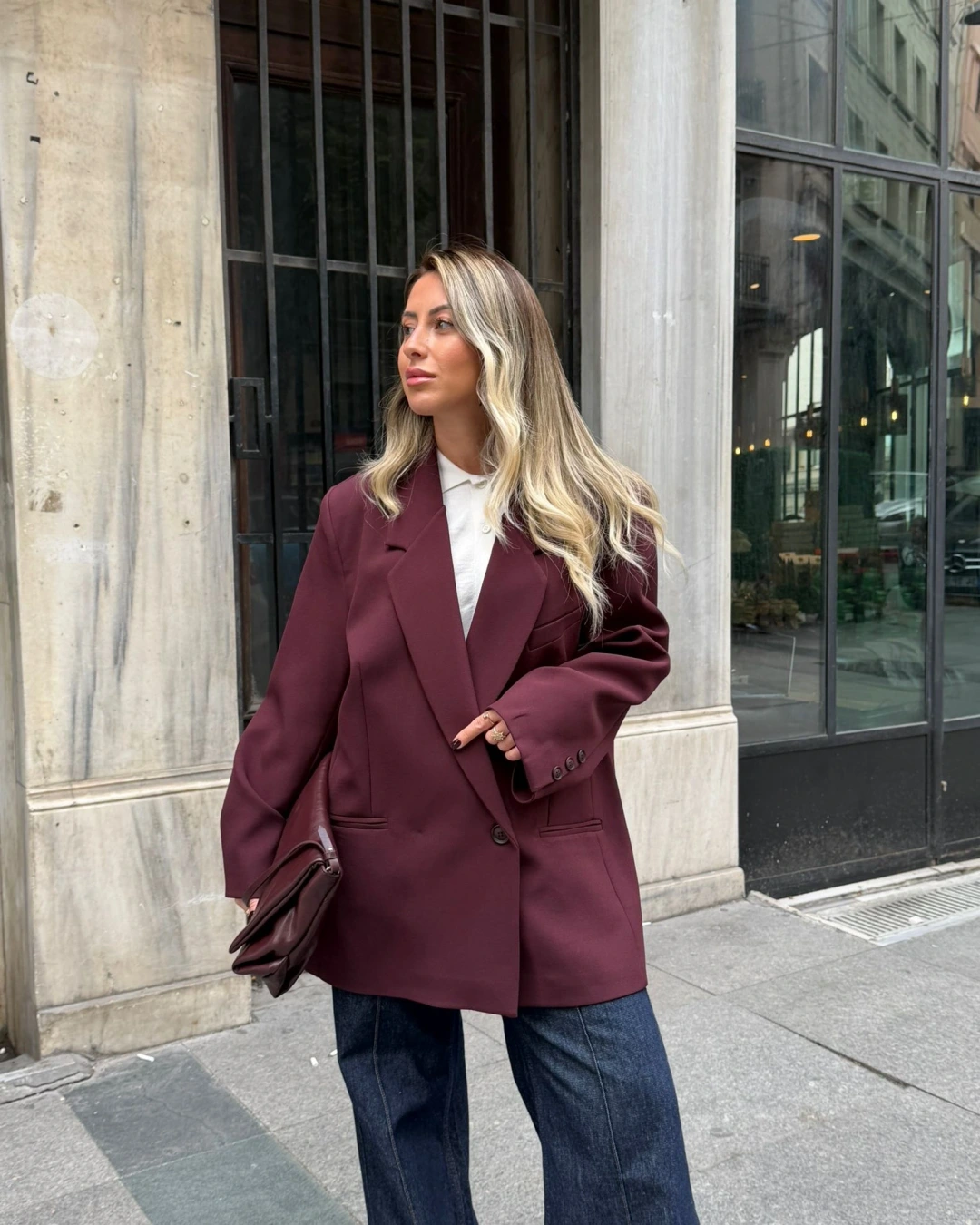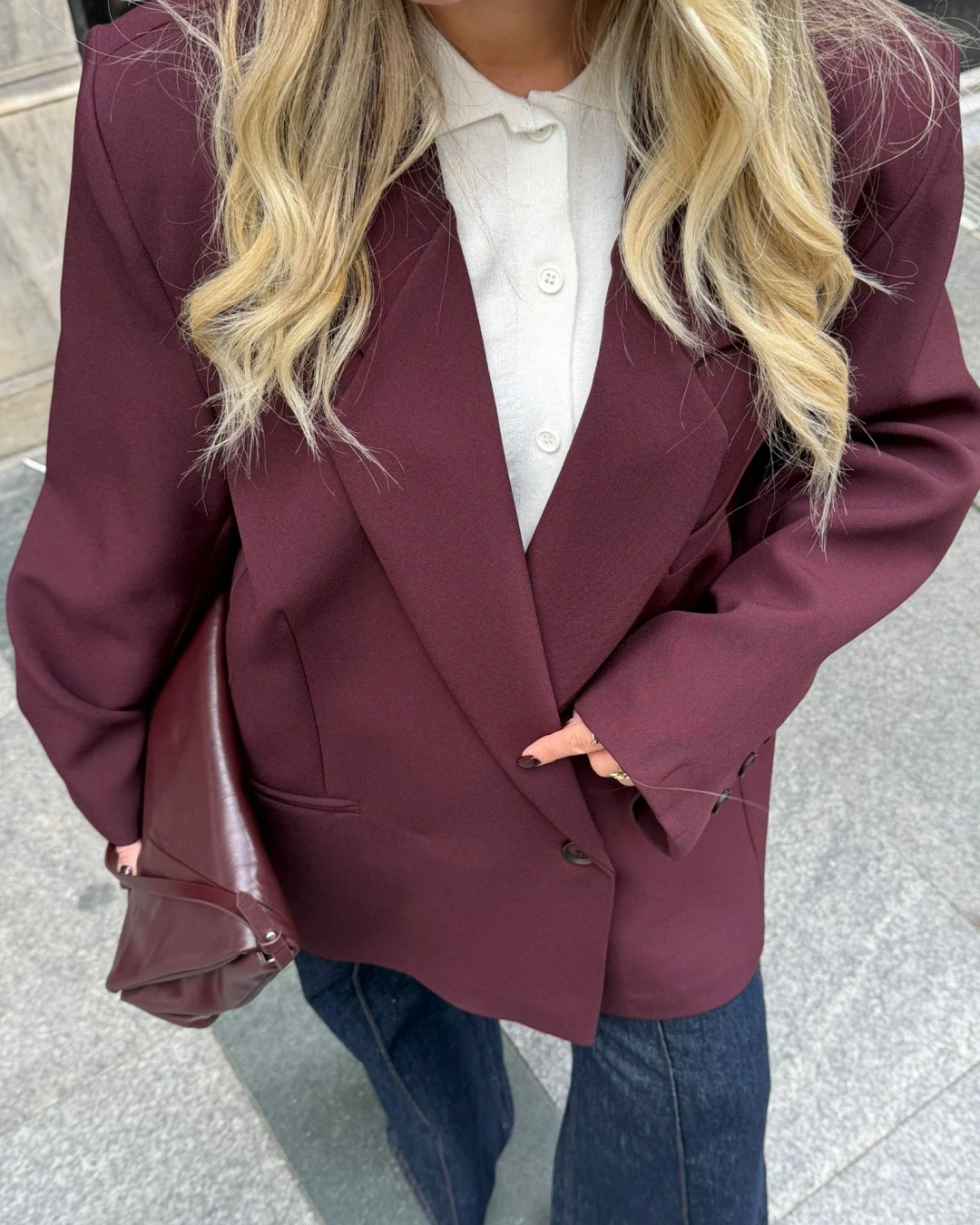 BORDO TEK DÜĞMELİ OVERSİZE BLAZER CEKET
