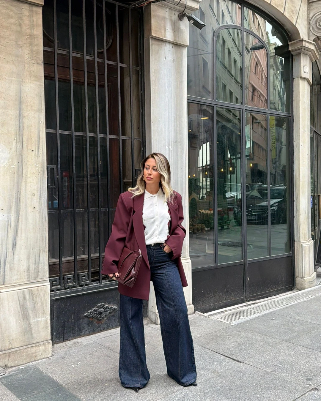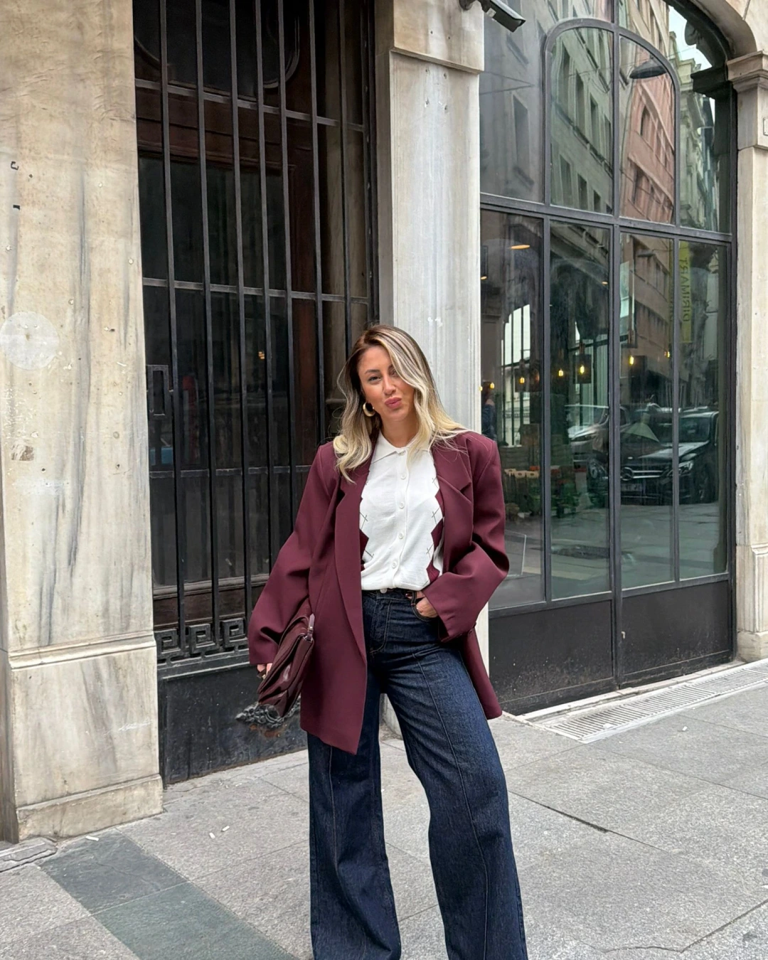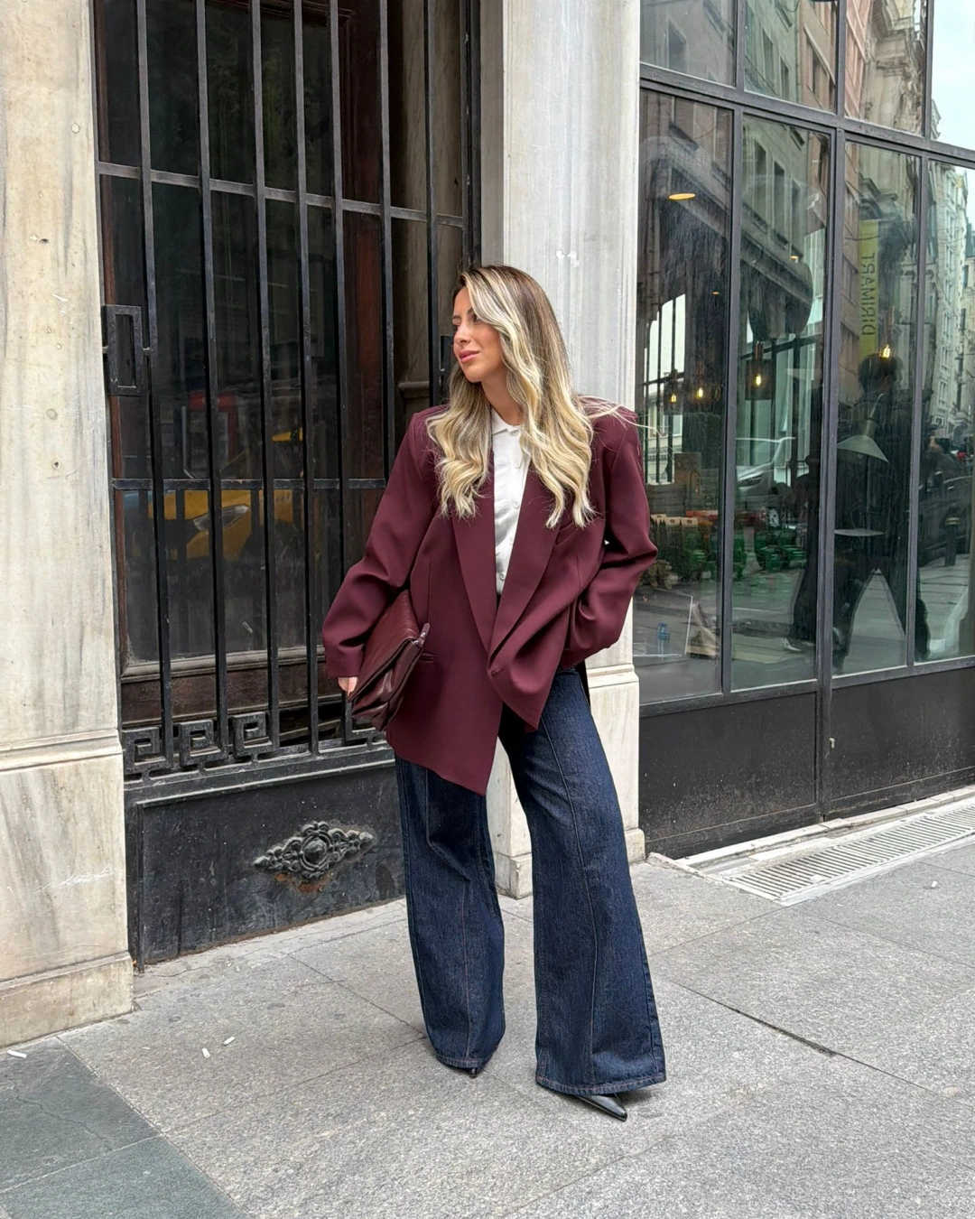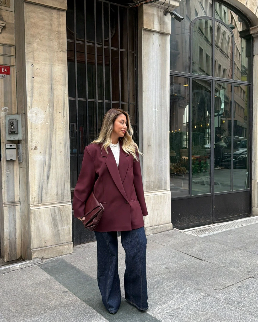 BORDO TEK DÜĞMELİ OVERSİZE BLAZER CEKET