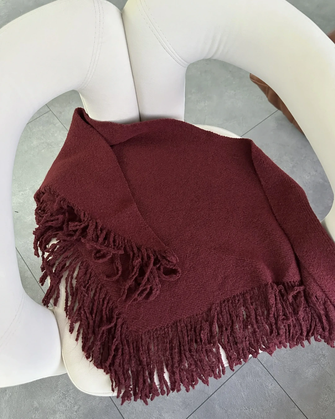 BORDO TRİKO PÜSKÜLLÜ ÜÇGEN ŞAL