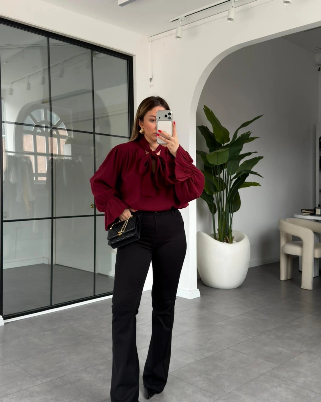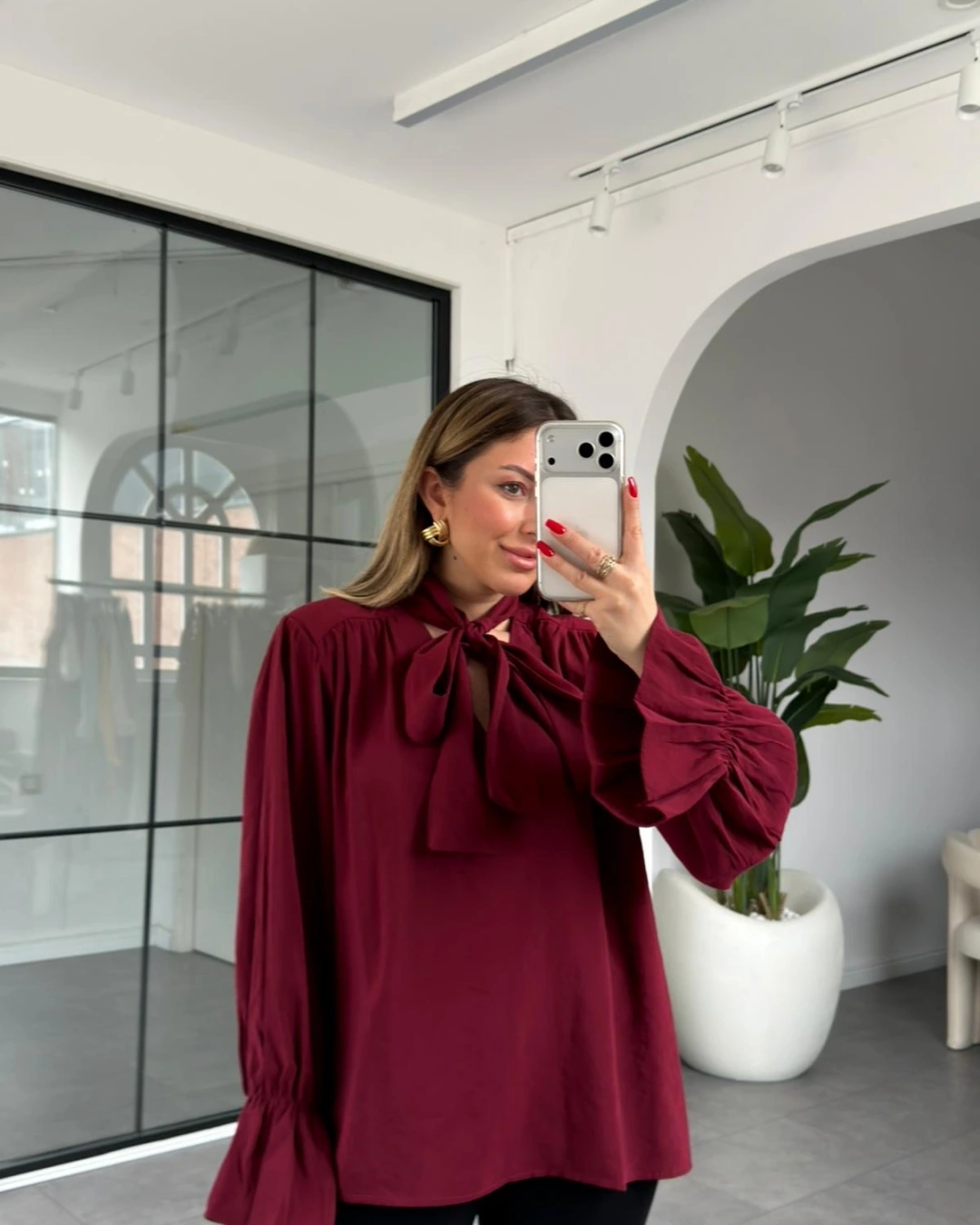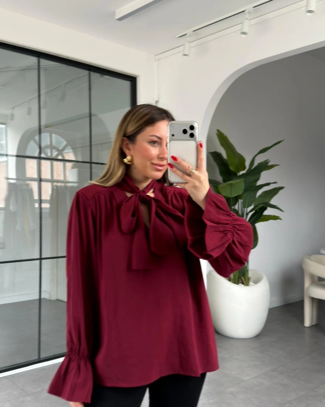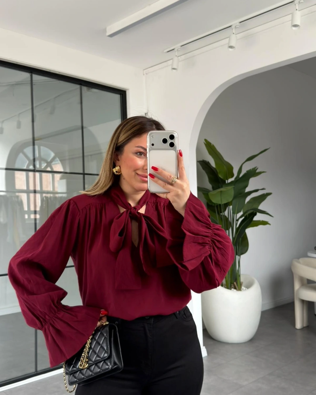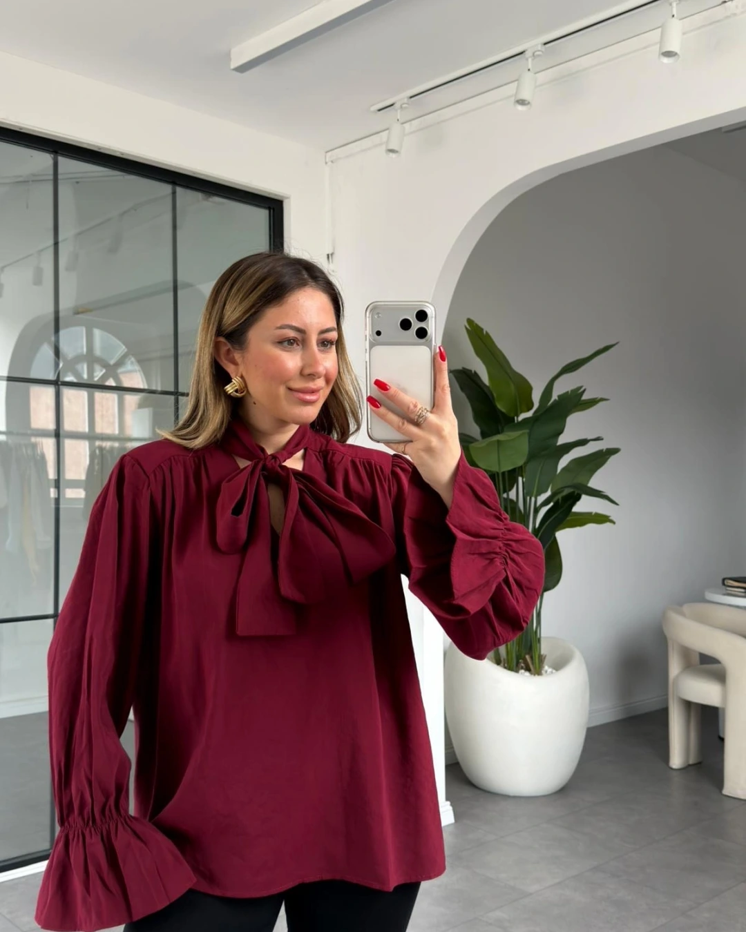 BORDO YAKASI BAĞLAMALI VATKALI BLUZ 1016