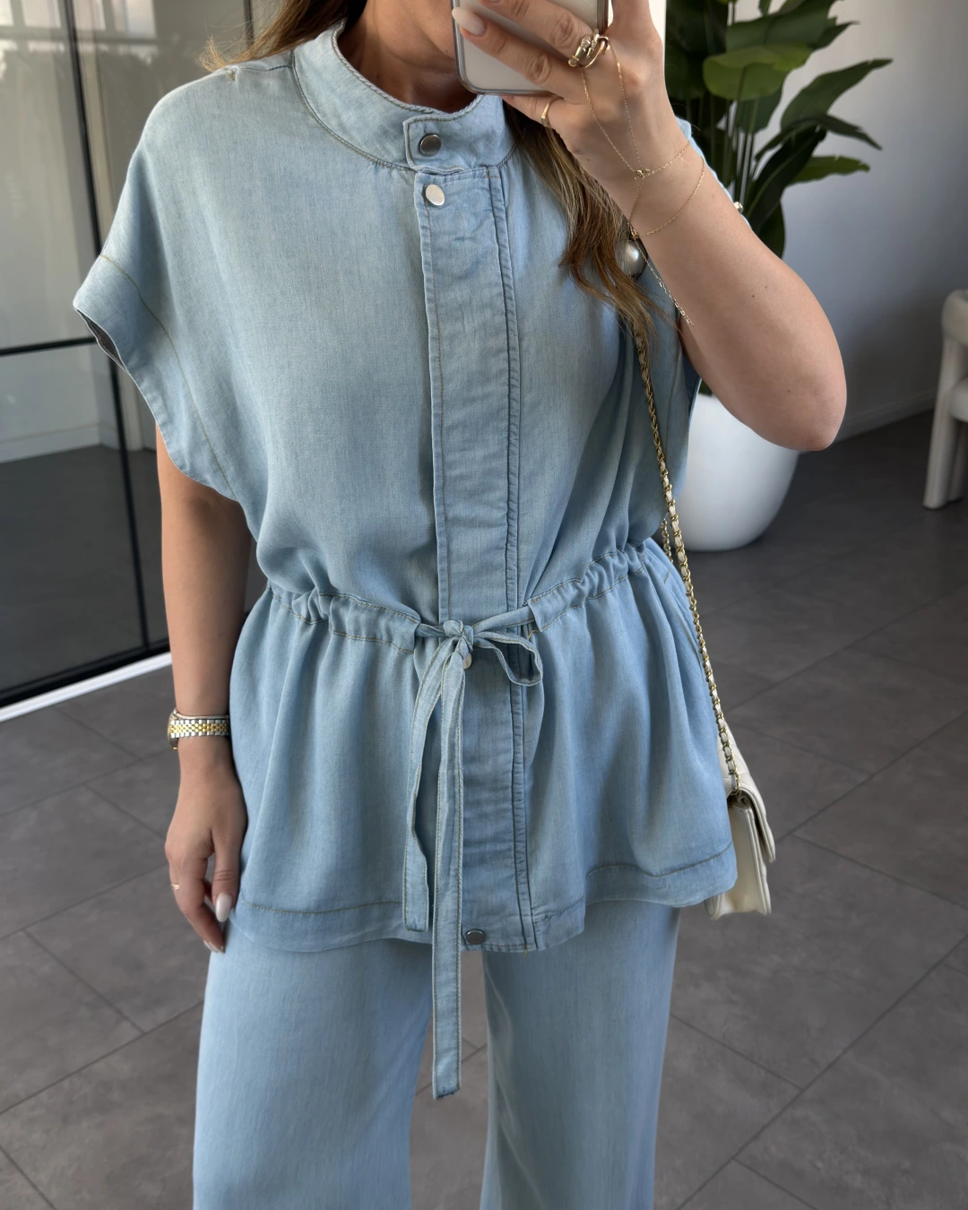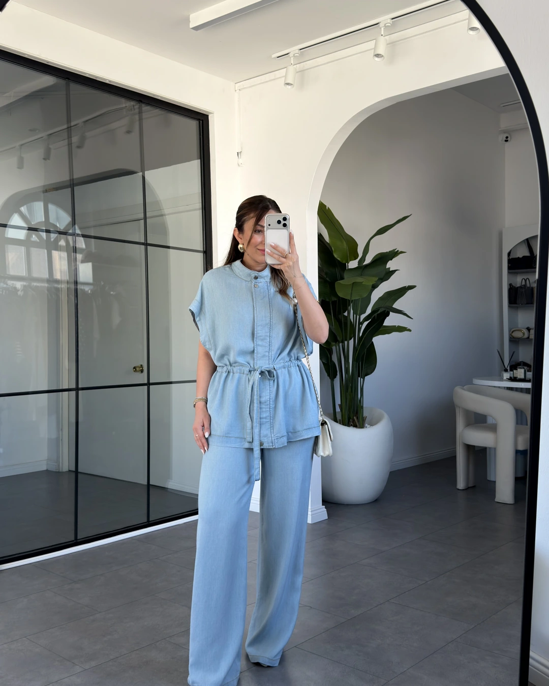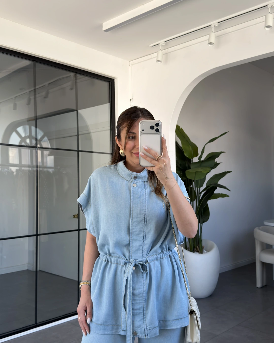 BUZ MAVİ BELİ KENDİNDEN KEMERLİ TENSEL TAKIM 37368