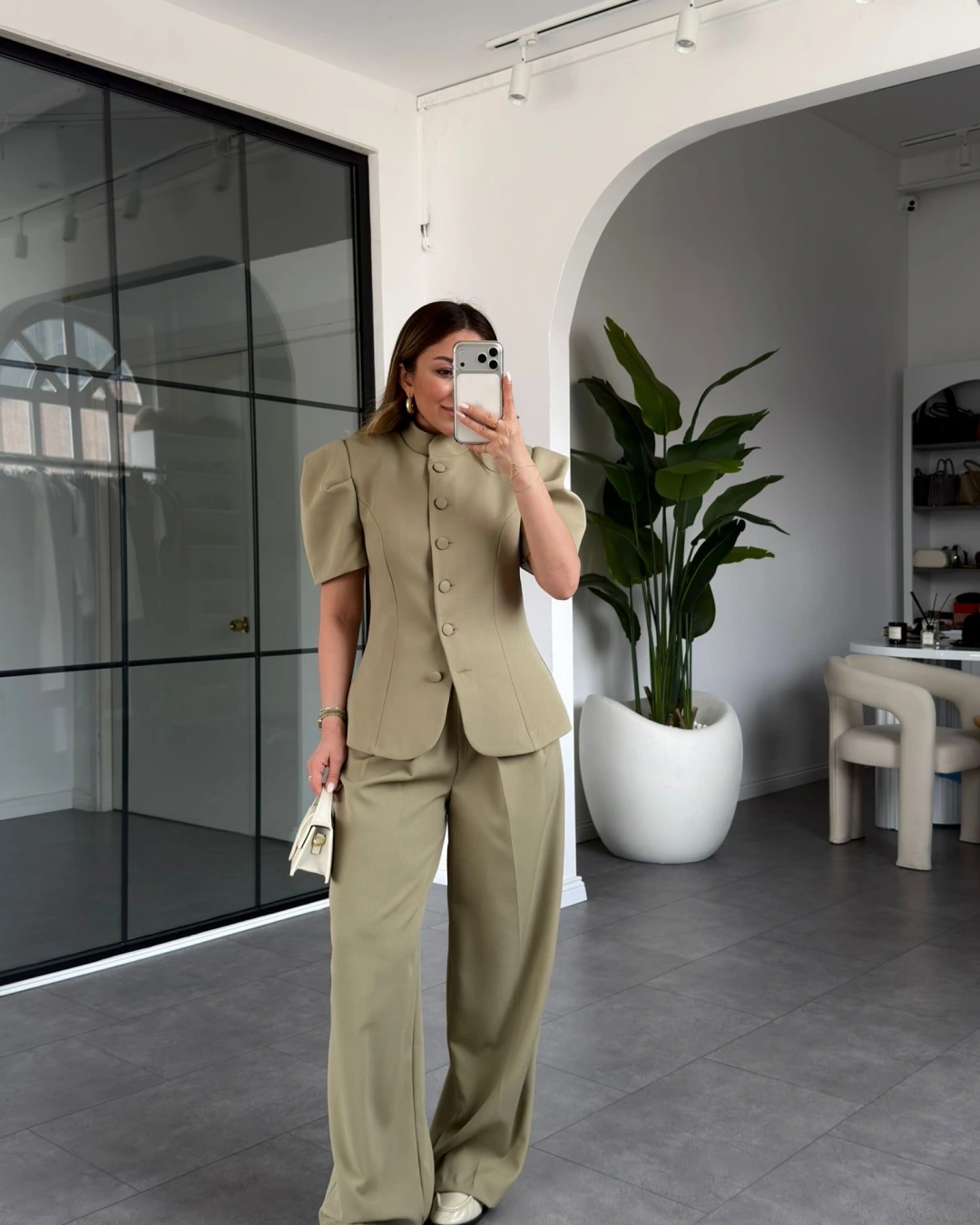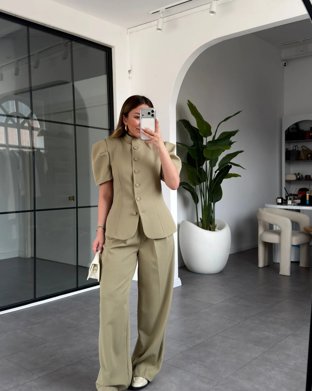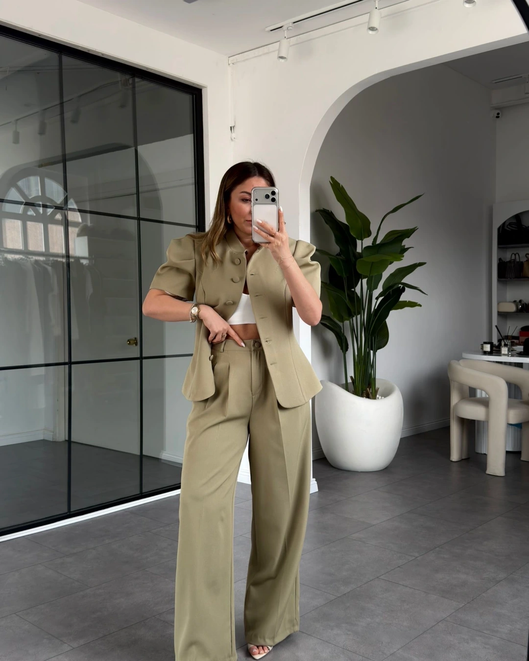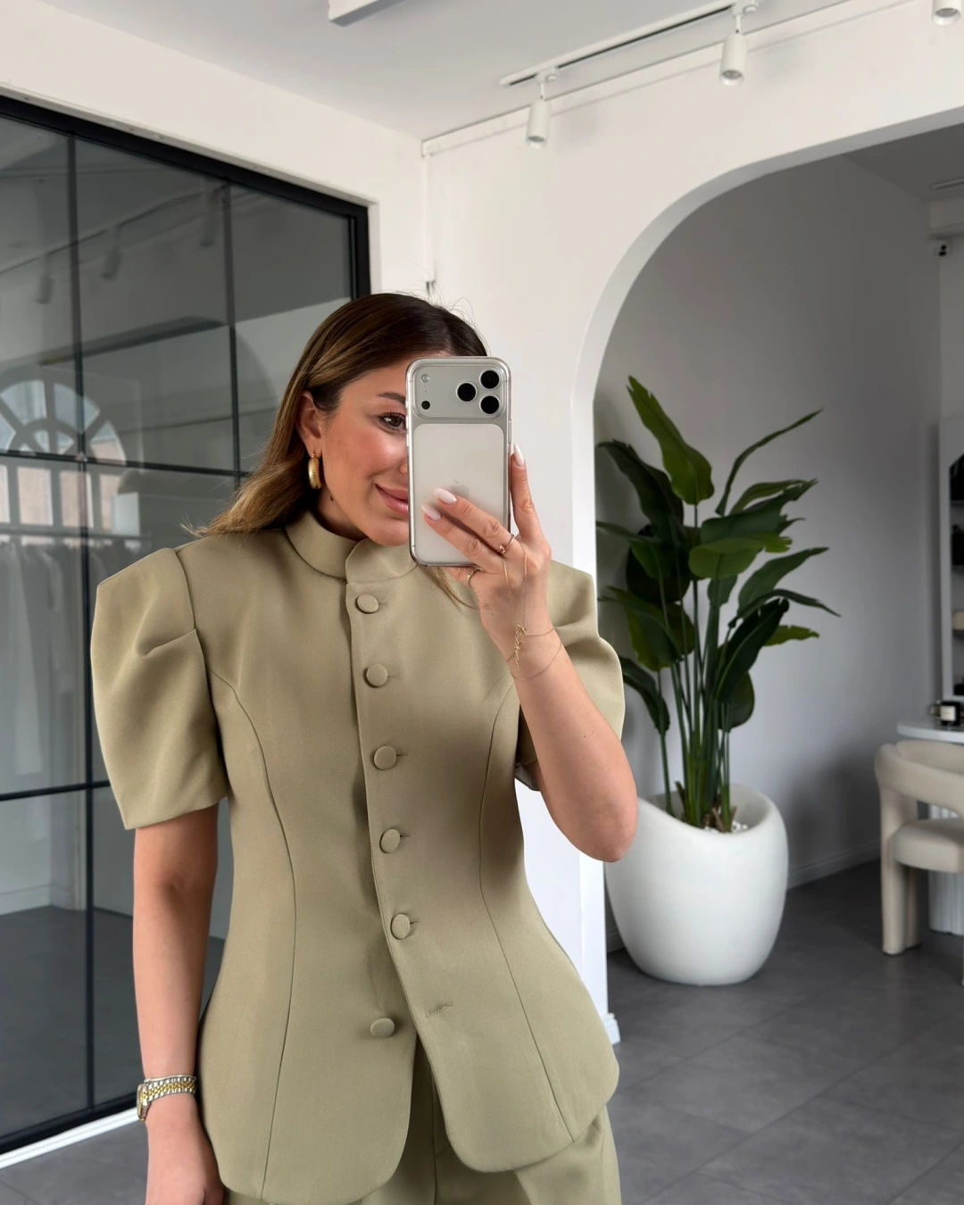 ÇAĞLA YEŞİLİ OMUZLARI HACİMLİ CEKET TAKIM 5657