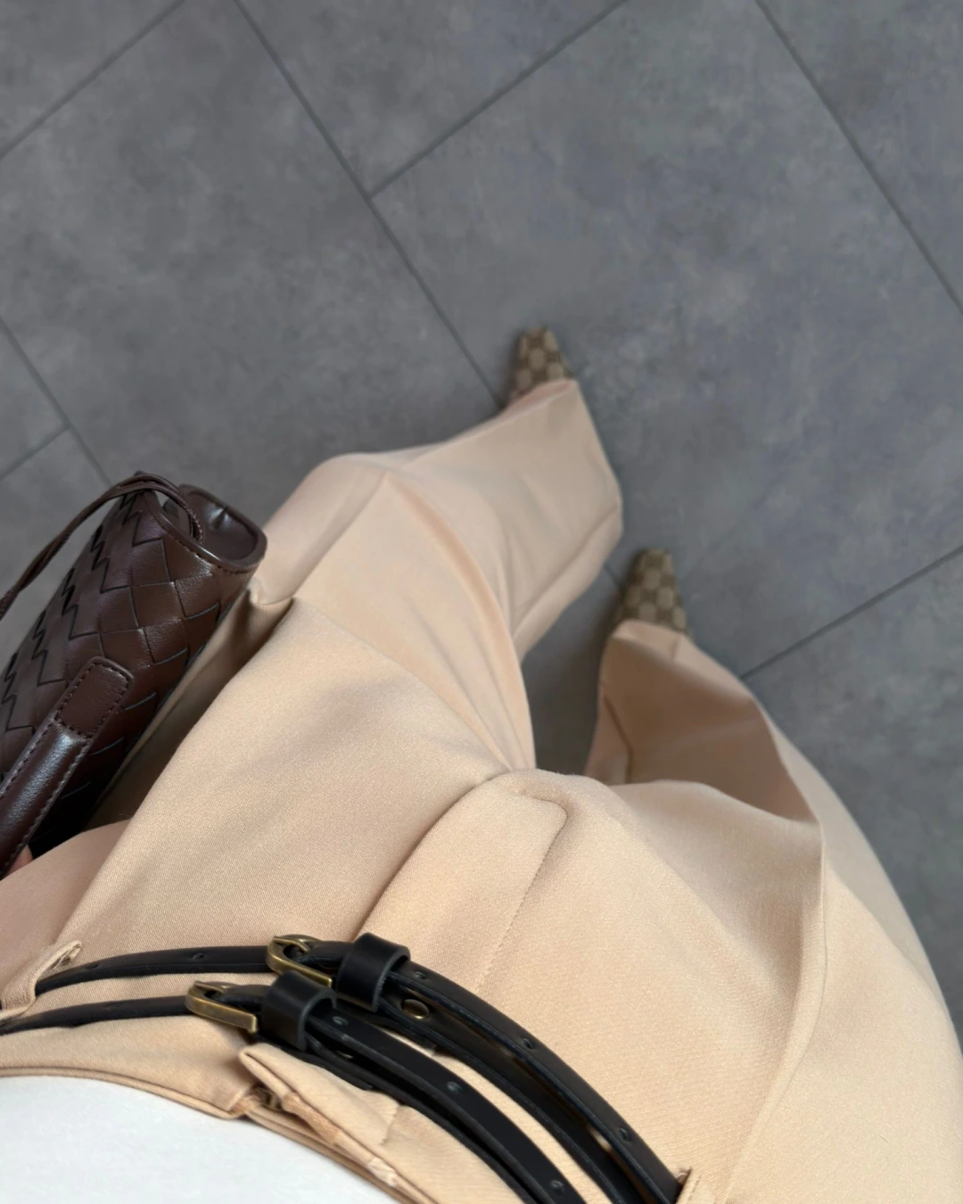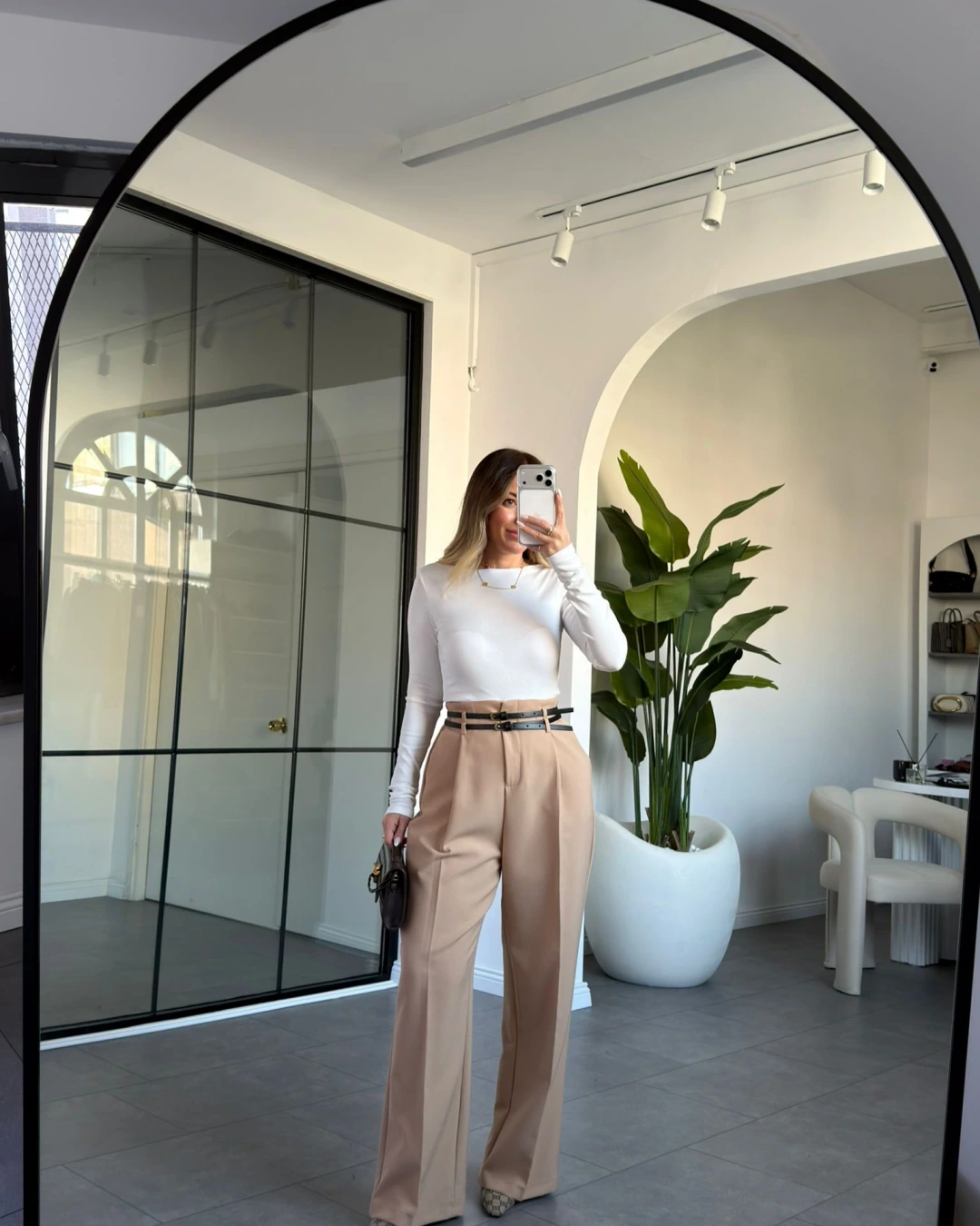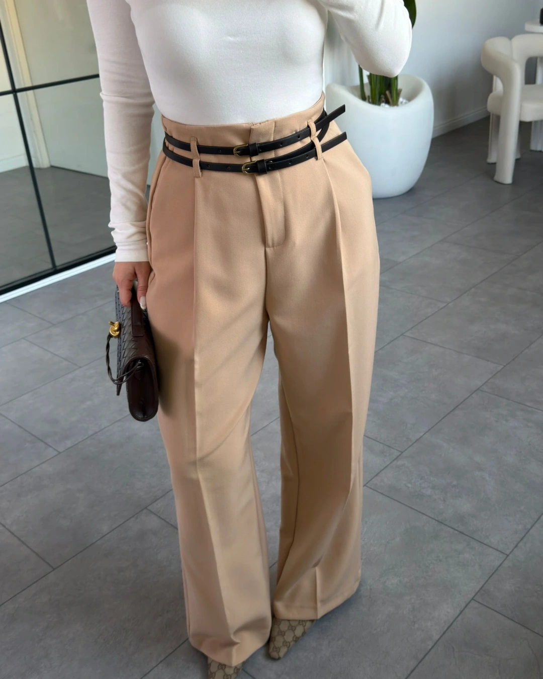 CAMEL ÇİFT KEMERLİ PİLELİ PANTOLON