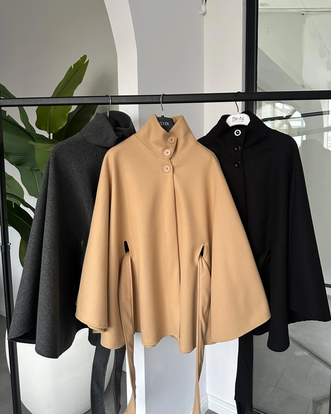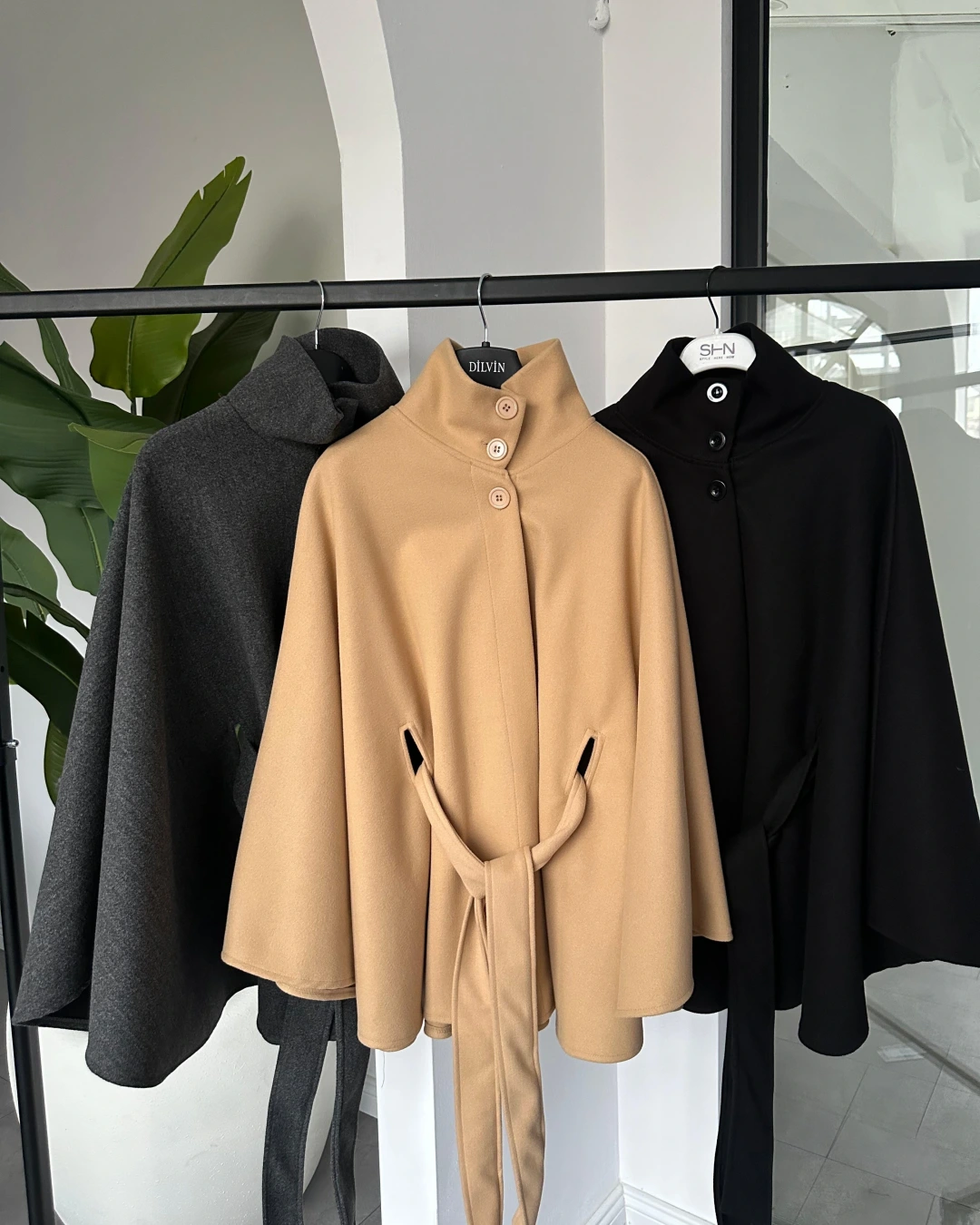 CAMEL DİK YAKA KUŞAKLI PANÇO