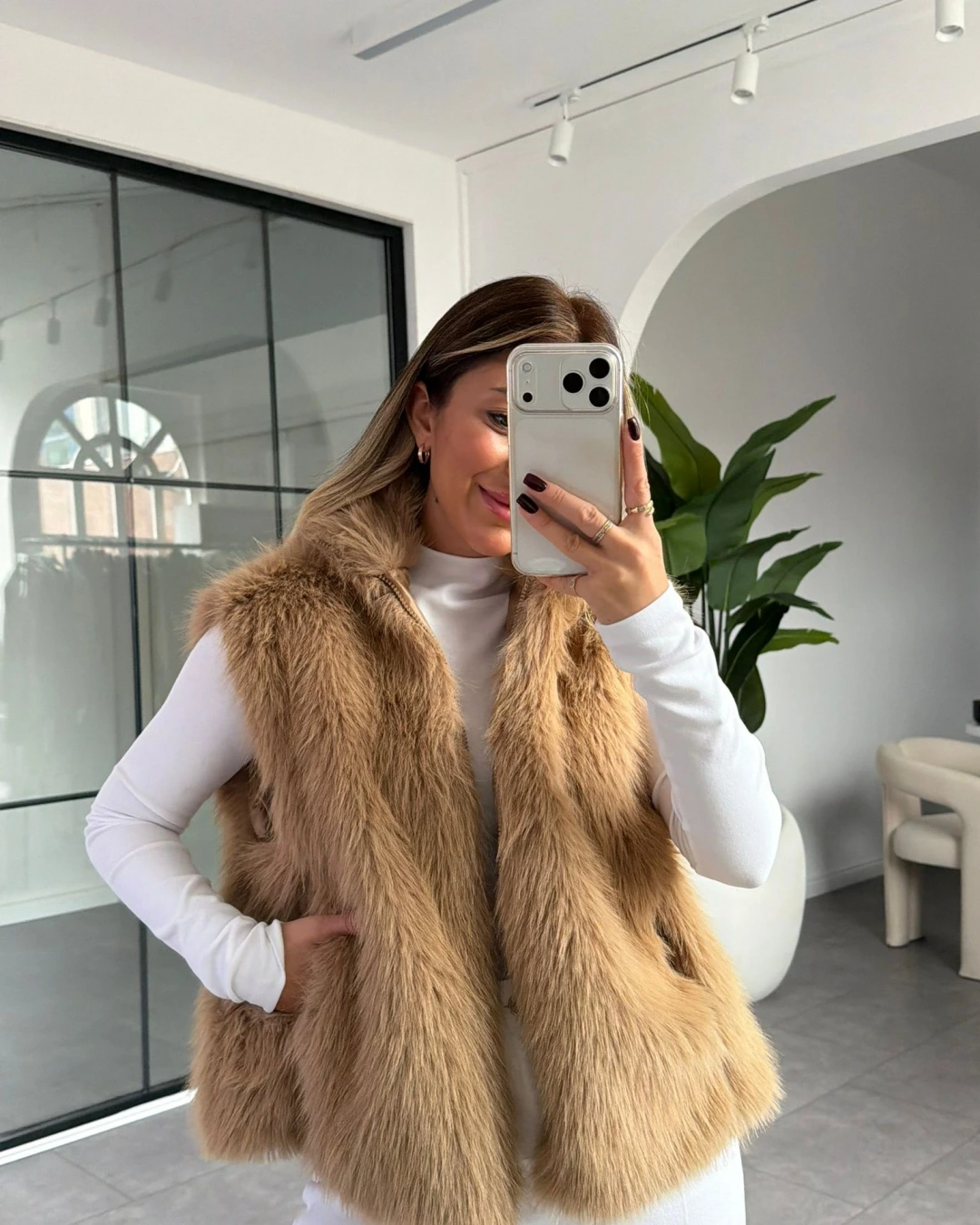 CAMEL FERMUARLI KÜRK YELEK