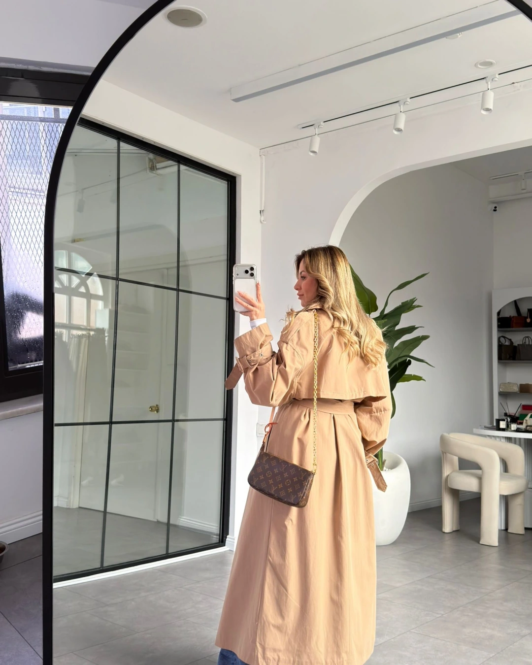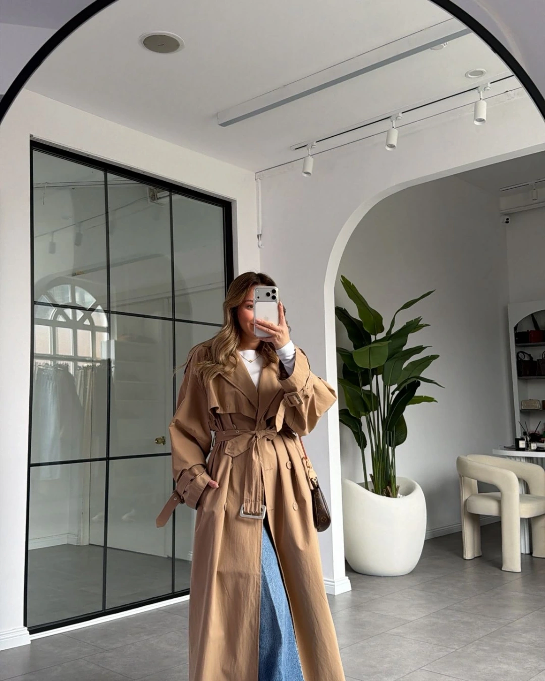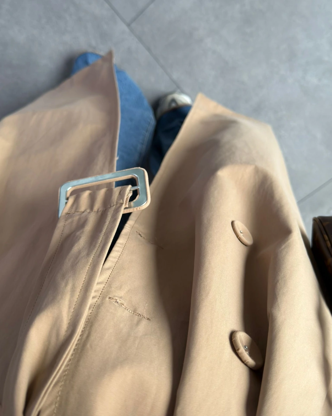CAMEL OVERSİZE İÇ ASTARI ÇİZGİLİ TRENÇKOT