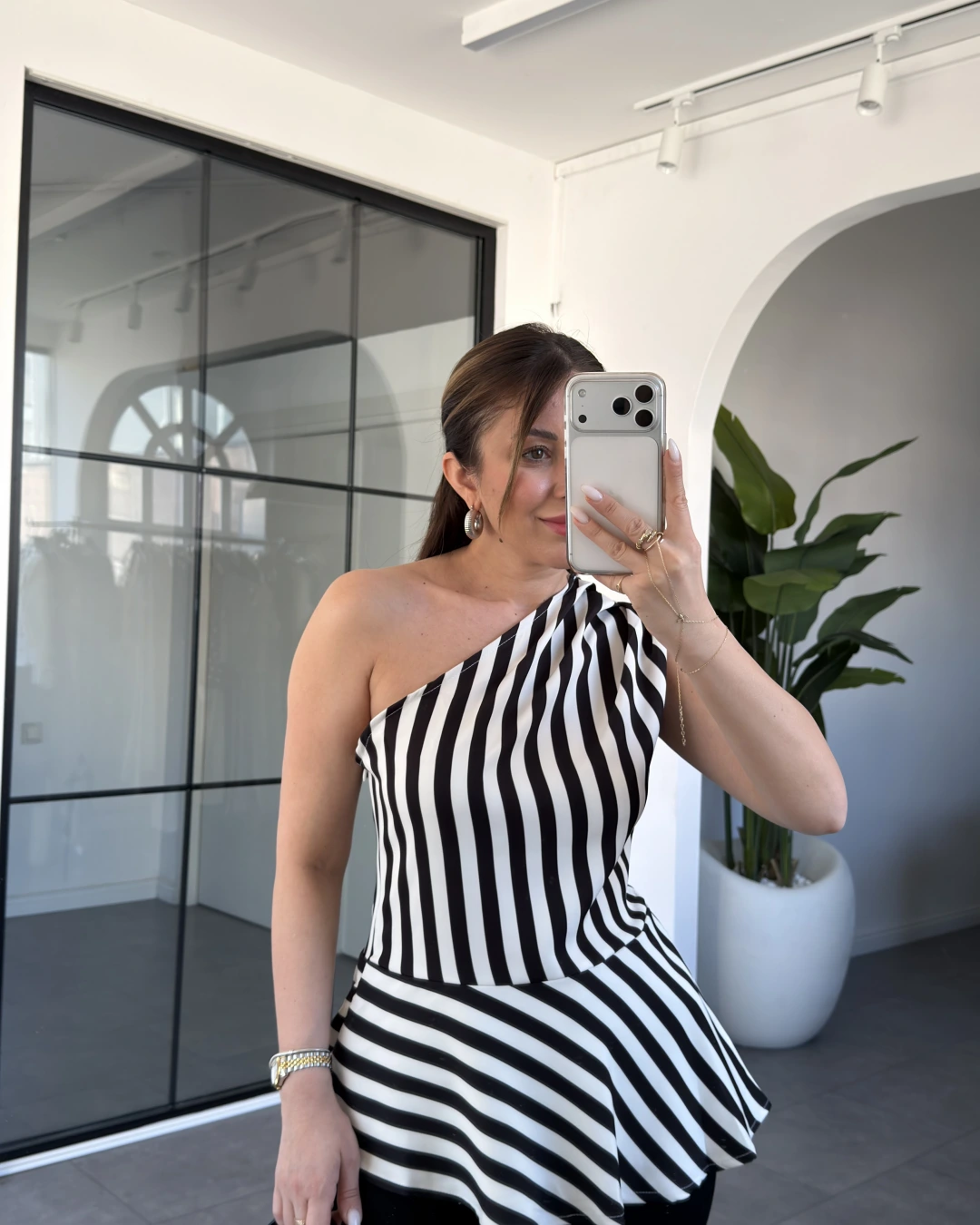 ÇİZGİLİ TEK OMUZ BLUZ 71808