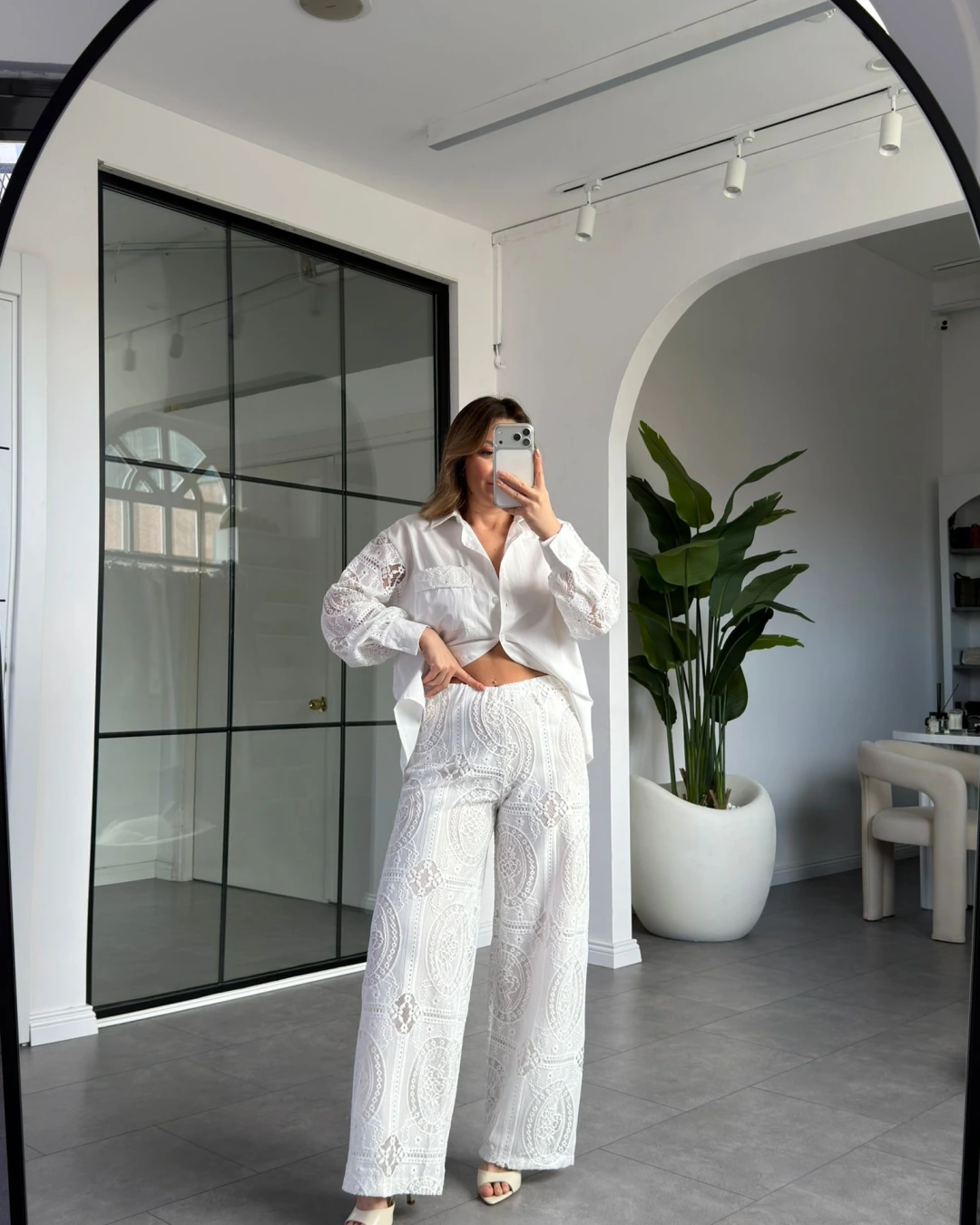 DANTEL DETAYLI EKRU PANTOLON 29615