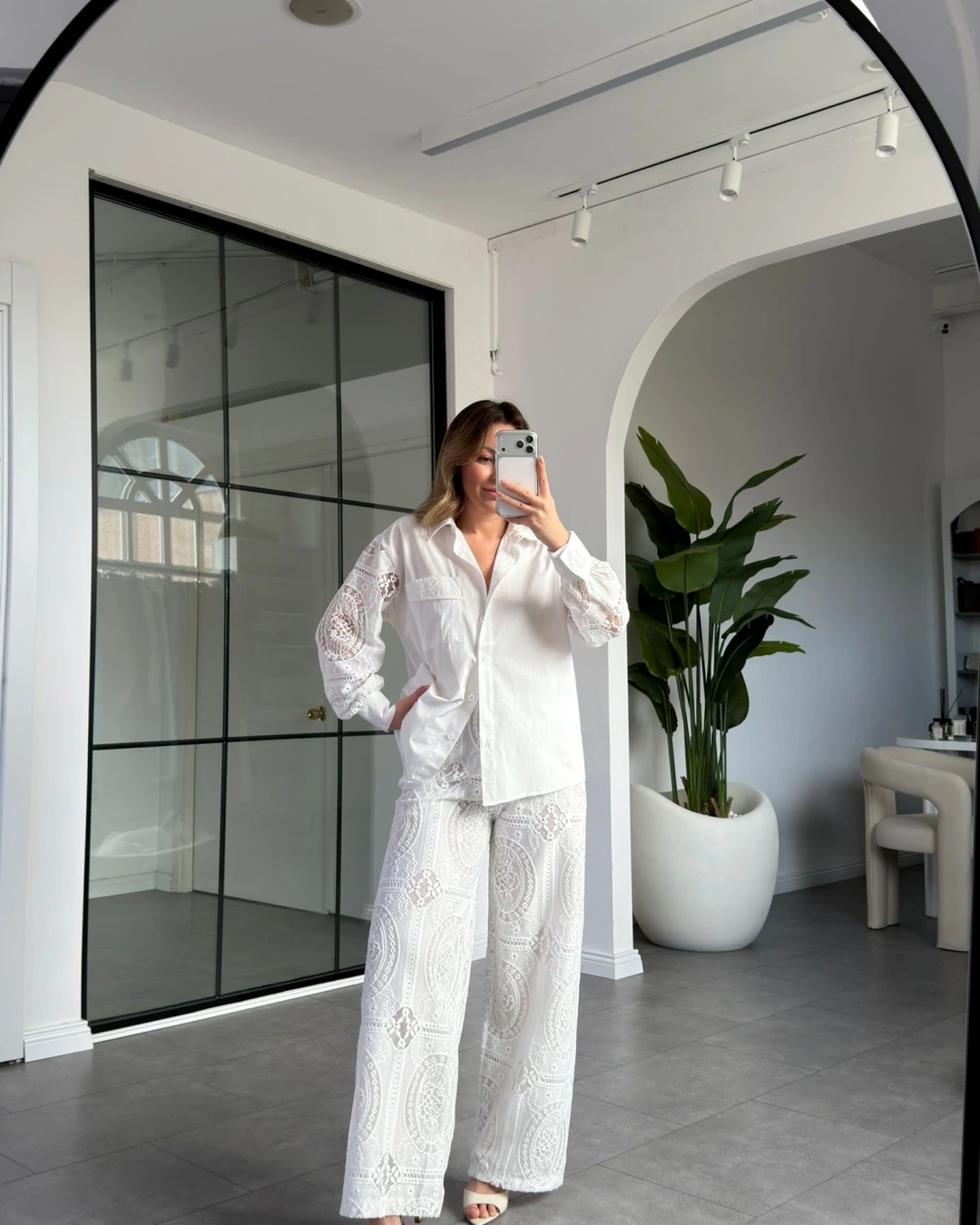 BEYAZ GOLD DÜĞMELİ PİLELİ PALAZZO PANTOLON