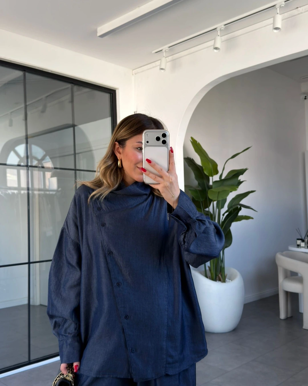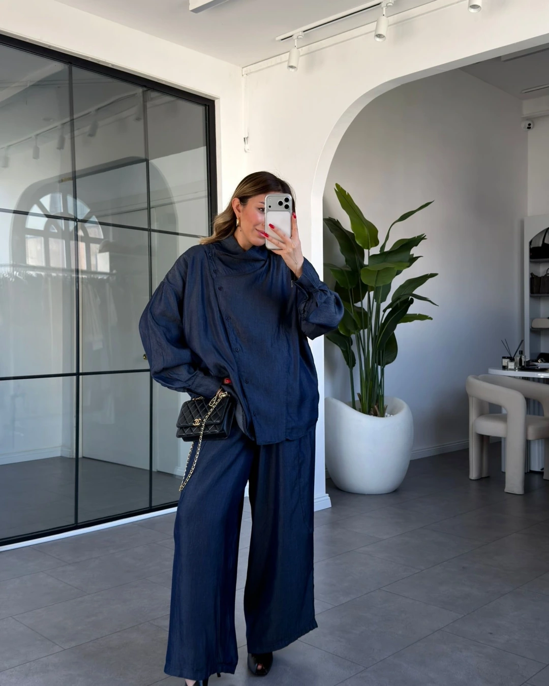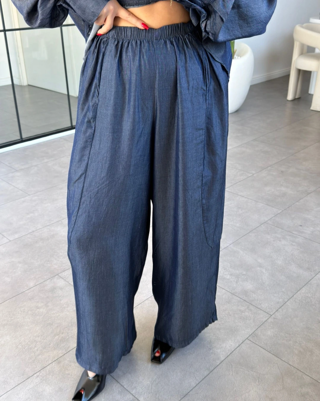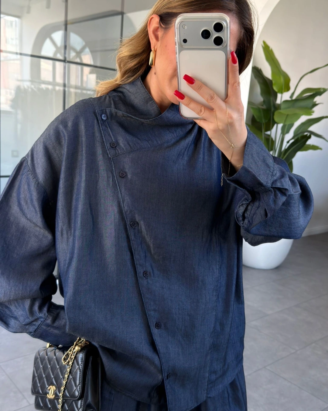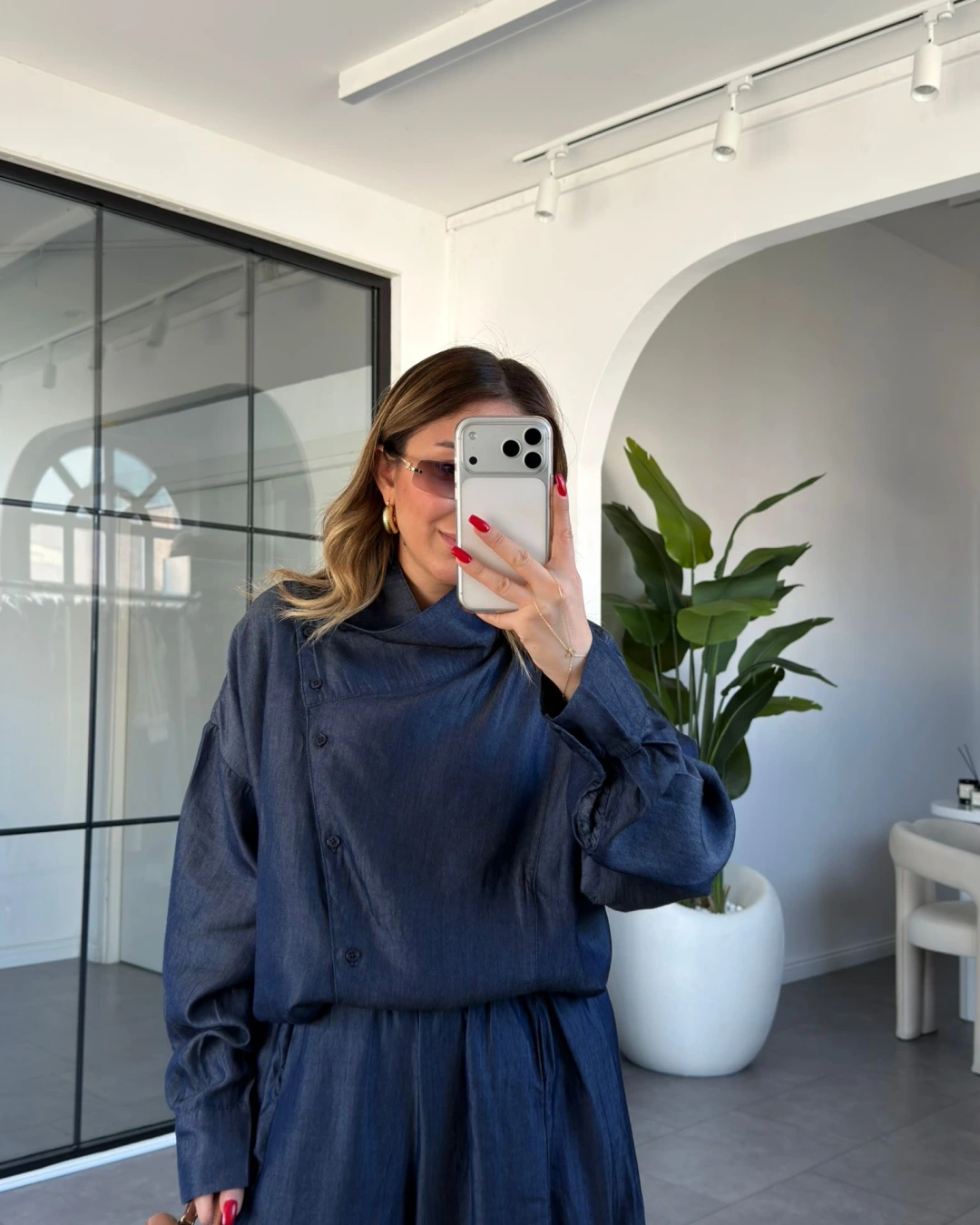 DENİM ASİMETRİK DÜĞMELİ TENSEL TAKIM 0100