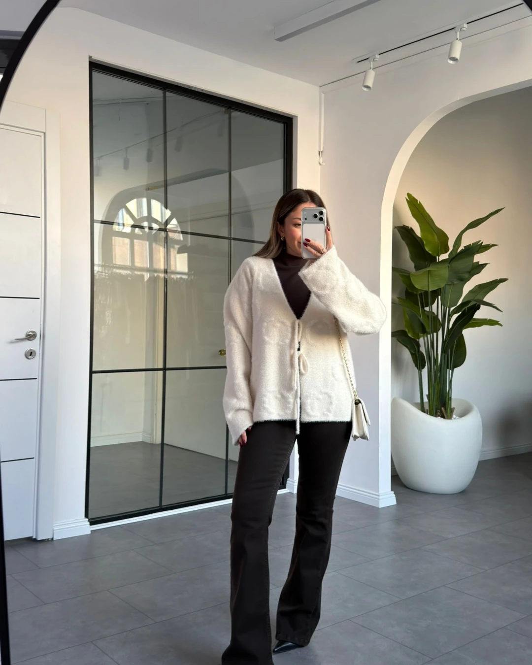 EKRU BAĞLAMA DETAY YUMOŞ DOKULU HIRKA