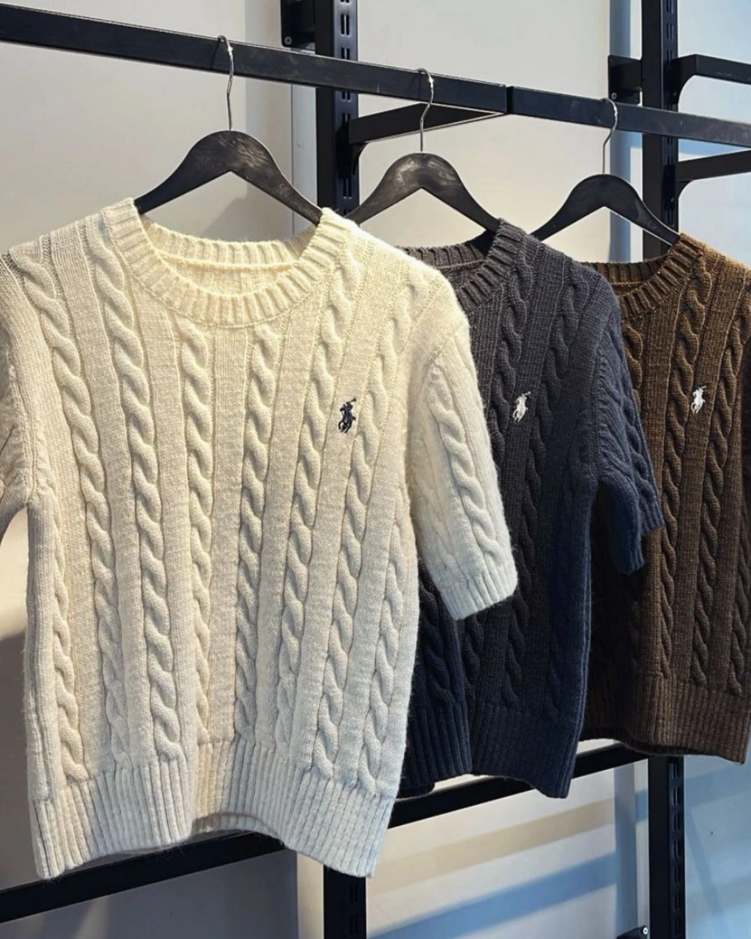 EKRU BİSİKLET YAKA SAÇ ÖRGÜ DESEN KISA KOLLU TRİKO