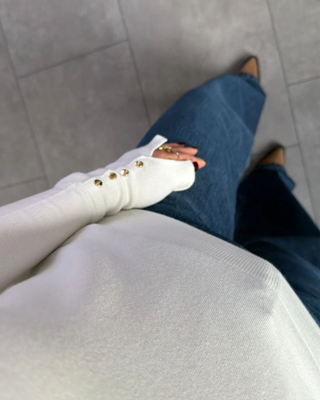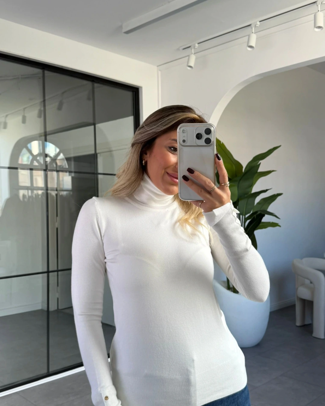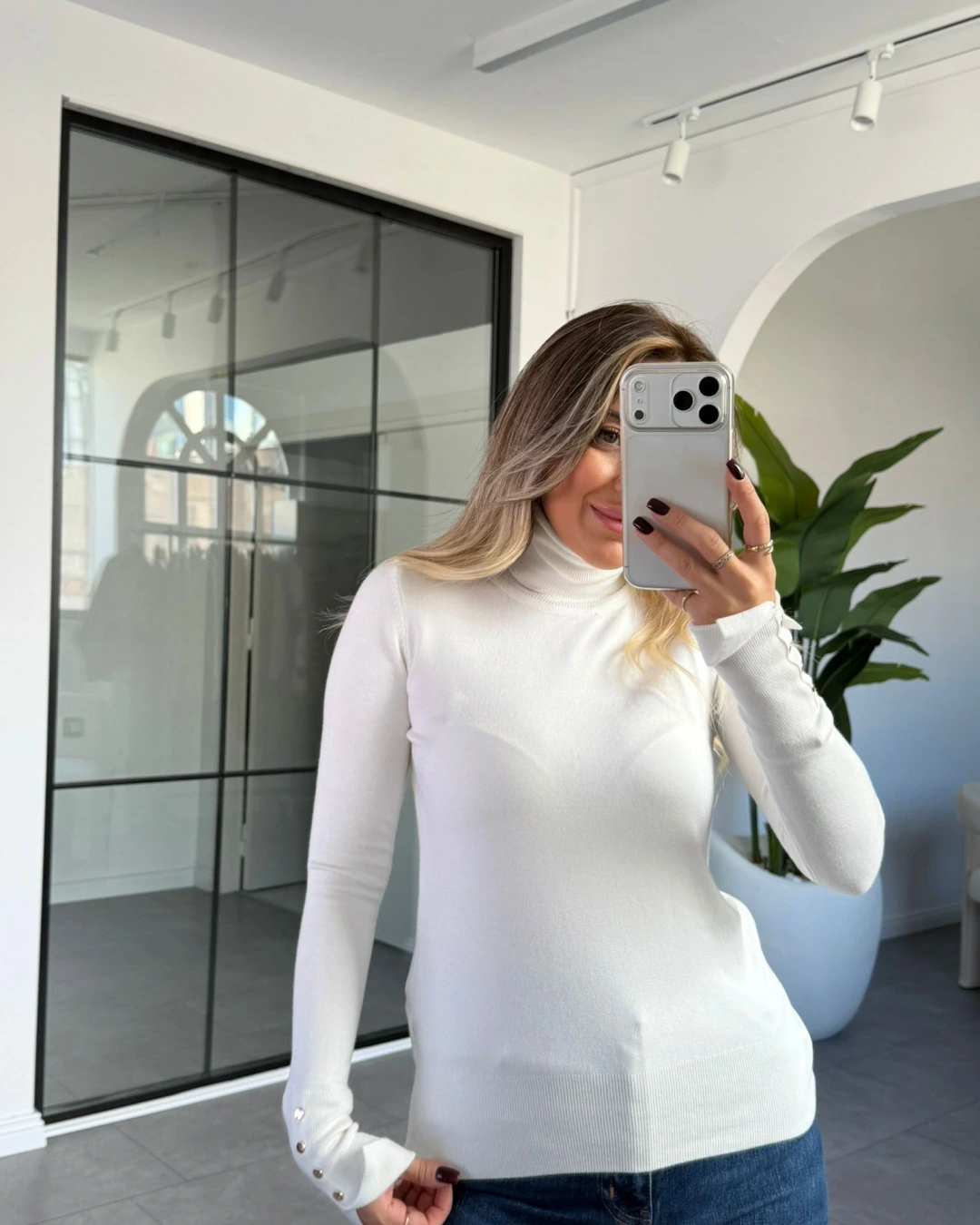 EKRU BOĞAZLI KOLU DÜĞME DETAYLI KAZAK
