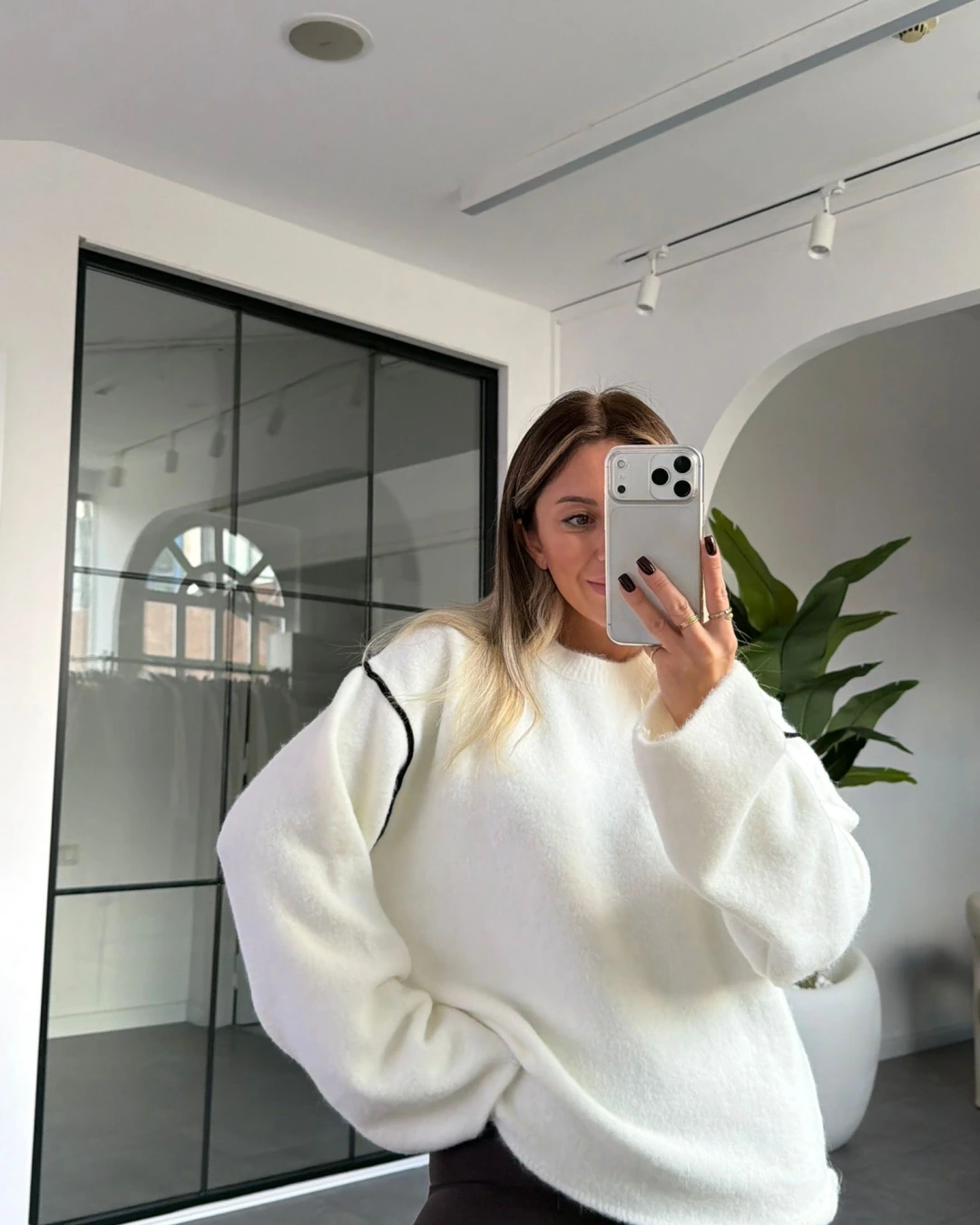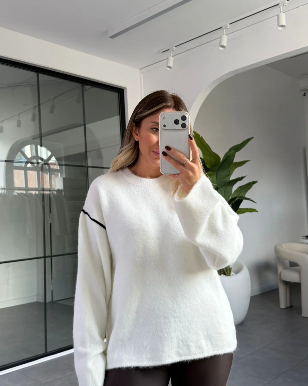 EKRU ÇİZGİ DETAY YUMOŞ KAZAK