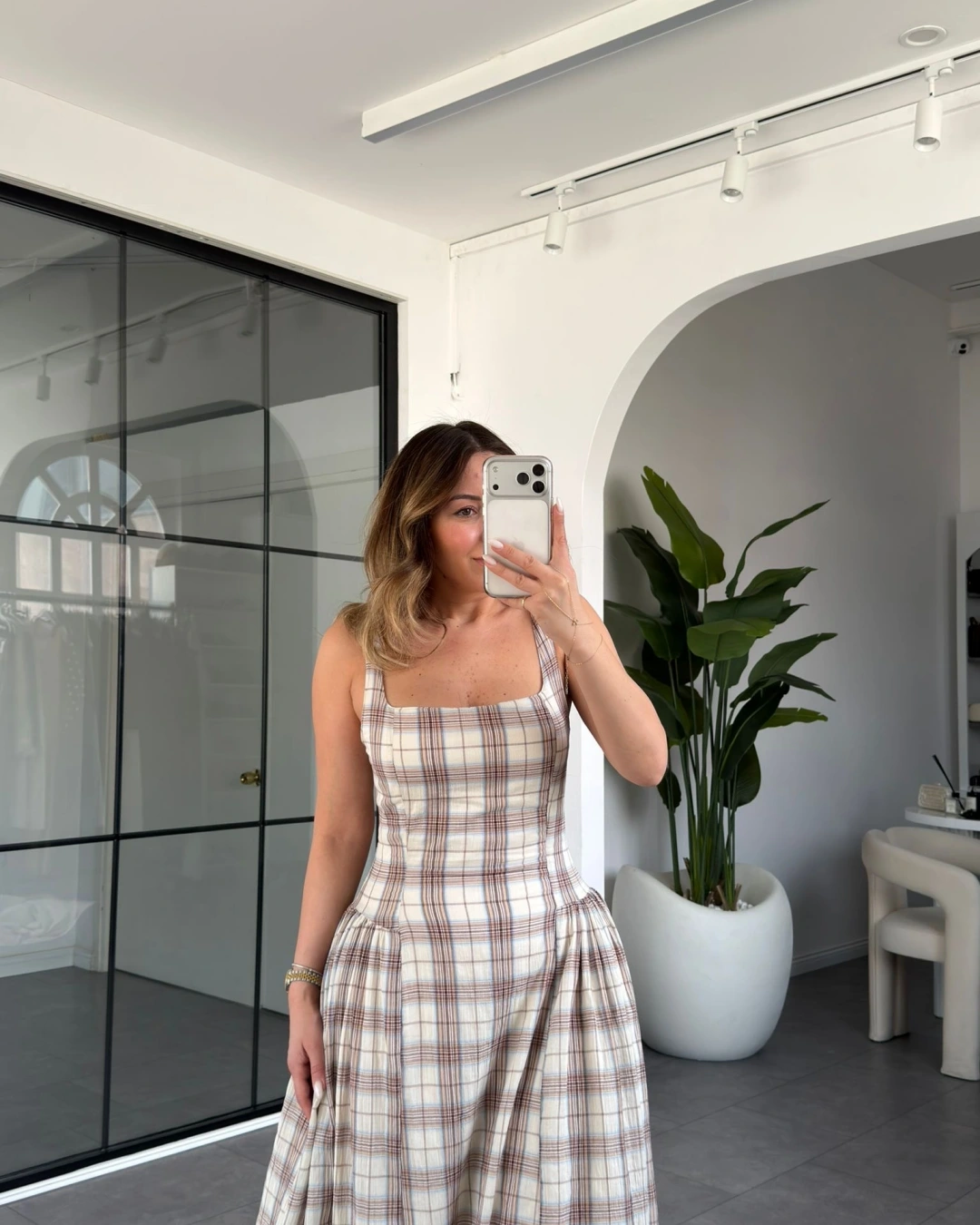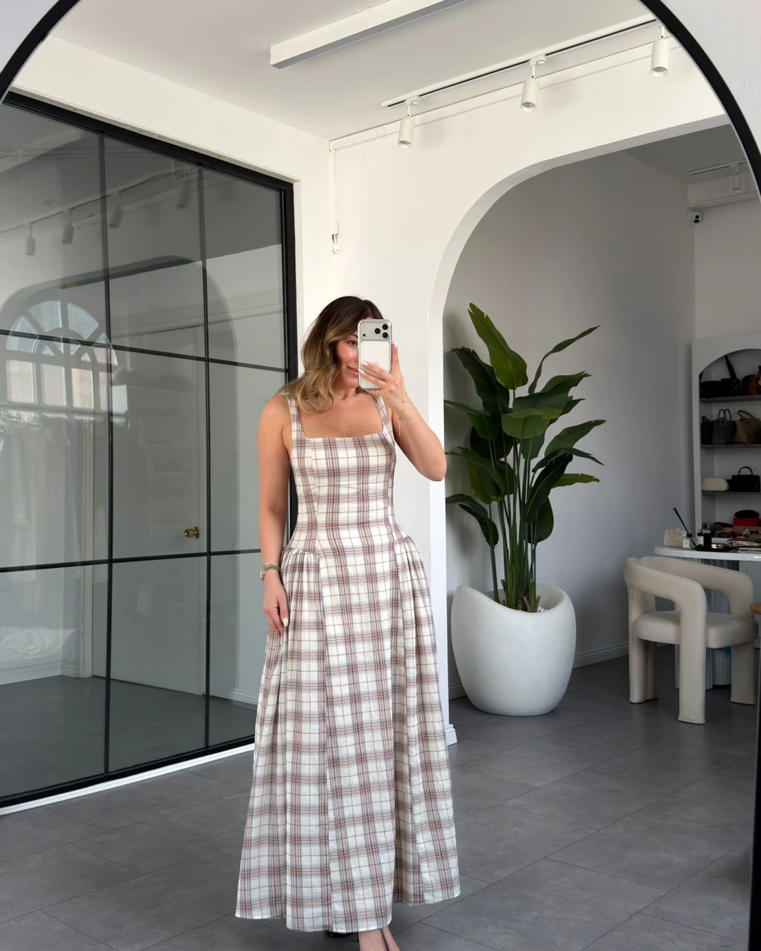 EKRU EKOSE DESEN KETEN ELBİSE 0916