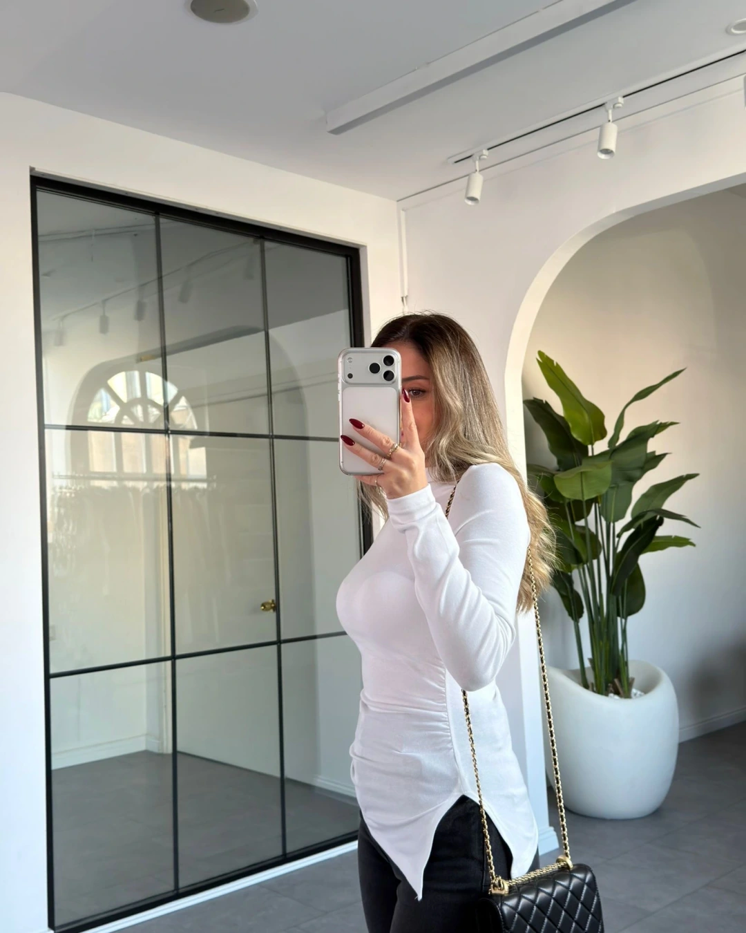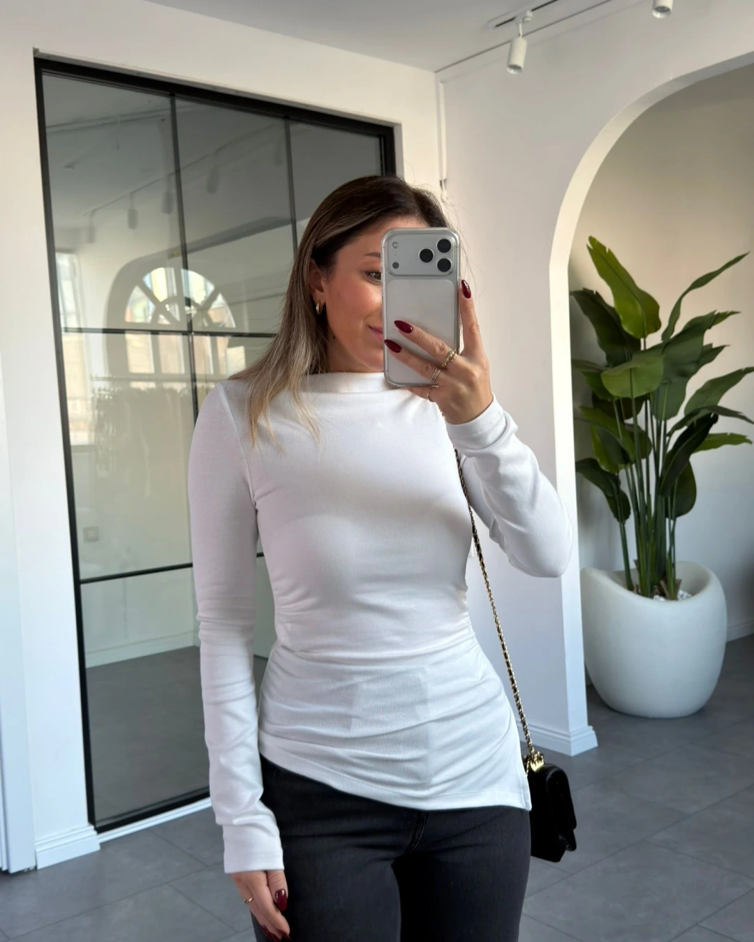 EKRU KAYIK YAKA ASİMETRİK BLUZ