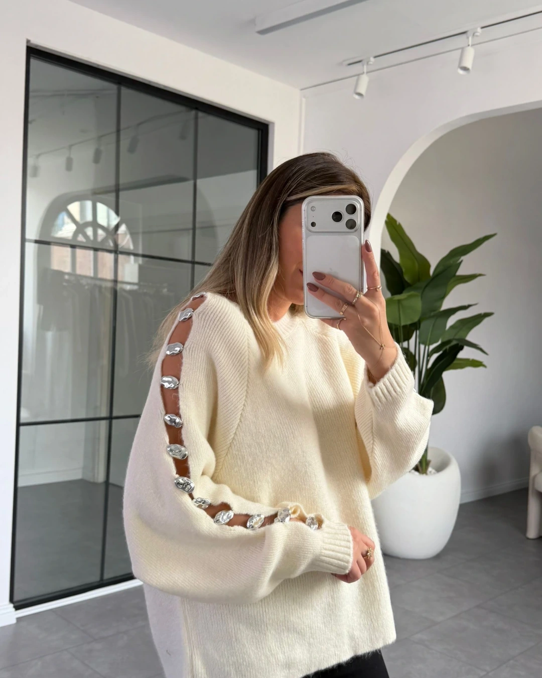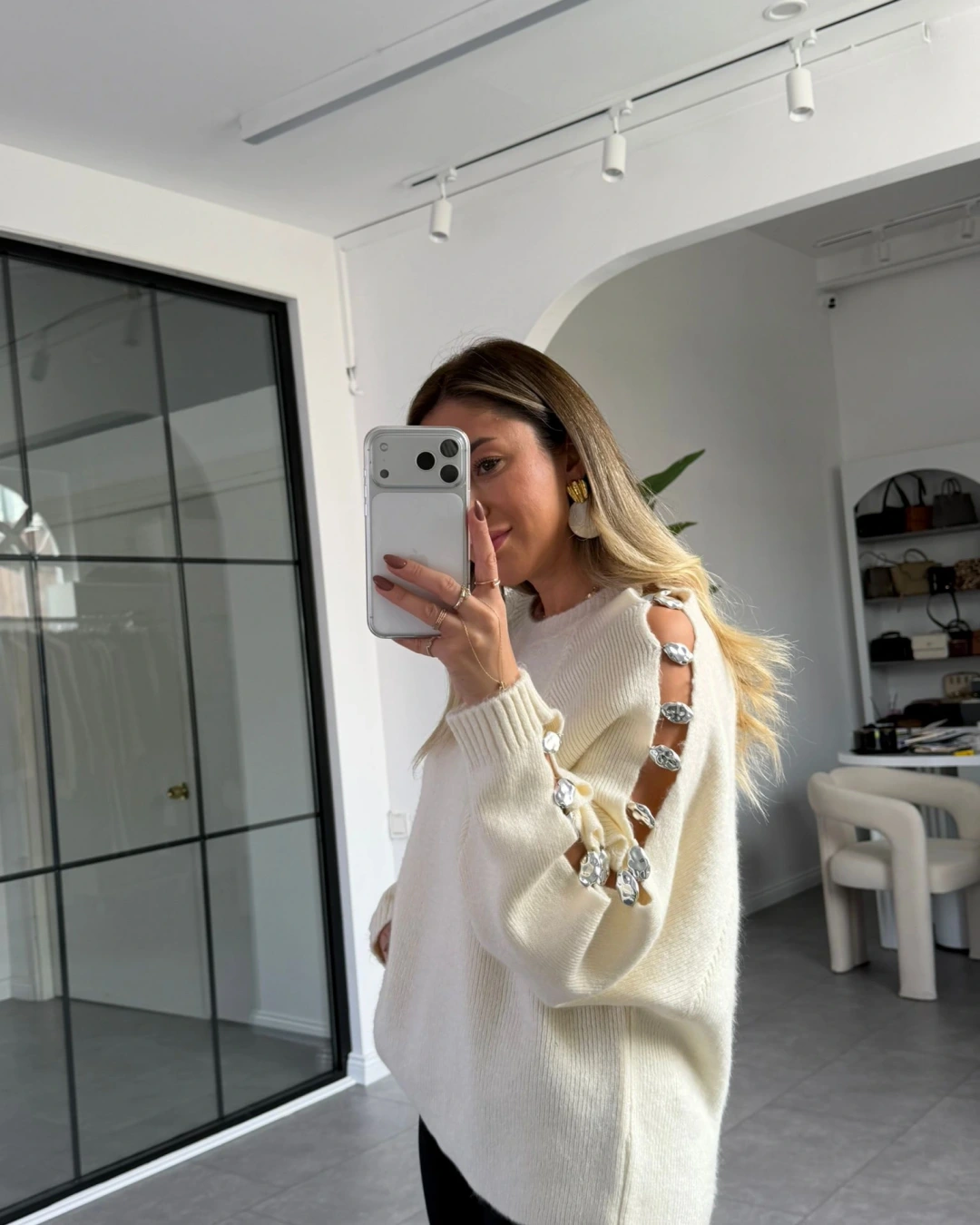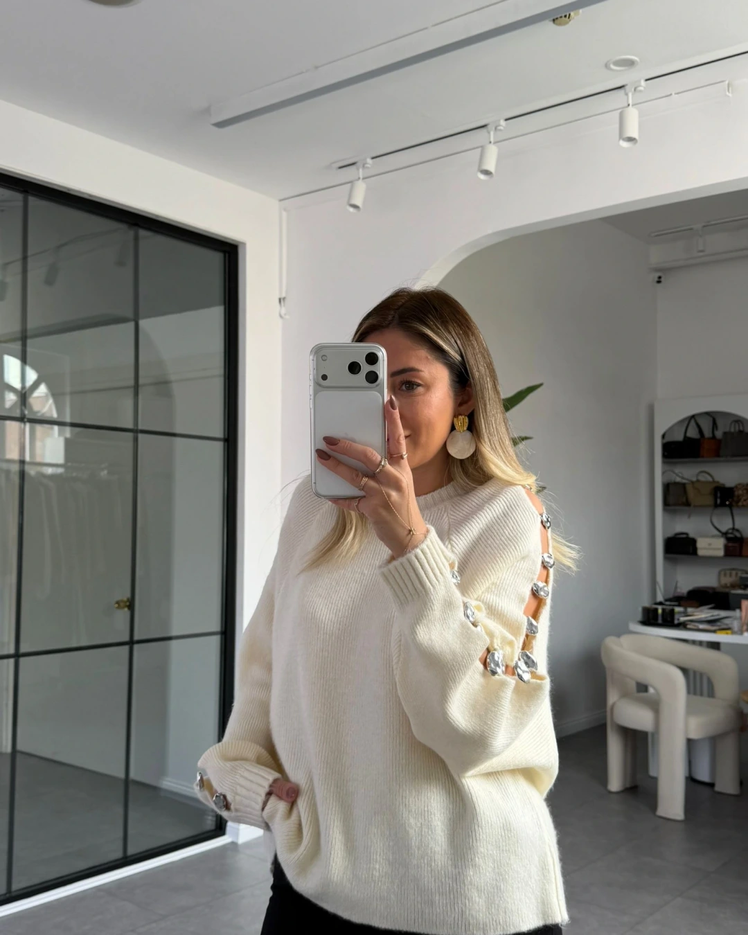EKRU KOLU AKSESUAR DETAYLI KAZAK
