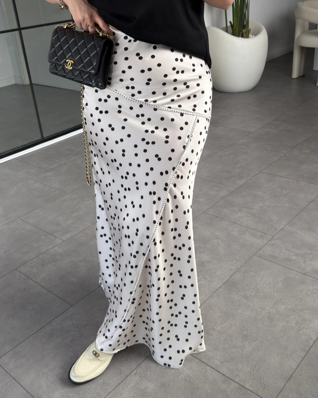 EKRU SİYAH PUANTİYELİ ETEK 8457