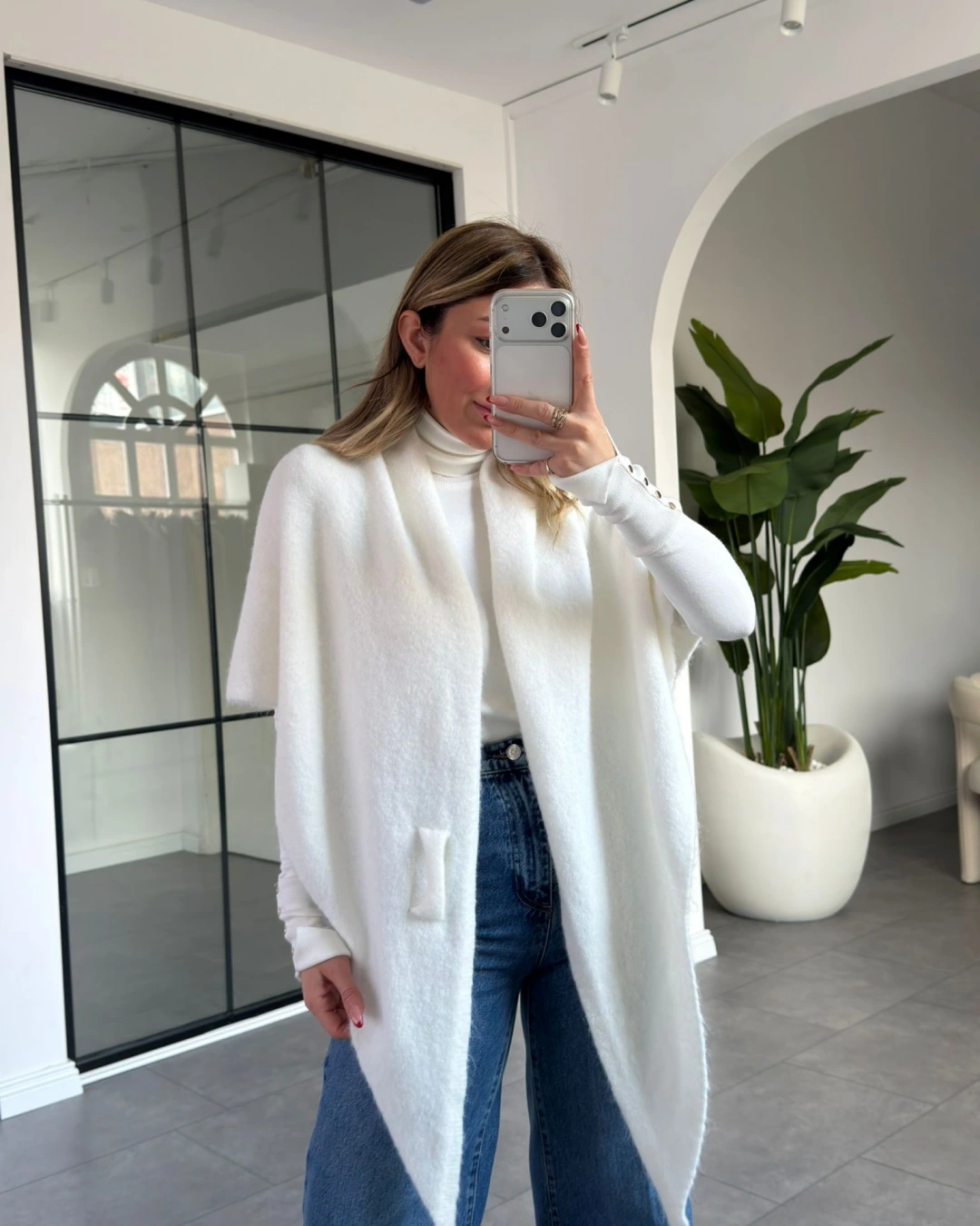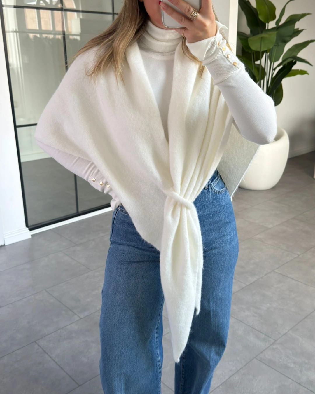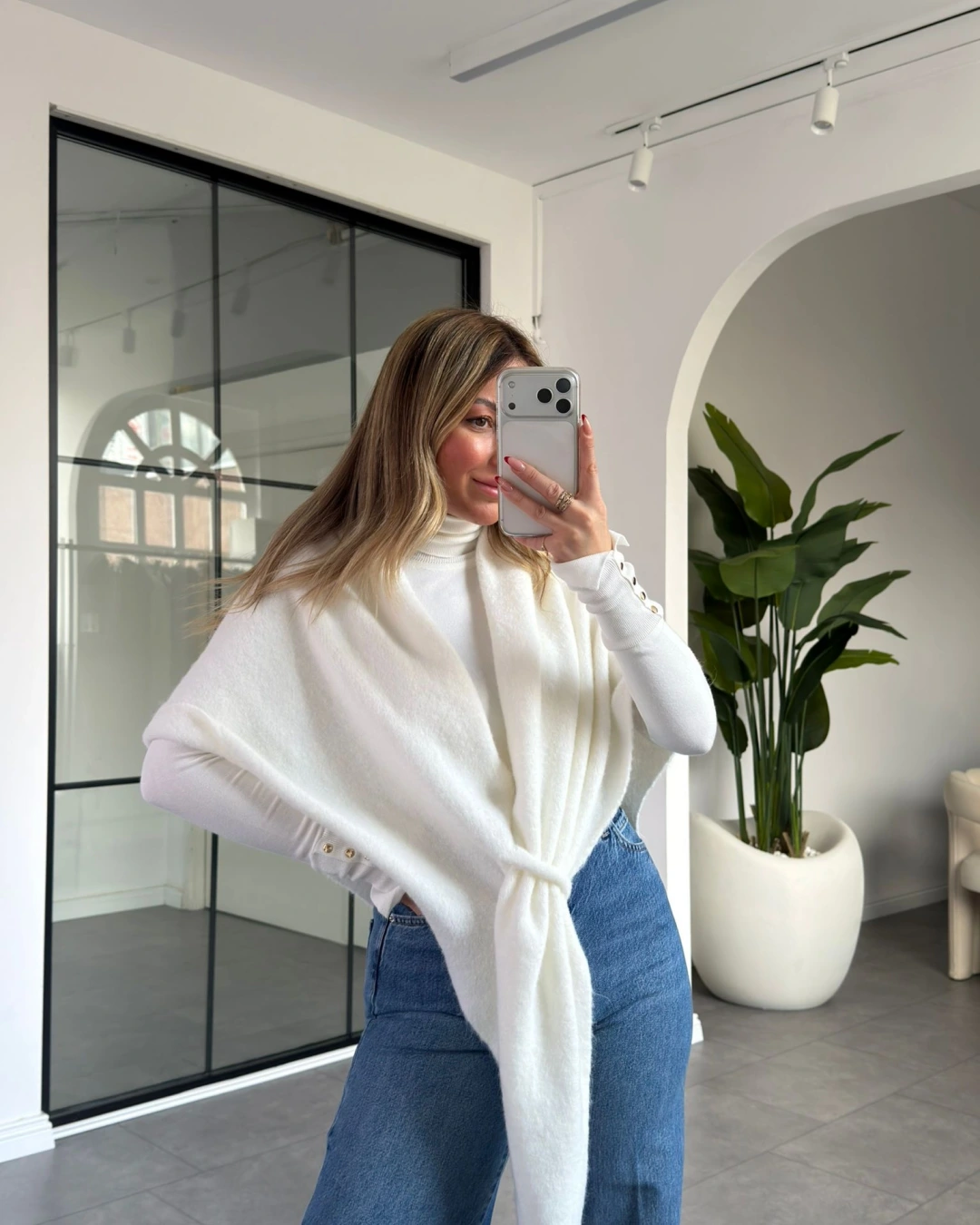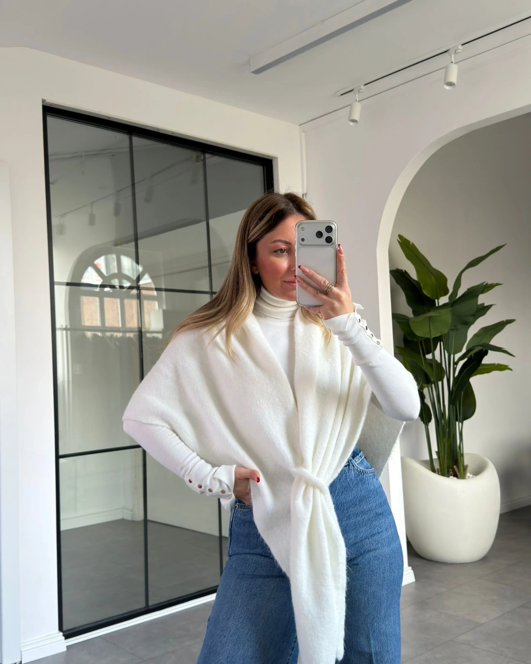 EKRU ÜÇGEN İÇTEN GEÇMELİ TRİKO ŞAL