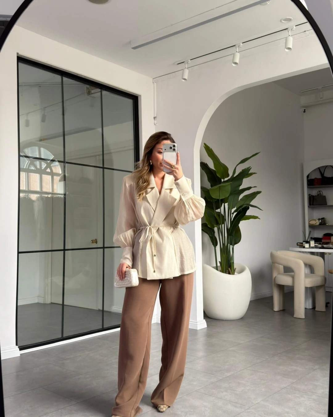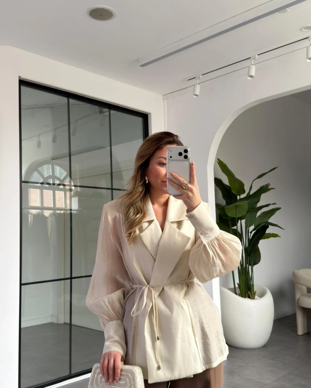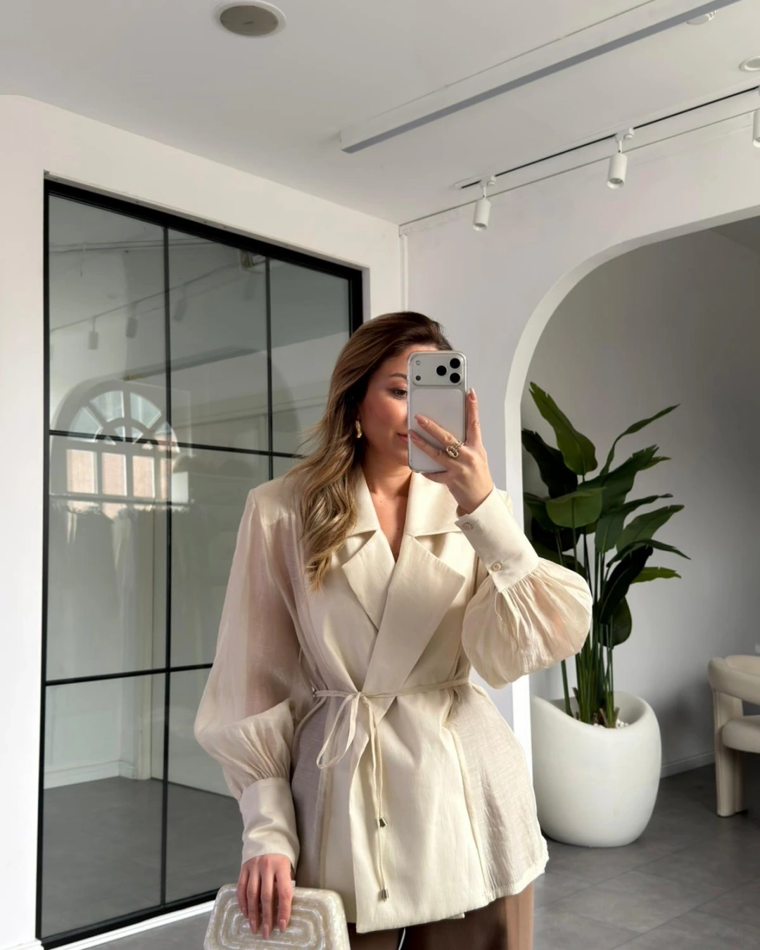 EKRU VATKALI KİMONO GÖMLEK 5029