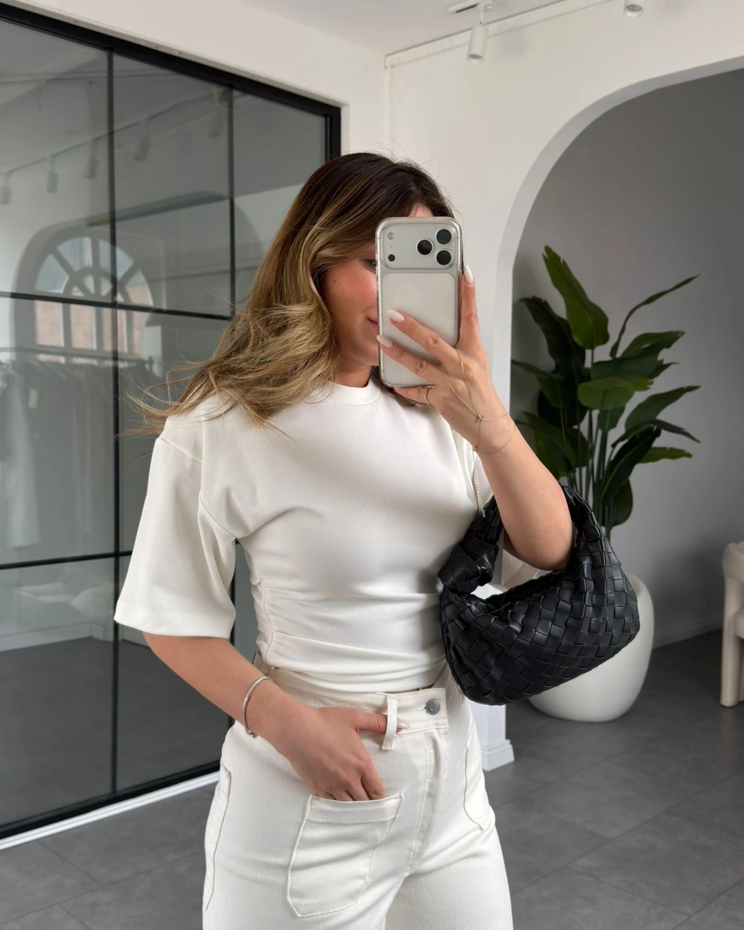 EKRU YANI BÜZGÜLÜ T-SHIRT 22982