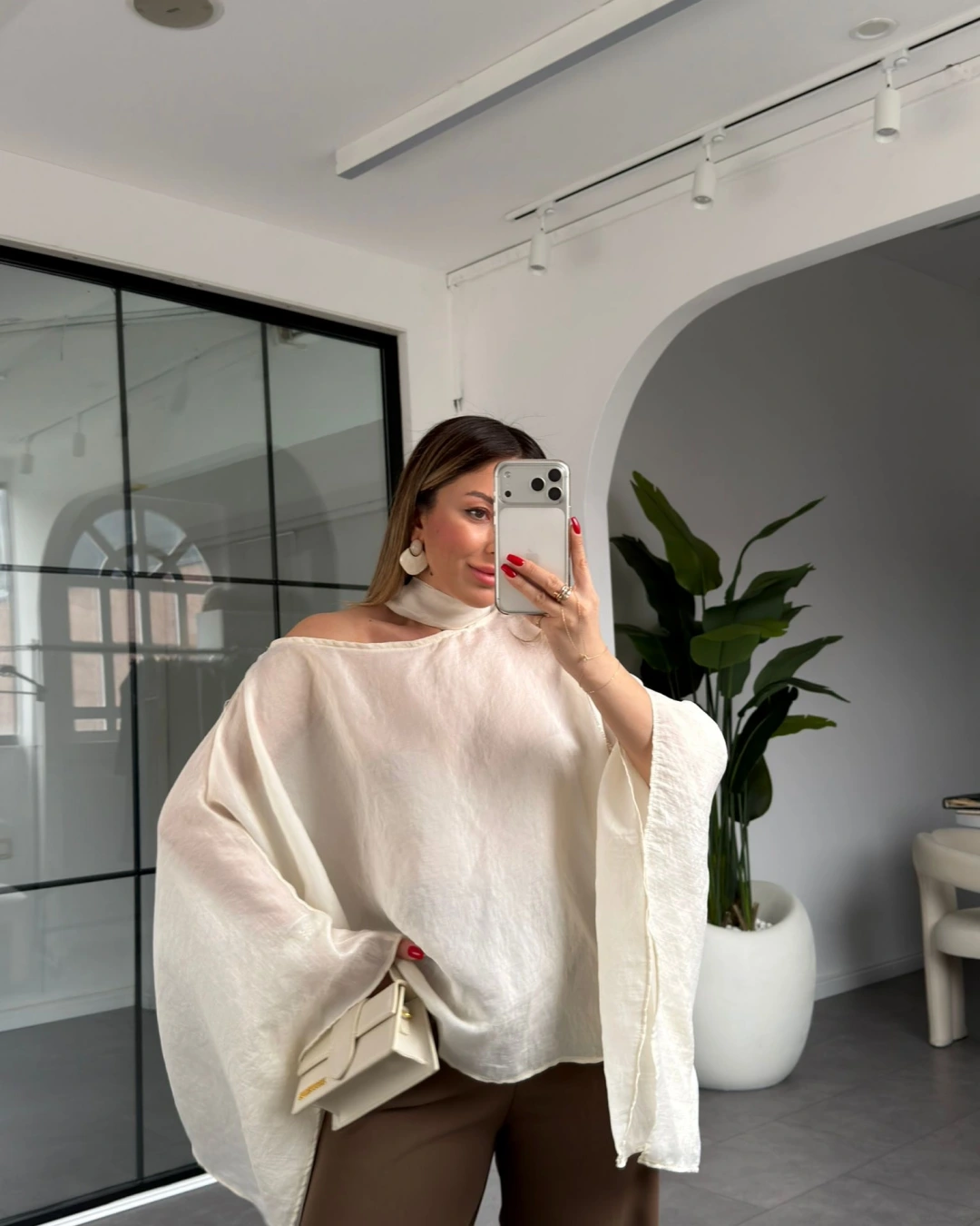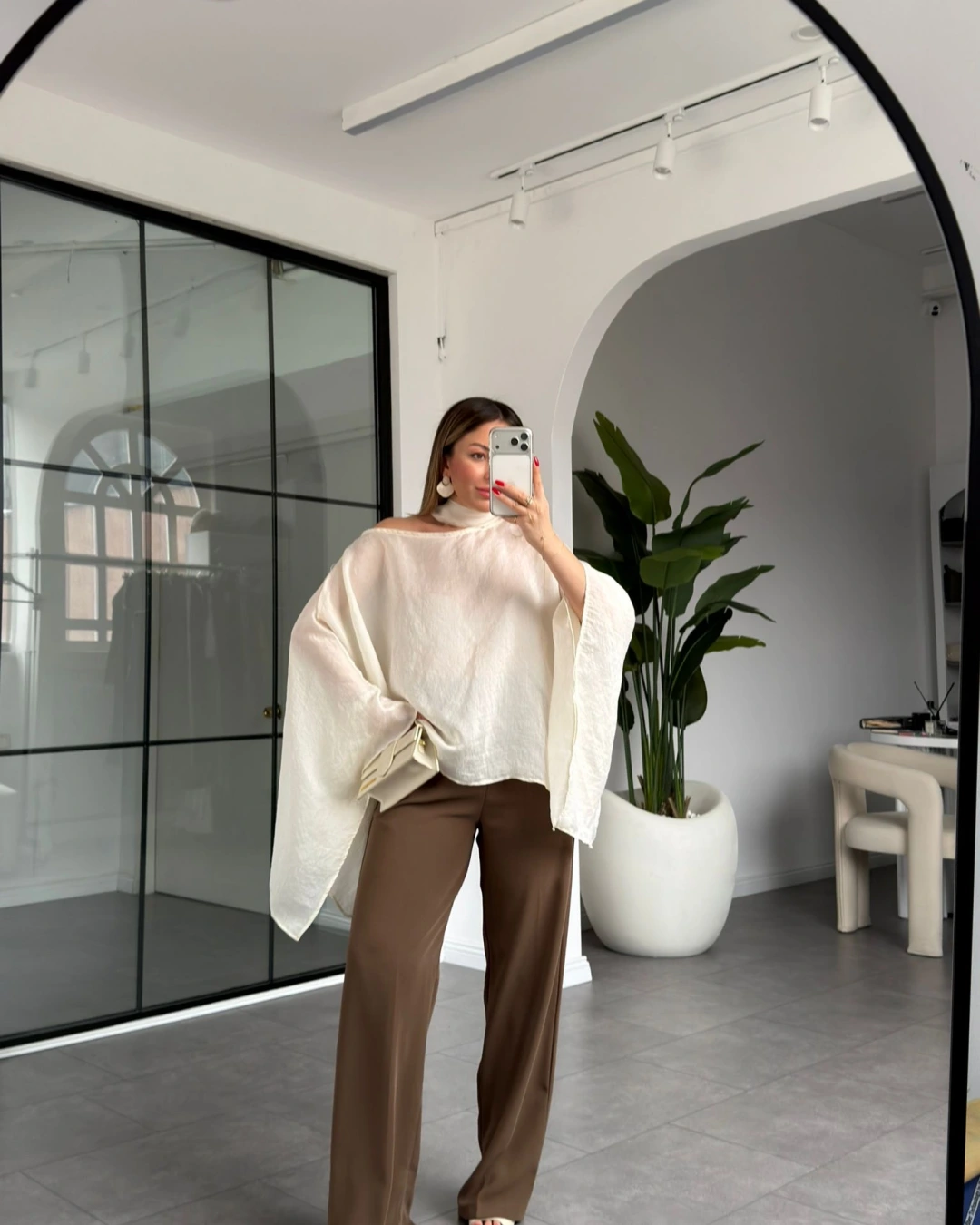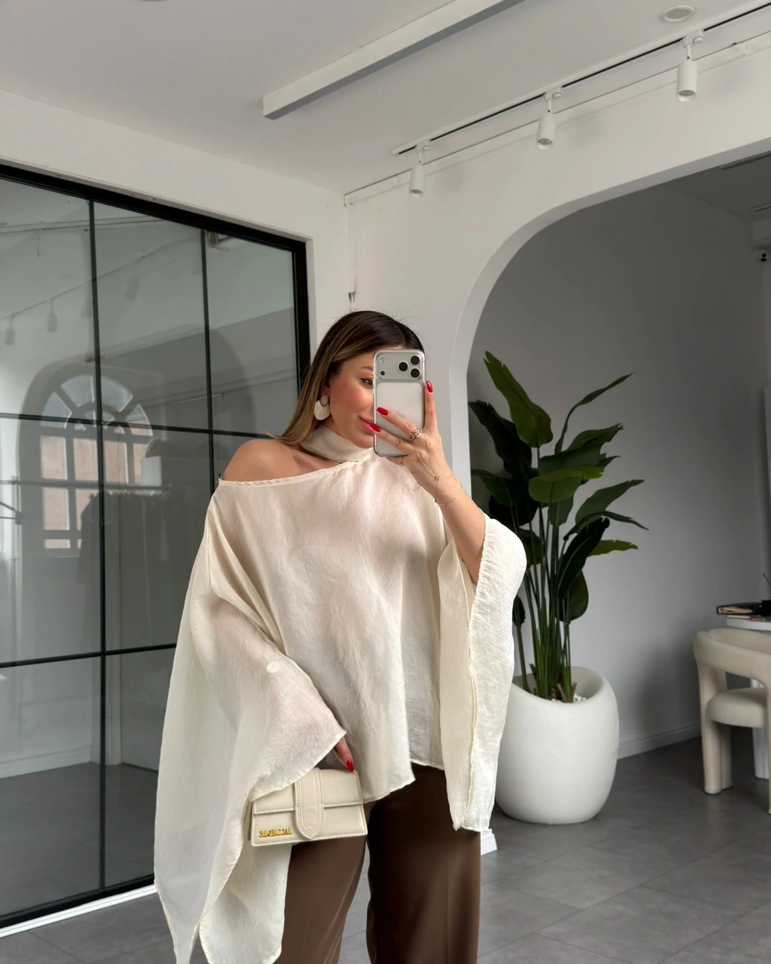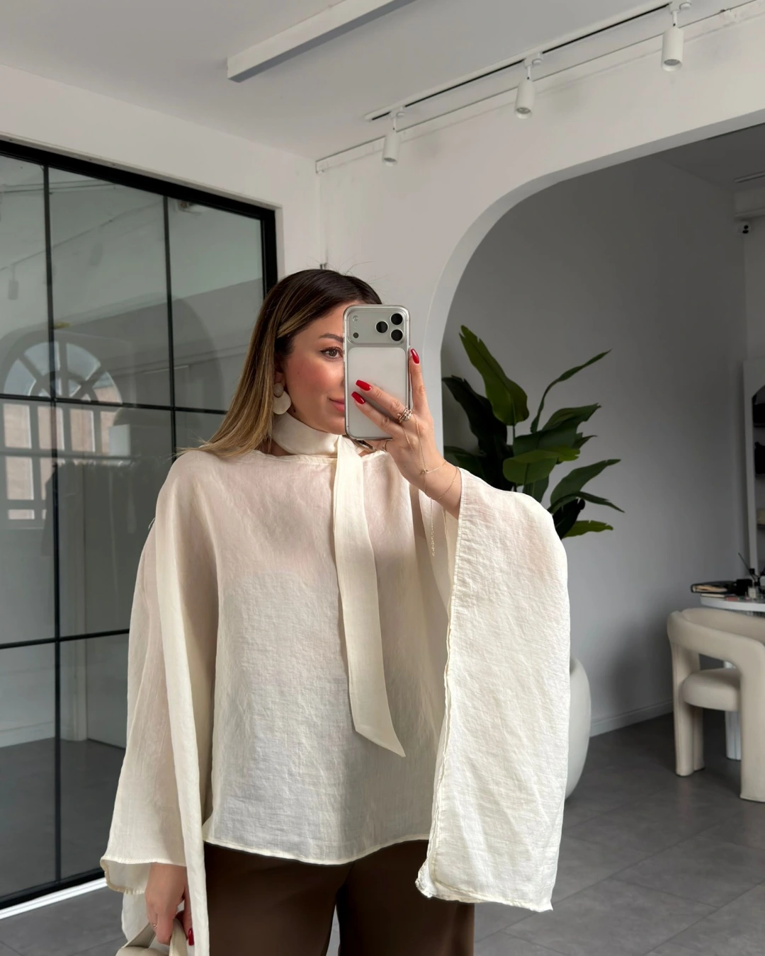 EKRU YARASA KOL KUŞAKLI BLUZ