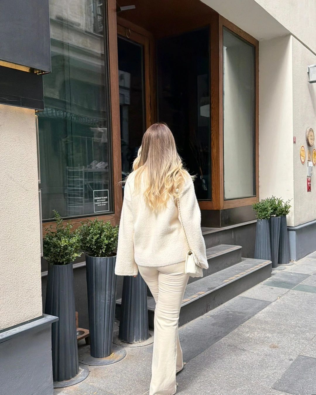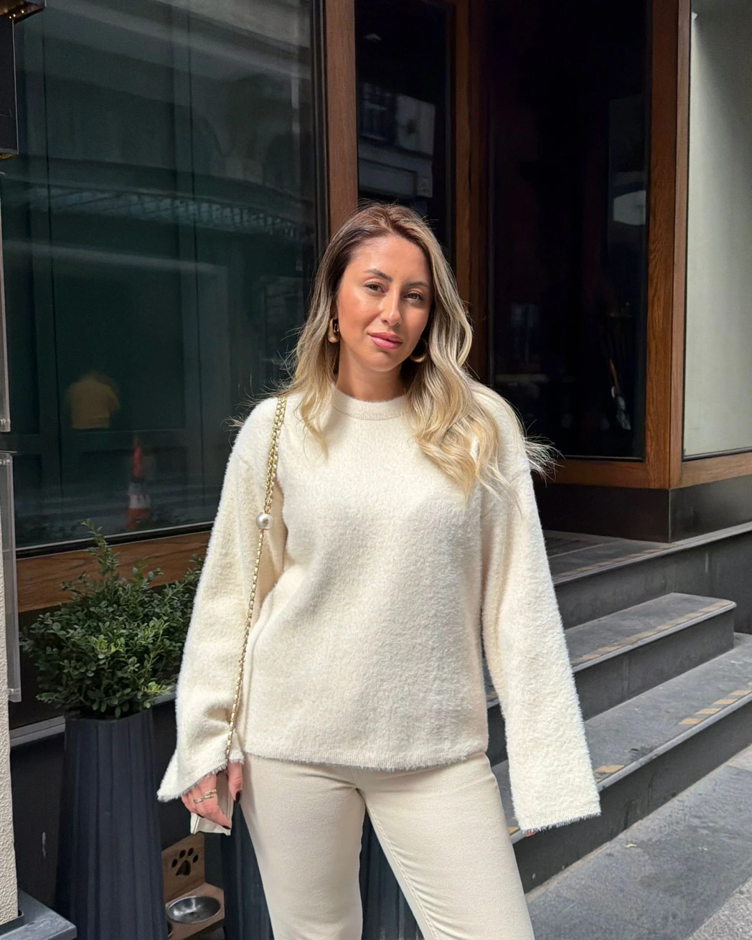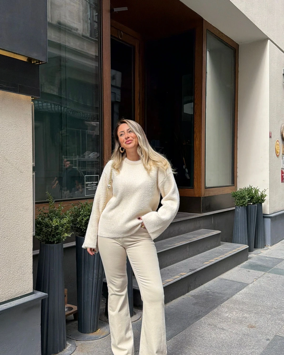 EKRU YUMOŞ DOKULU KAŞMİR KAZAK