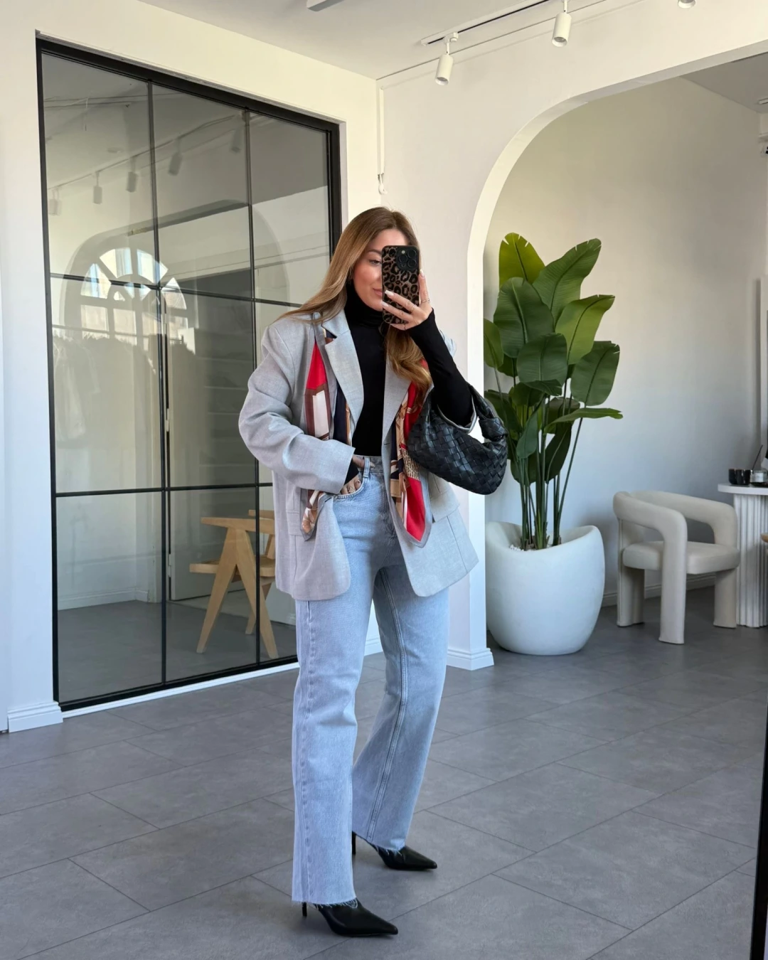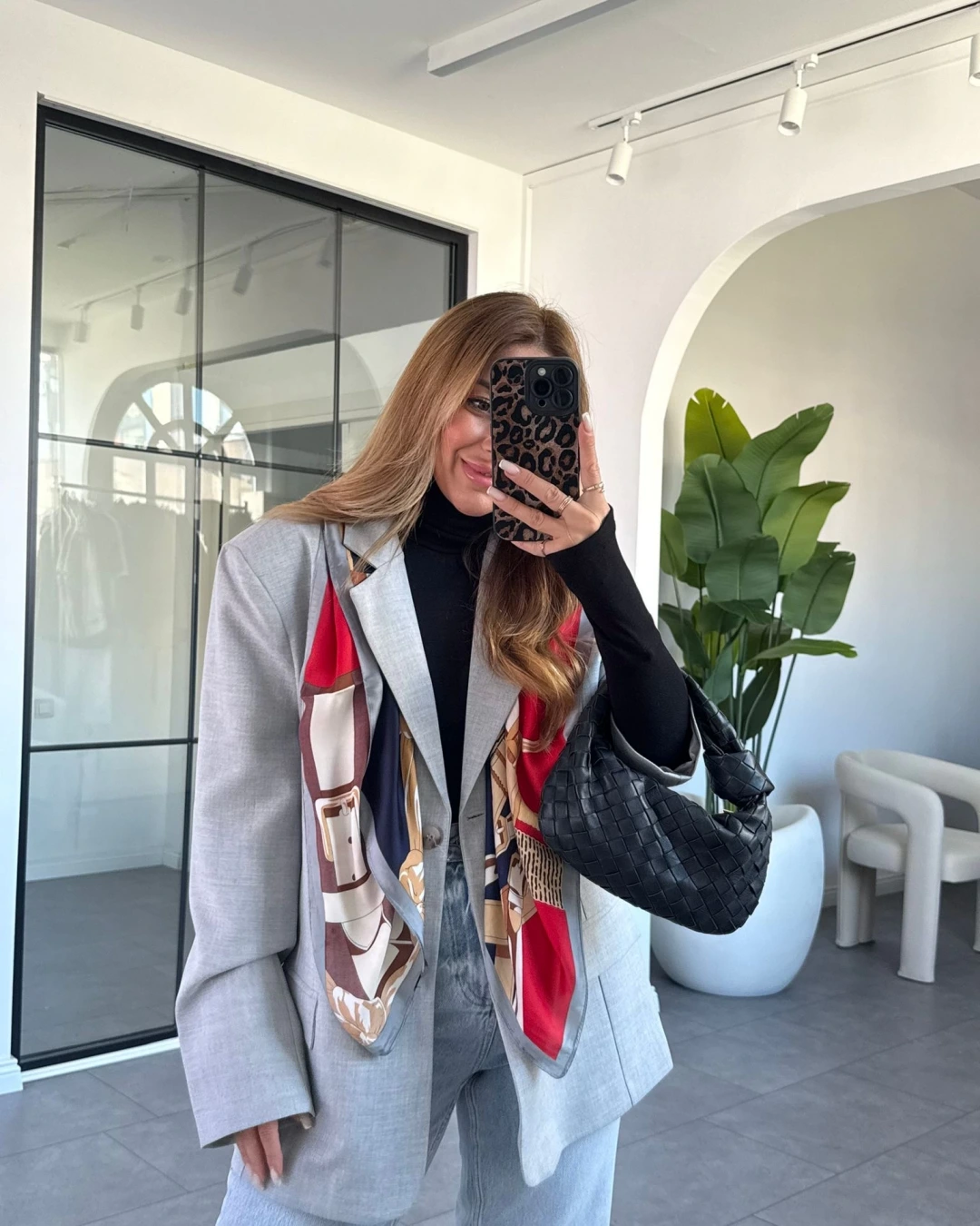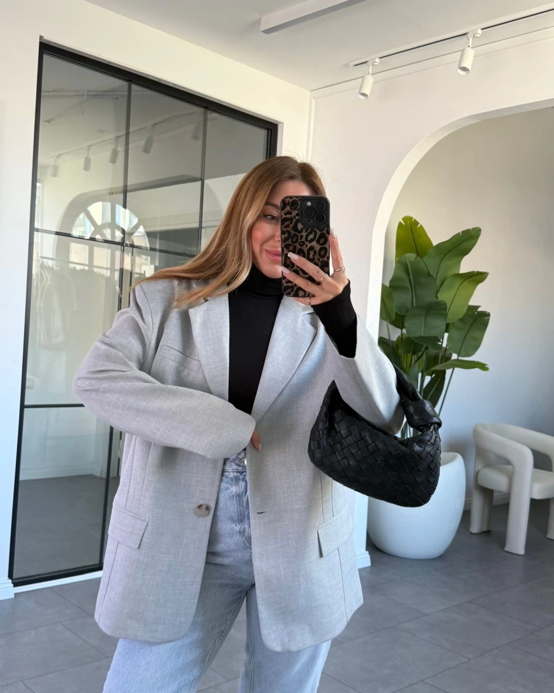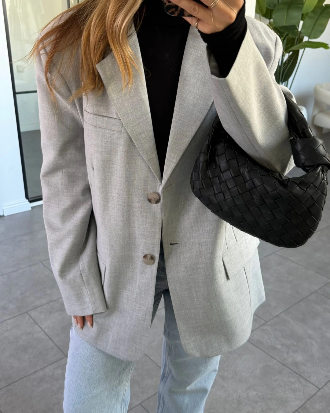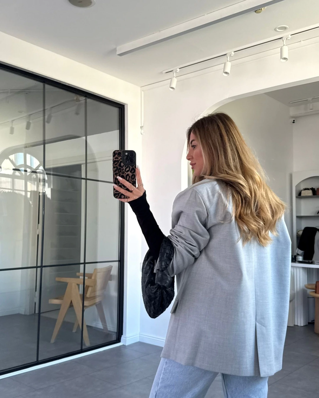 GRİ ÇİFT CEPLİ KRUVAZE YAKA CEKET