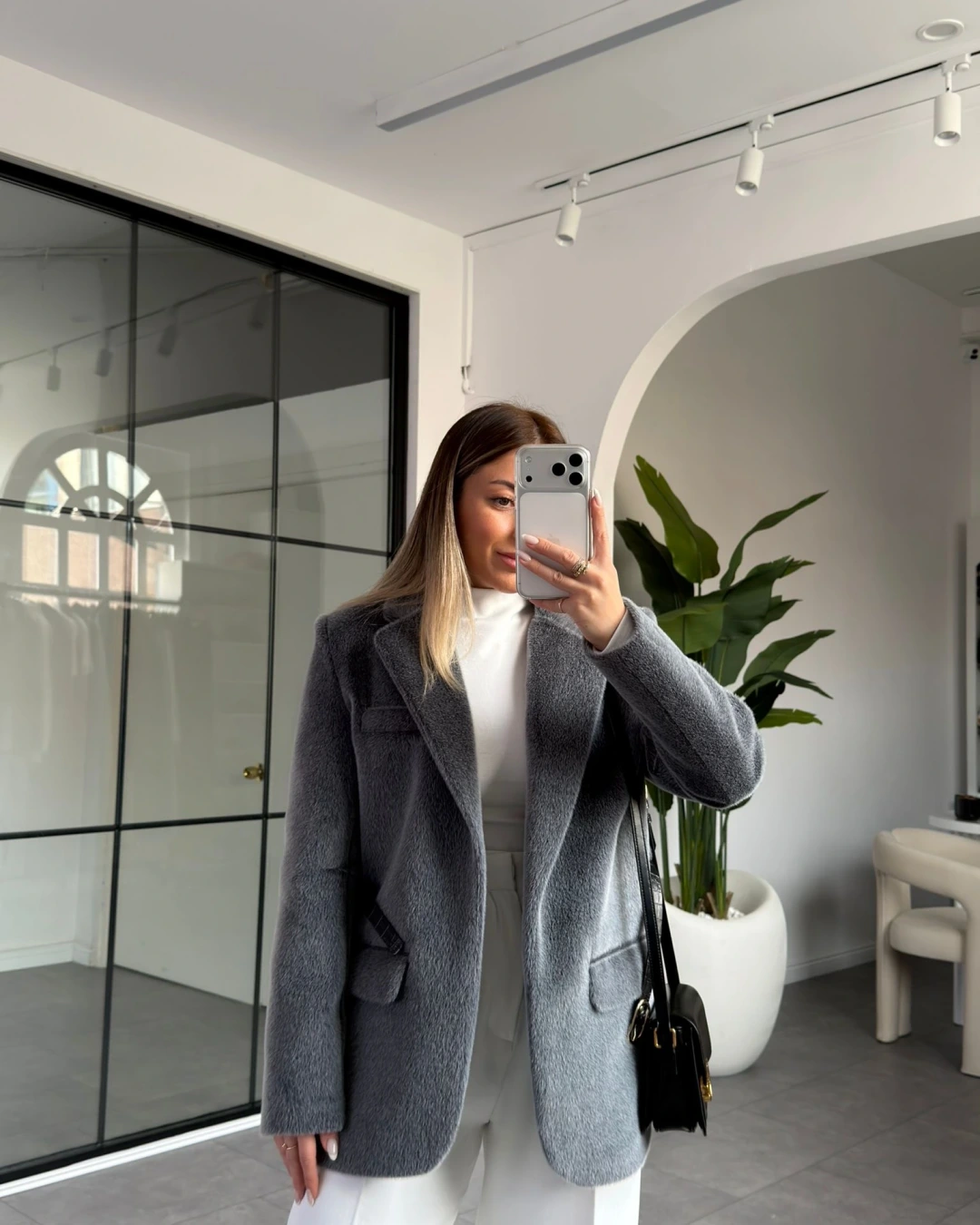 GRİ FİYONK BROŞ DETAYLI HIRKA