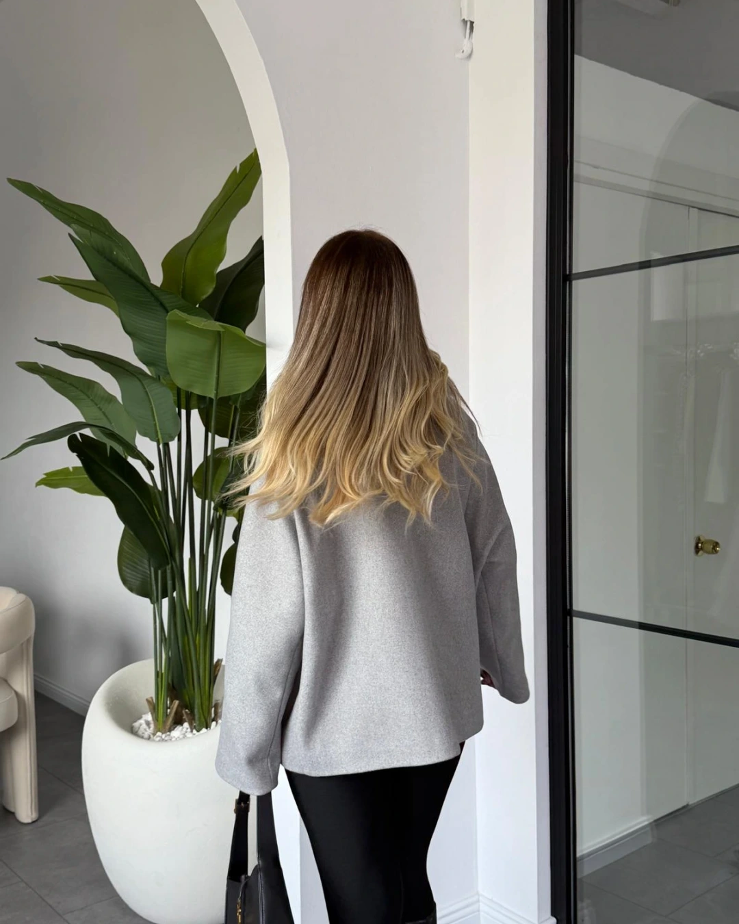 GRİ KÜRK YAKA DÖRT DÜĞMELİ KAŞE KABAN