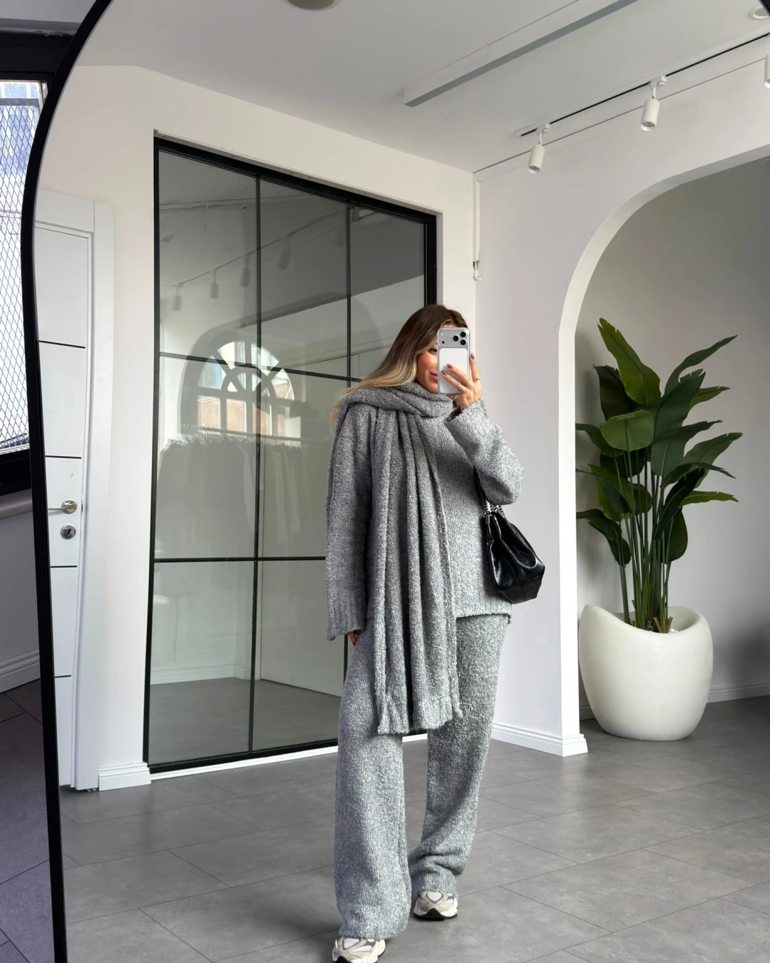GRİ ŞALLI YUMUŞACIK TRİKO TAKIM