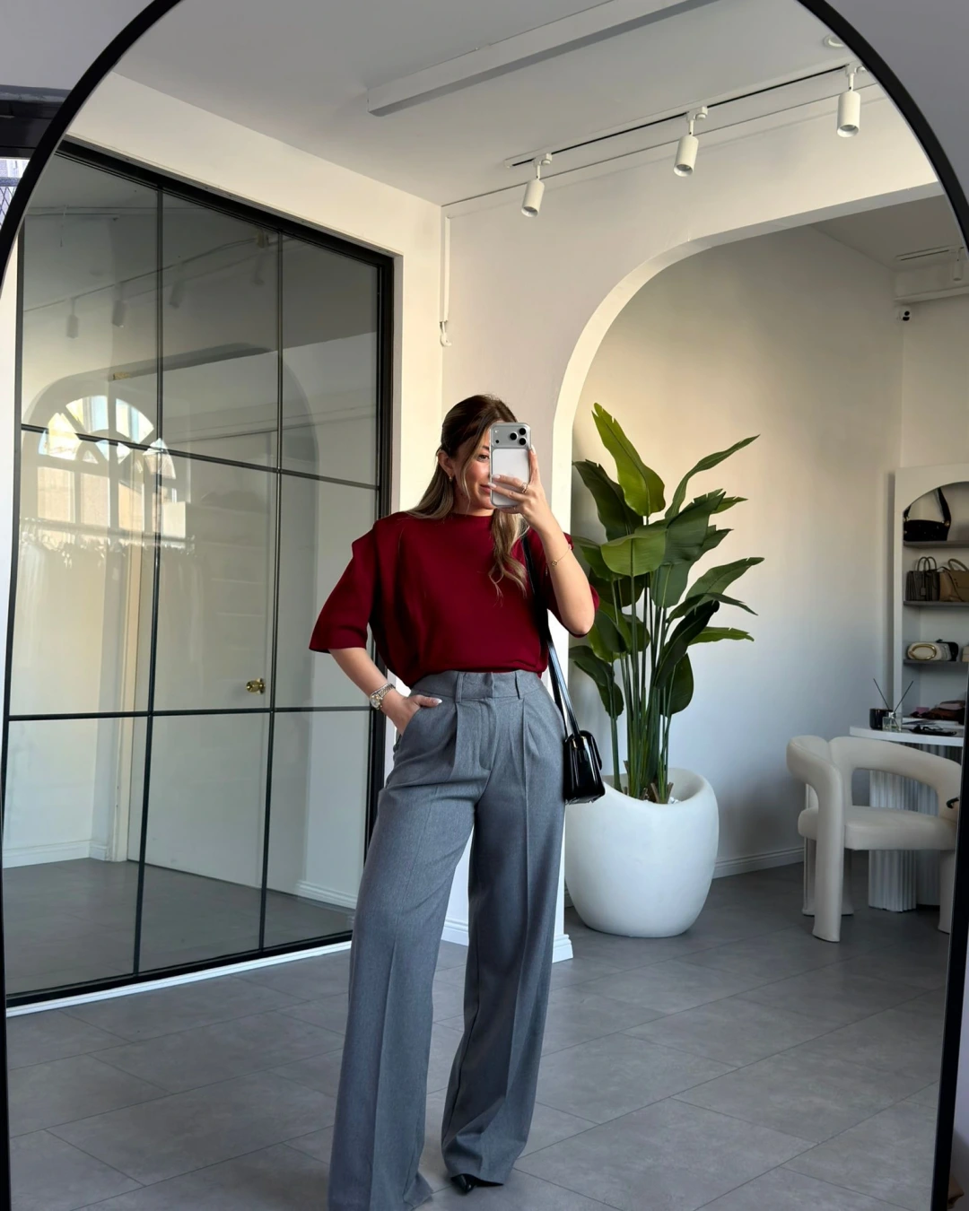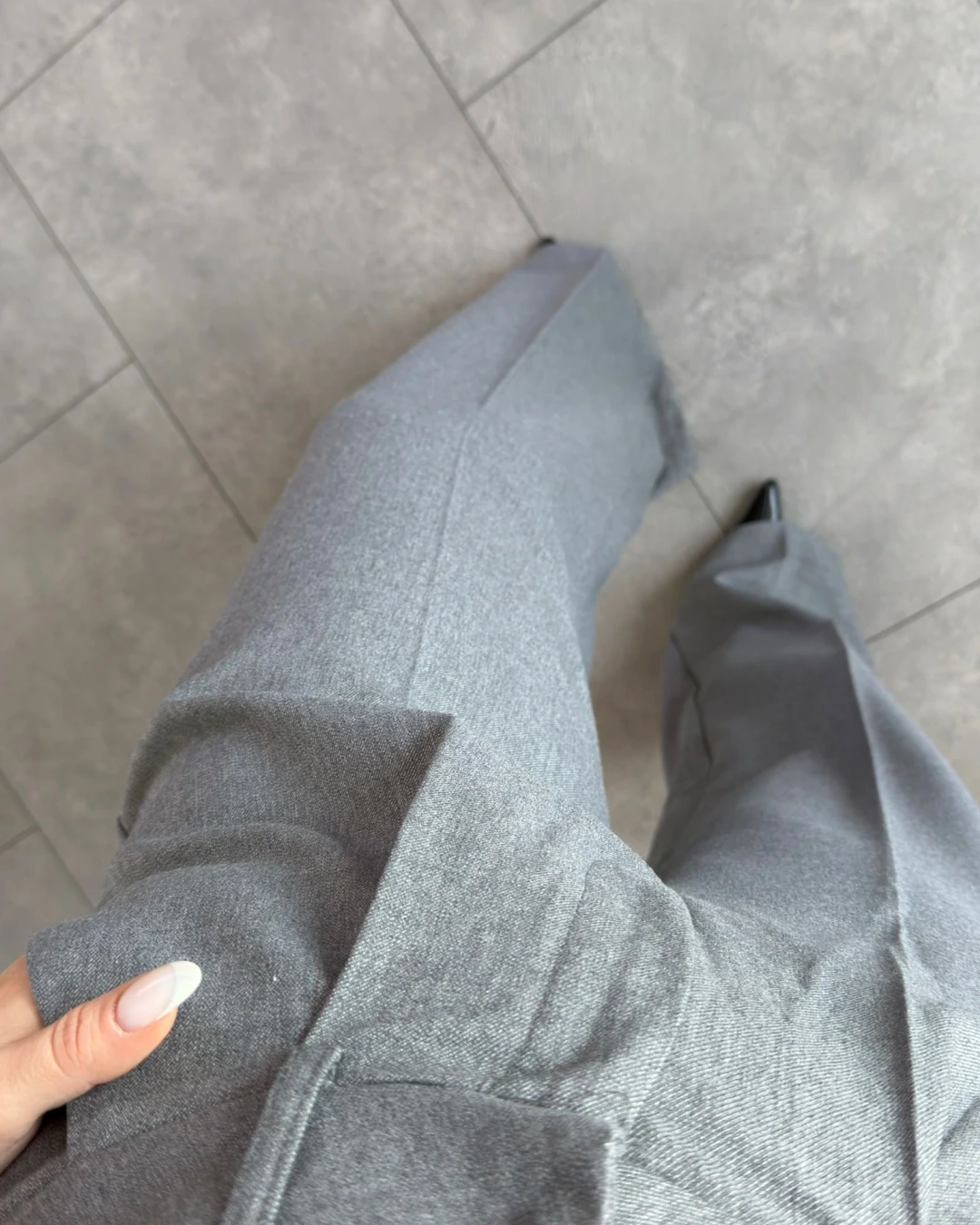 GRİ YÜKSEK BEL PALAZZO PANTOLON