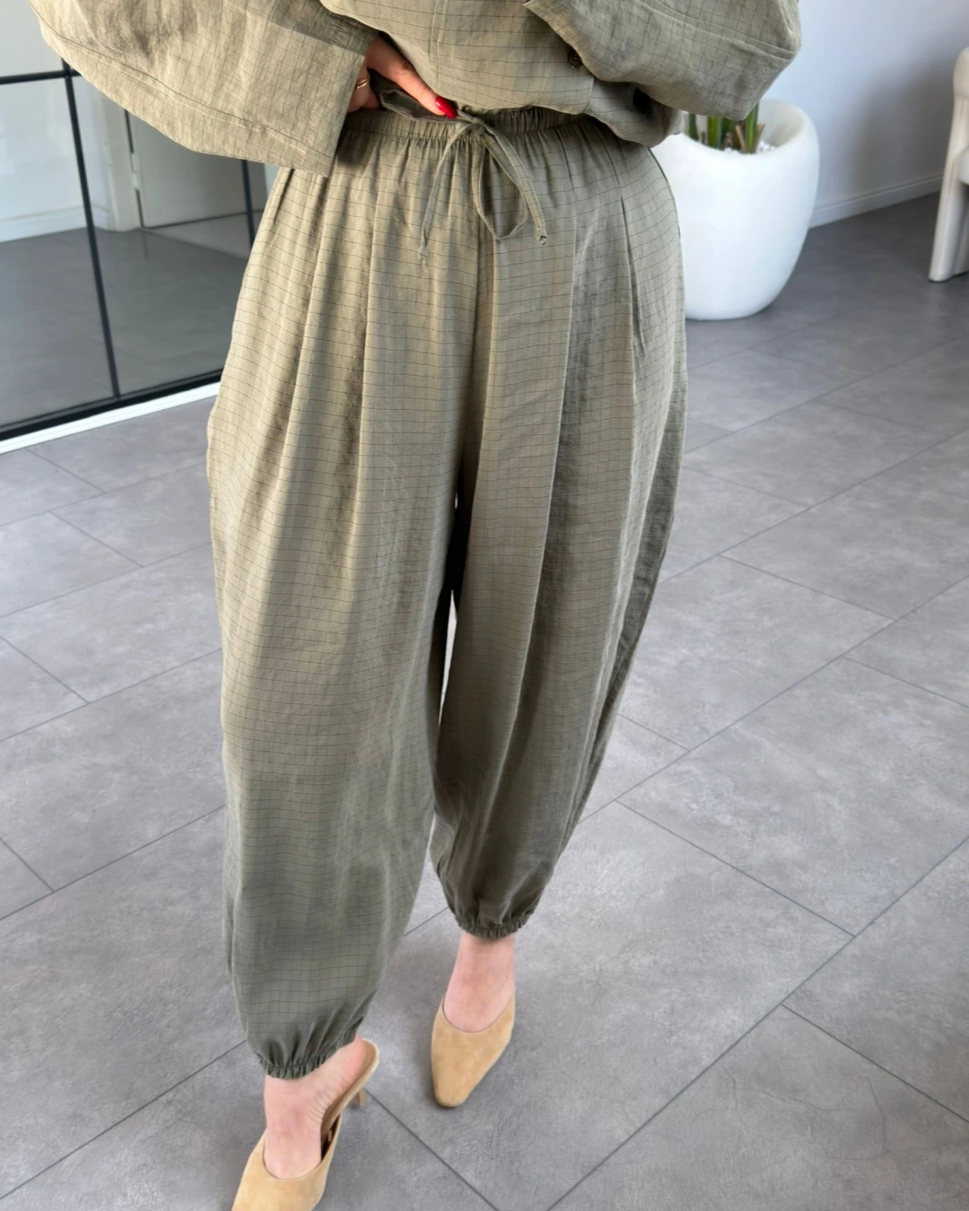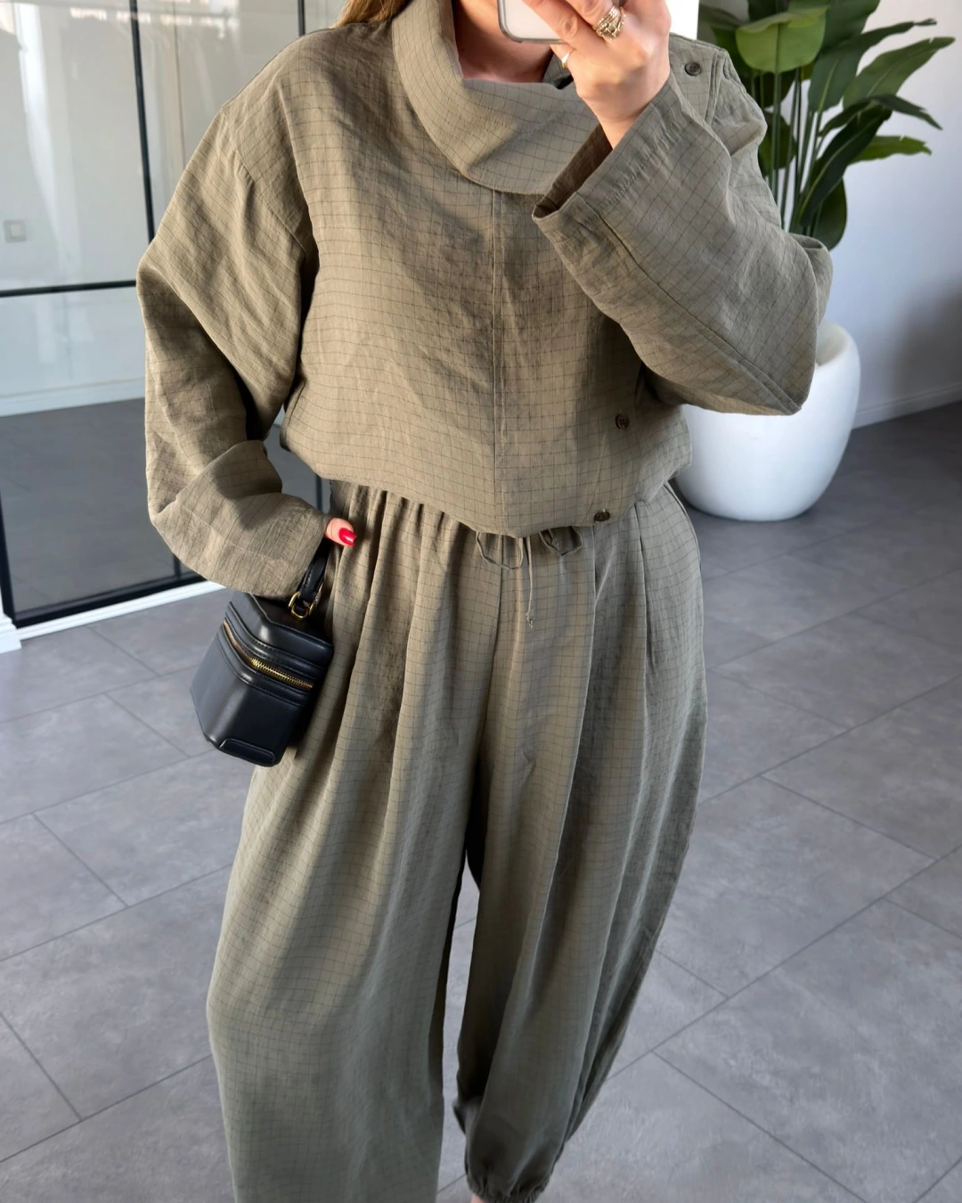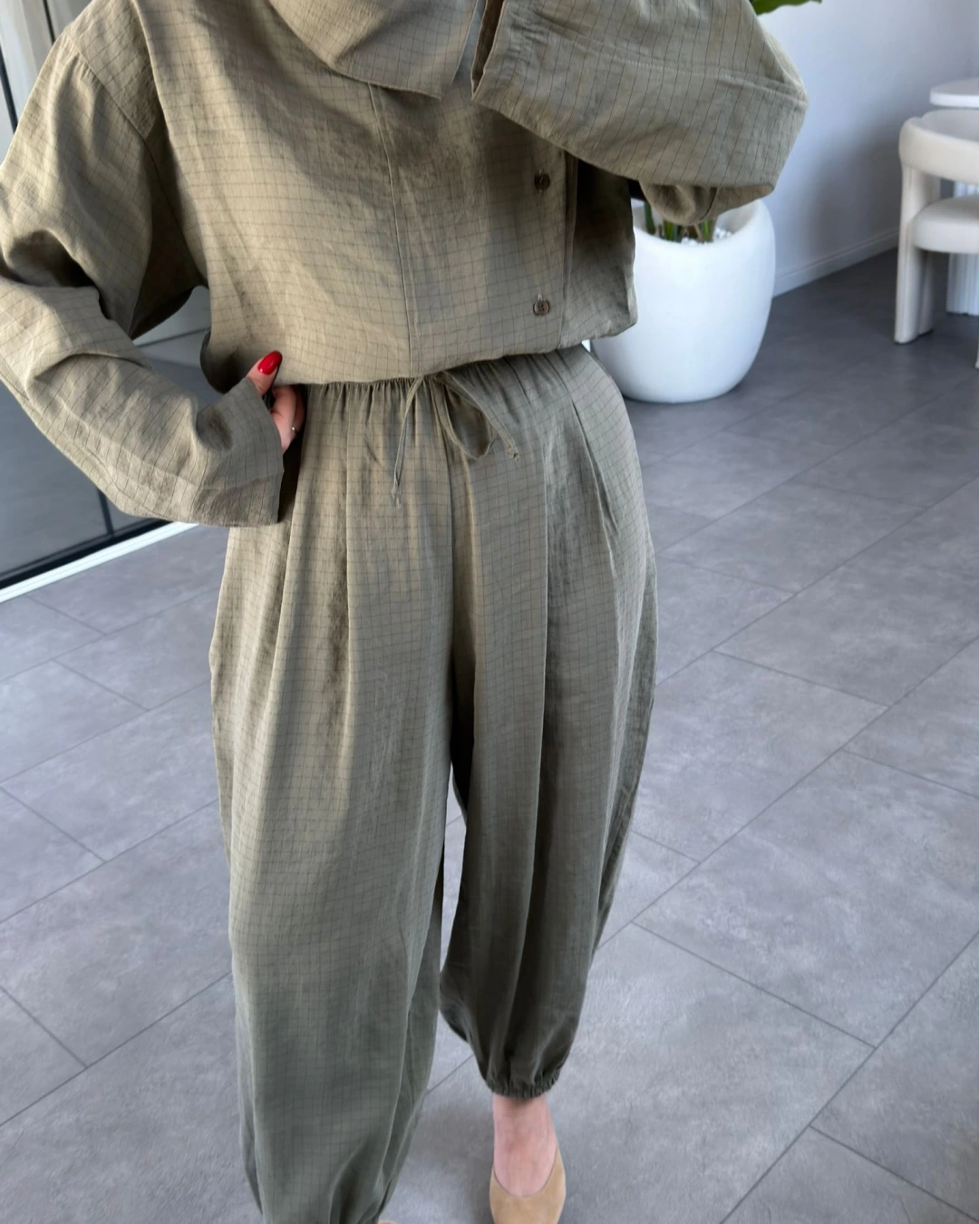 HAKİ DİK YAKA YUMUŞACIK DOKULU ŞALVAR TAKIM 51318