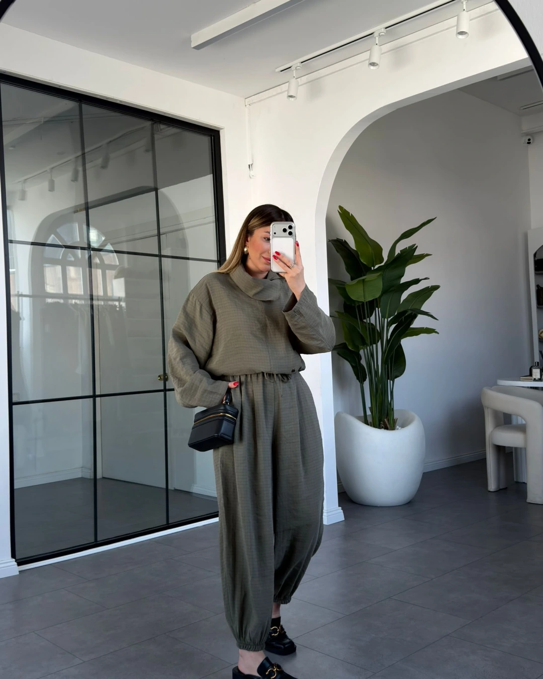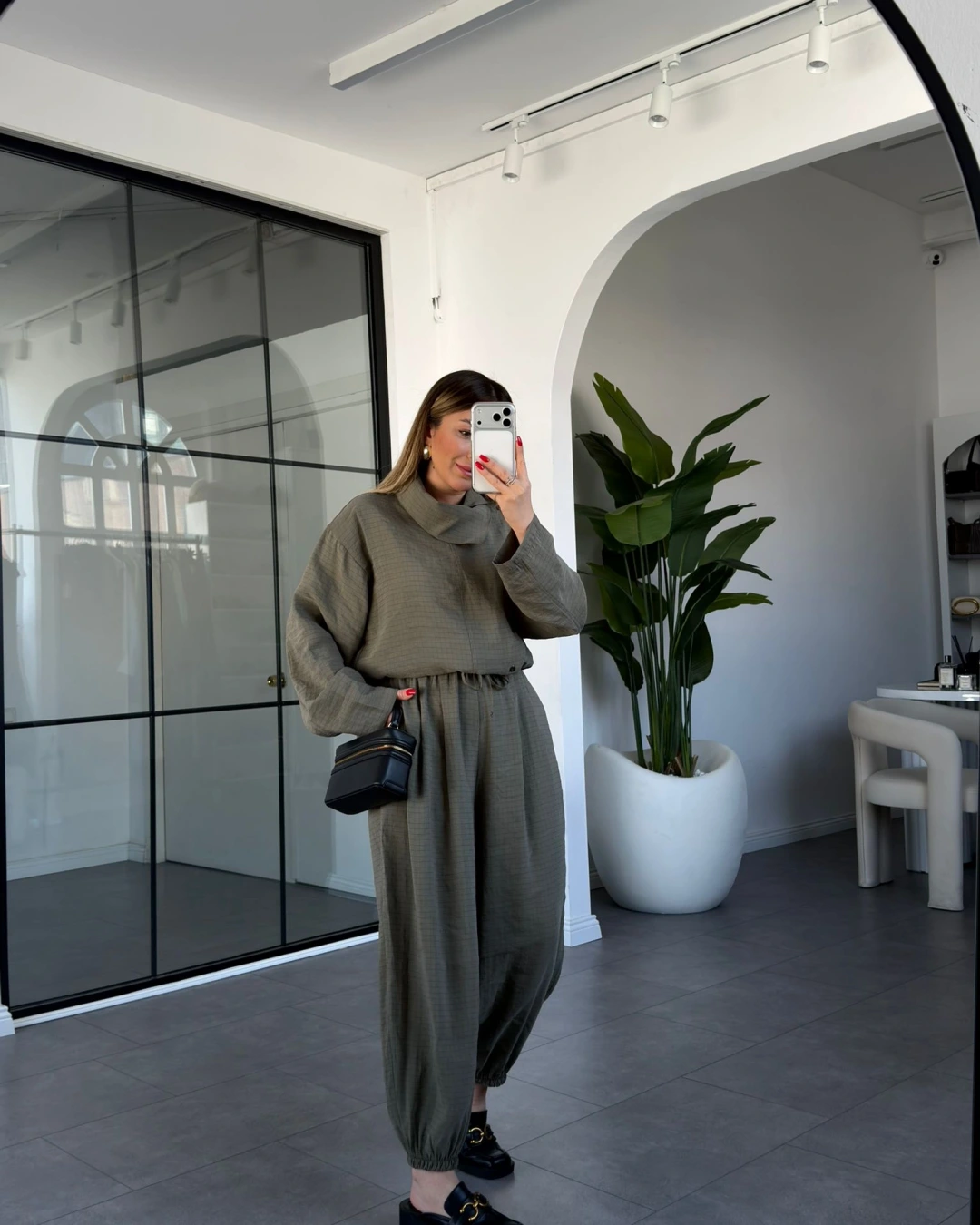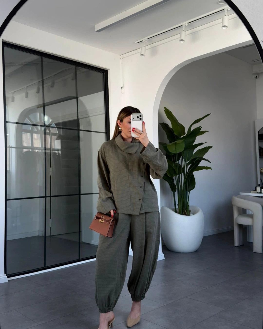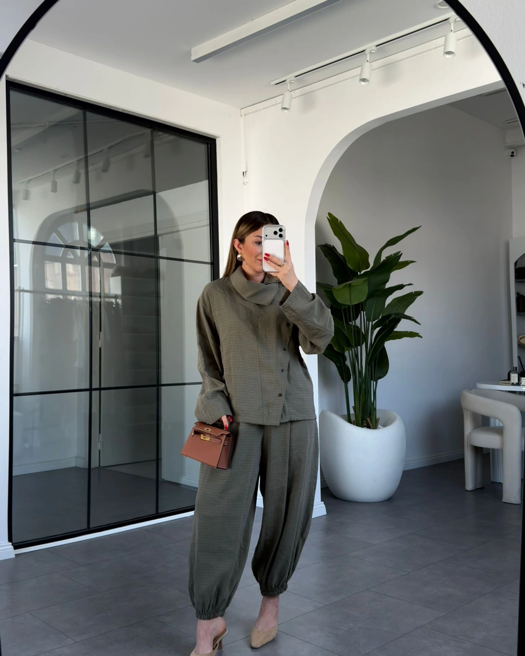 HAKİ DİK YAKA YUMUŞACIK DOKULU ŞALVAR TAKIM 51318