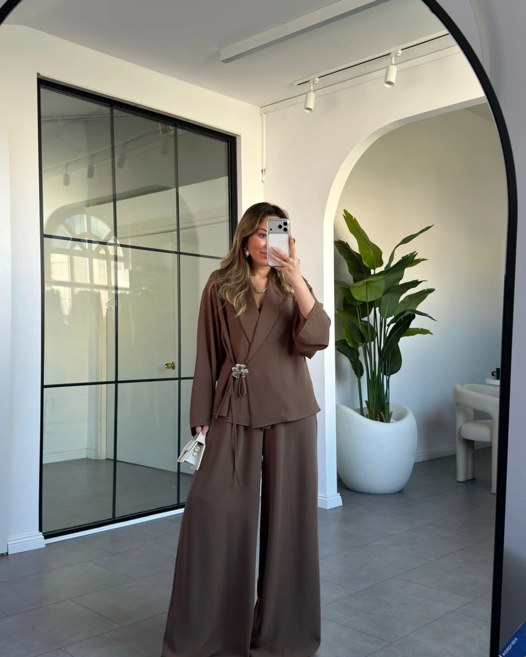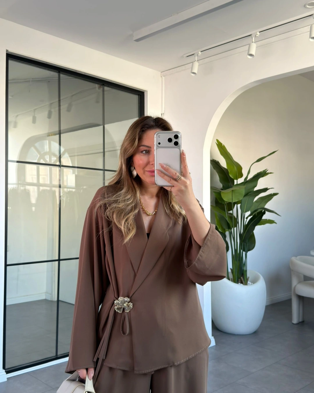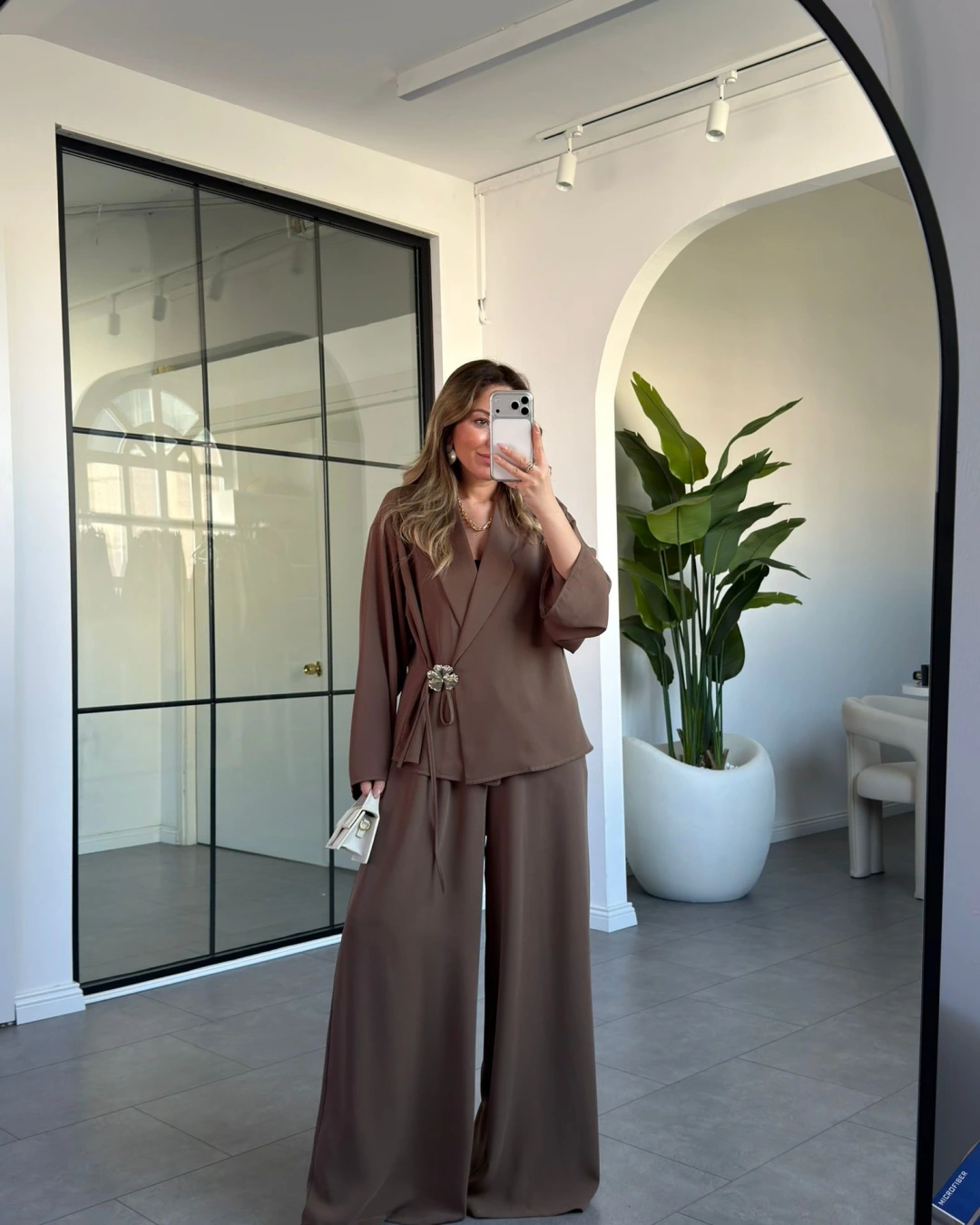 HAKİ GÜL BROŞLU KİMONO TAKIM 8896