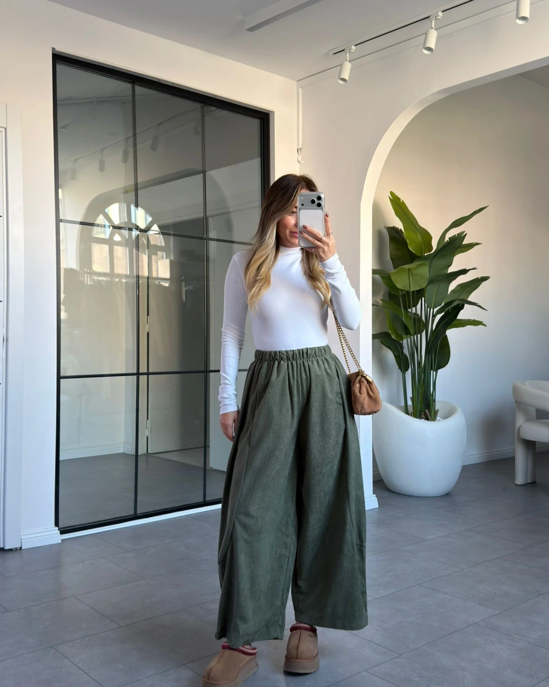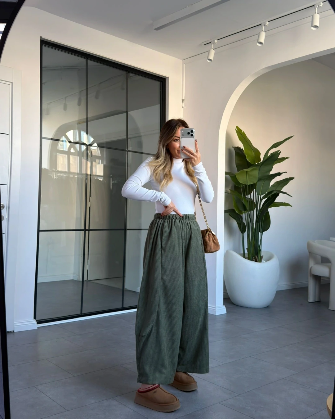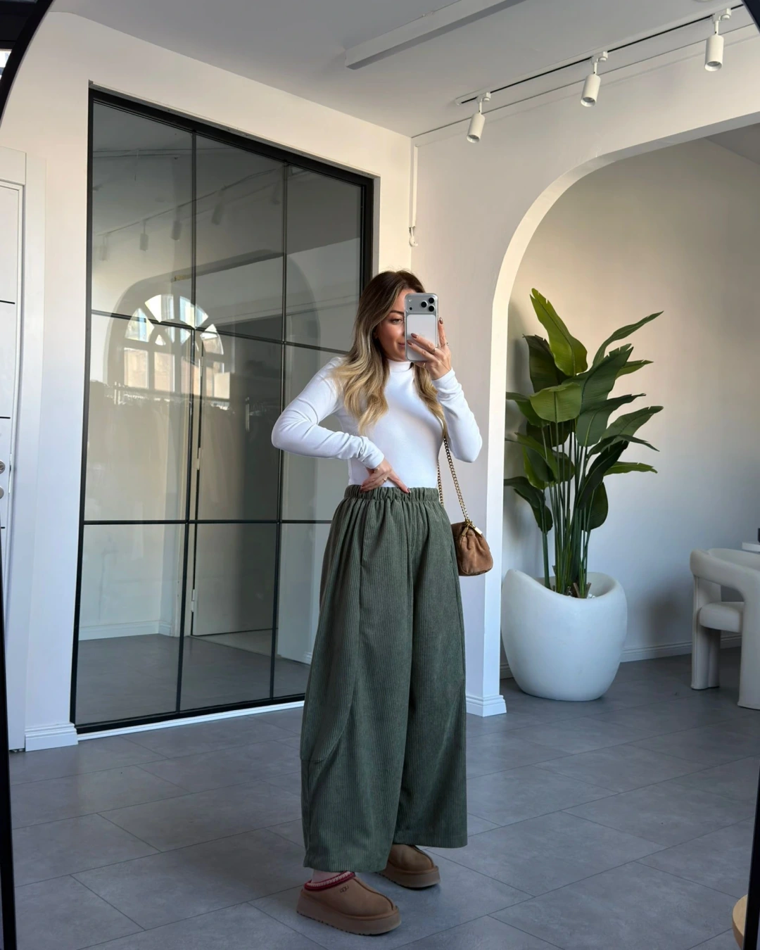 HAKİ KADİFE FİTİLLİ ŞALVAR