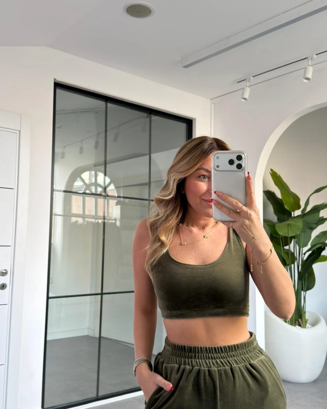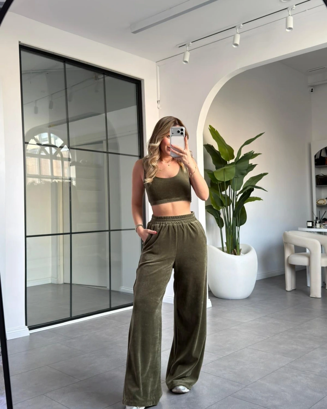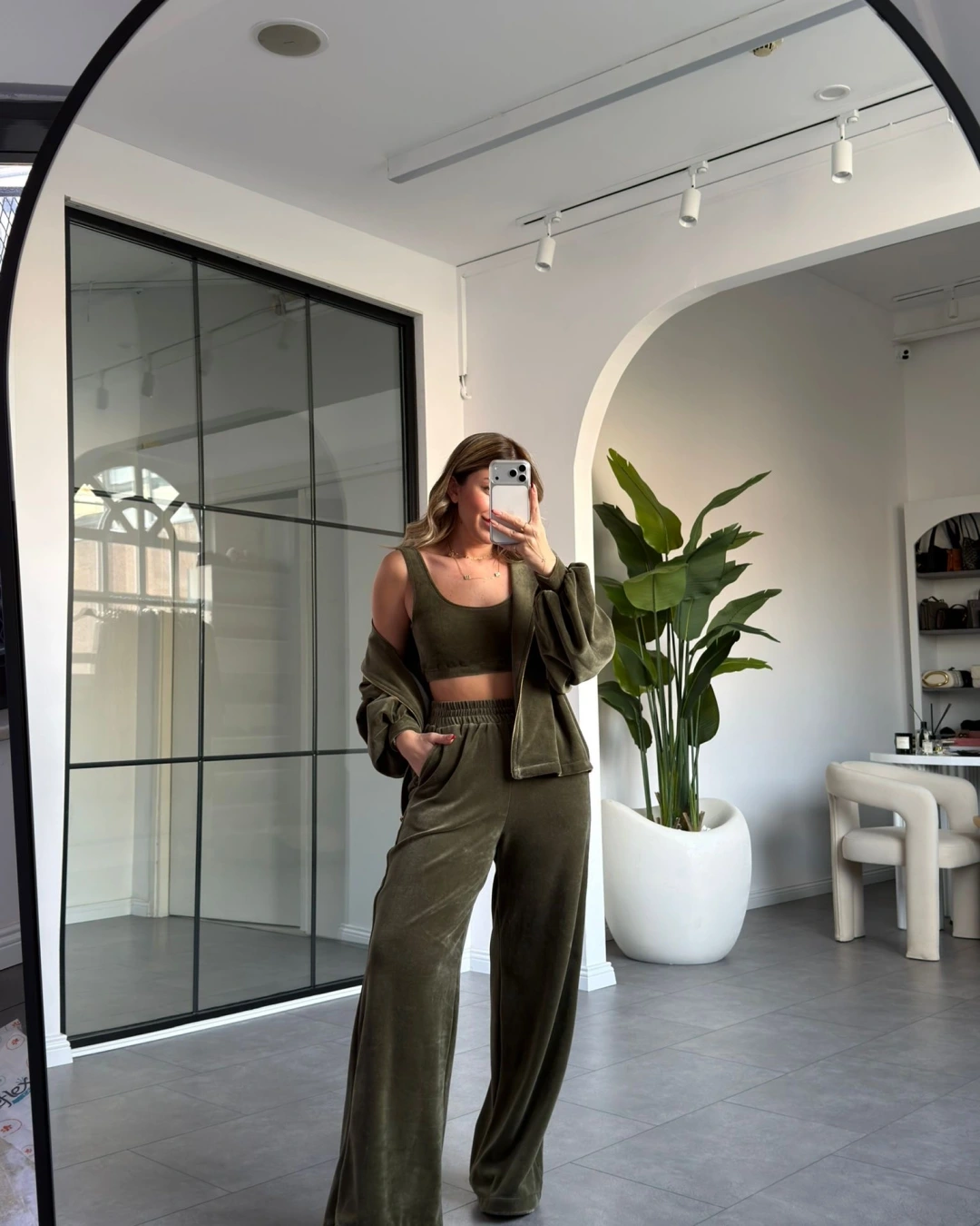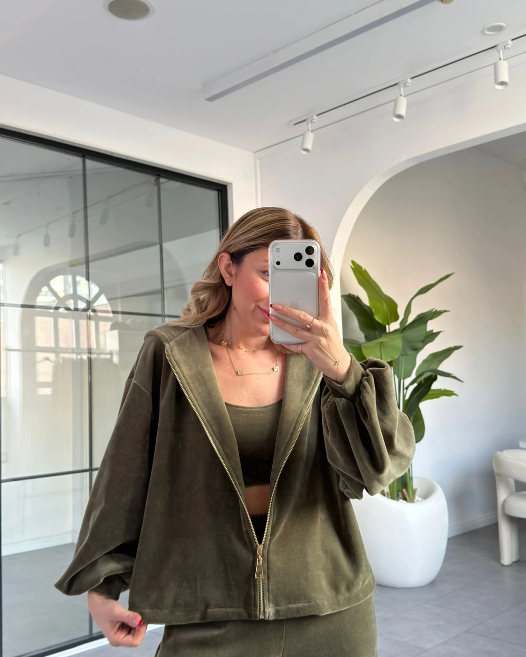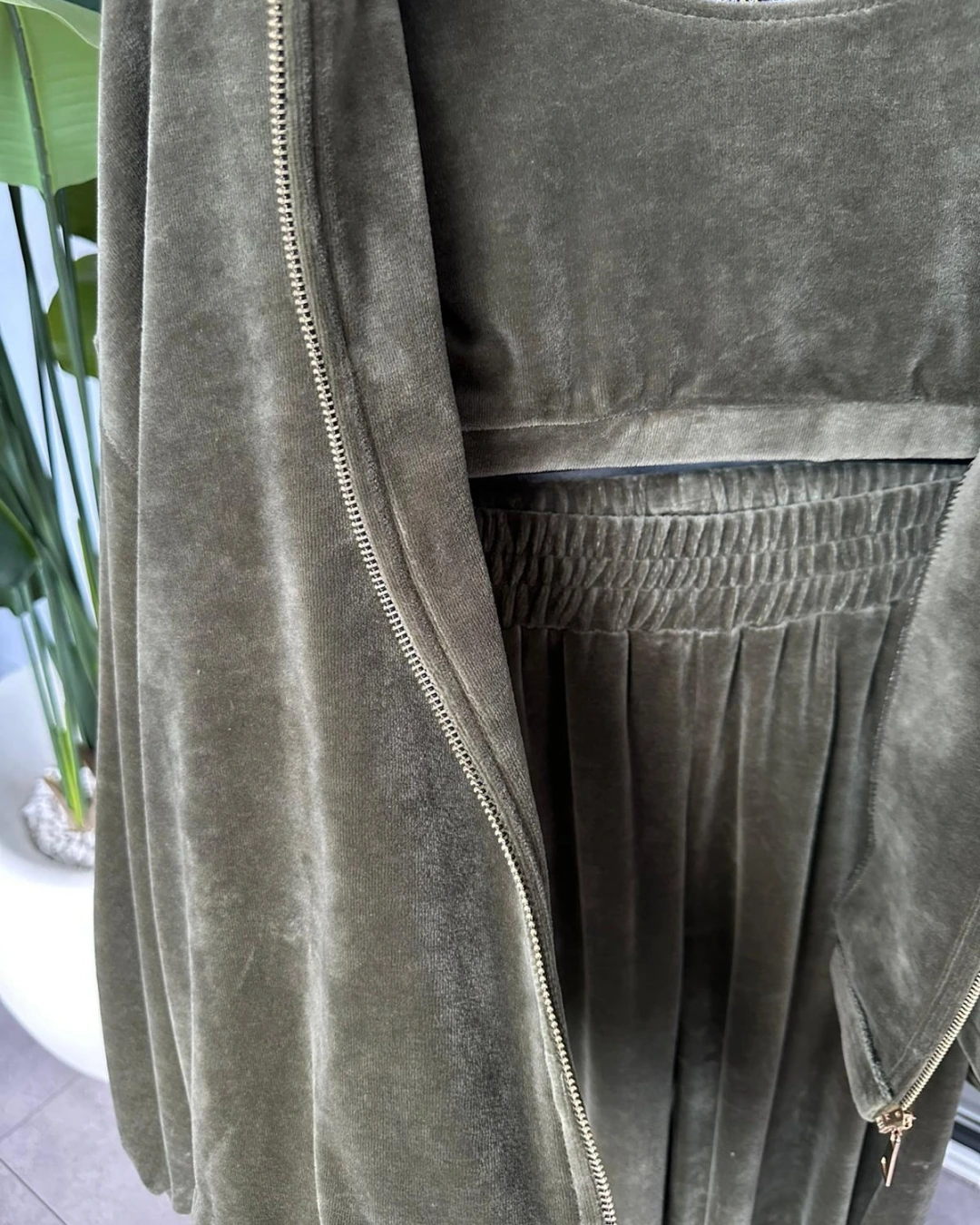 HAKİ KADİFE ÜÇLÜ TAKIM