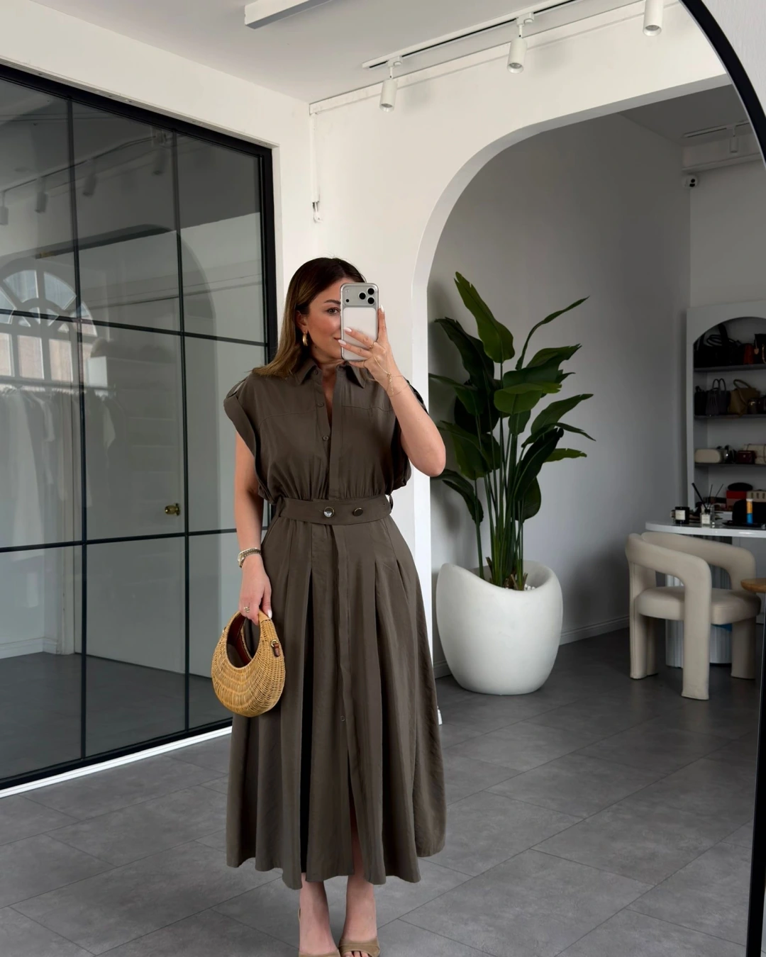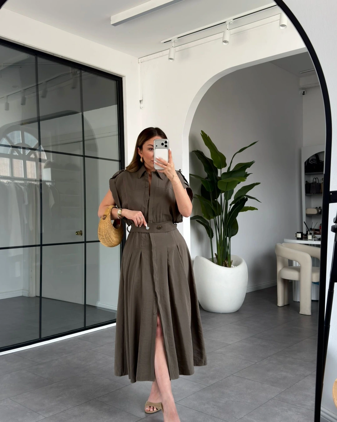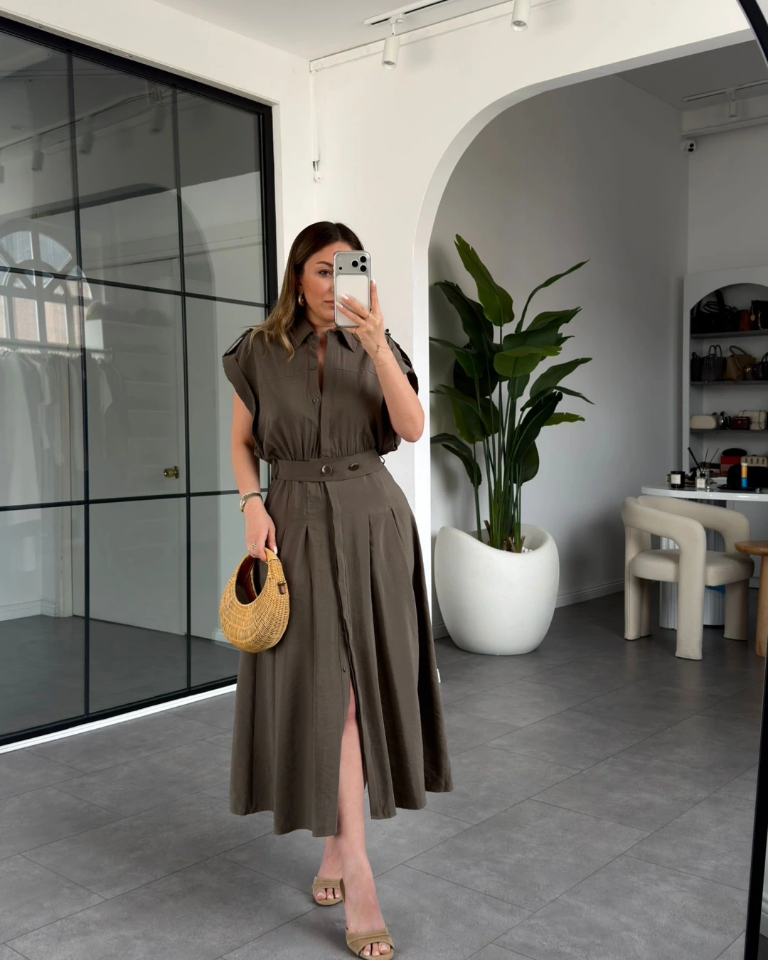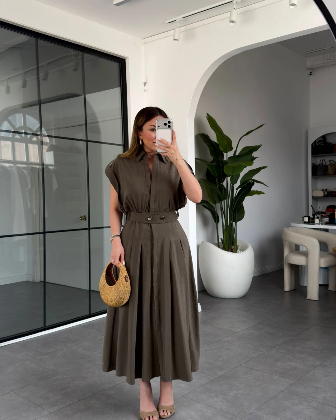 HAKİ KEMERLİ DÜŞÜK KOL ELBİSE 268262