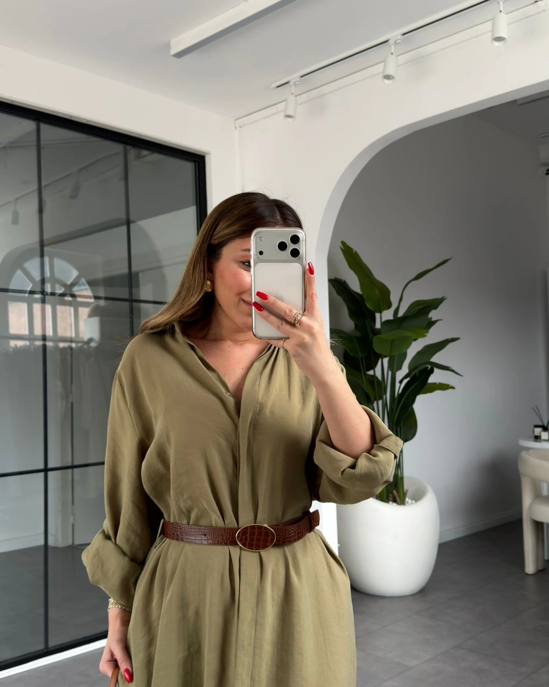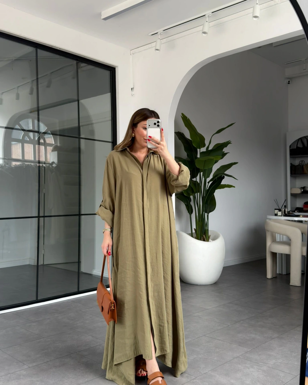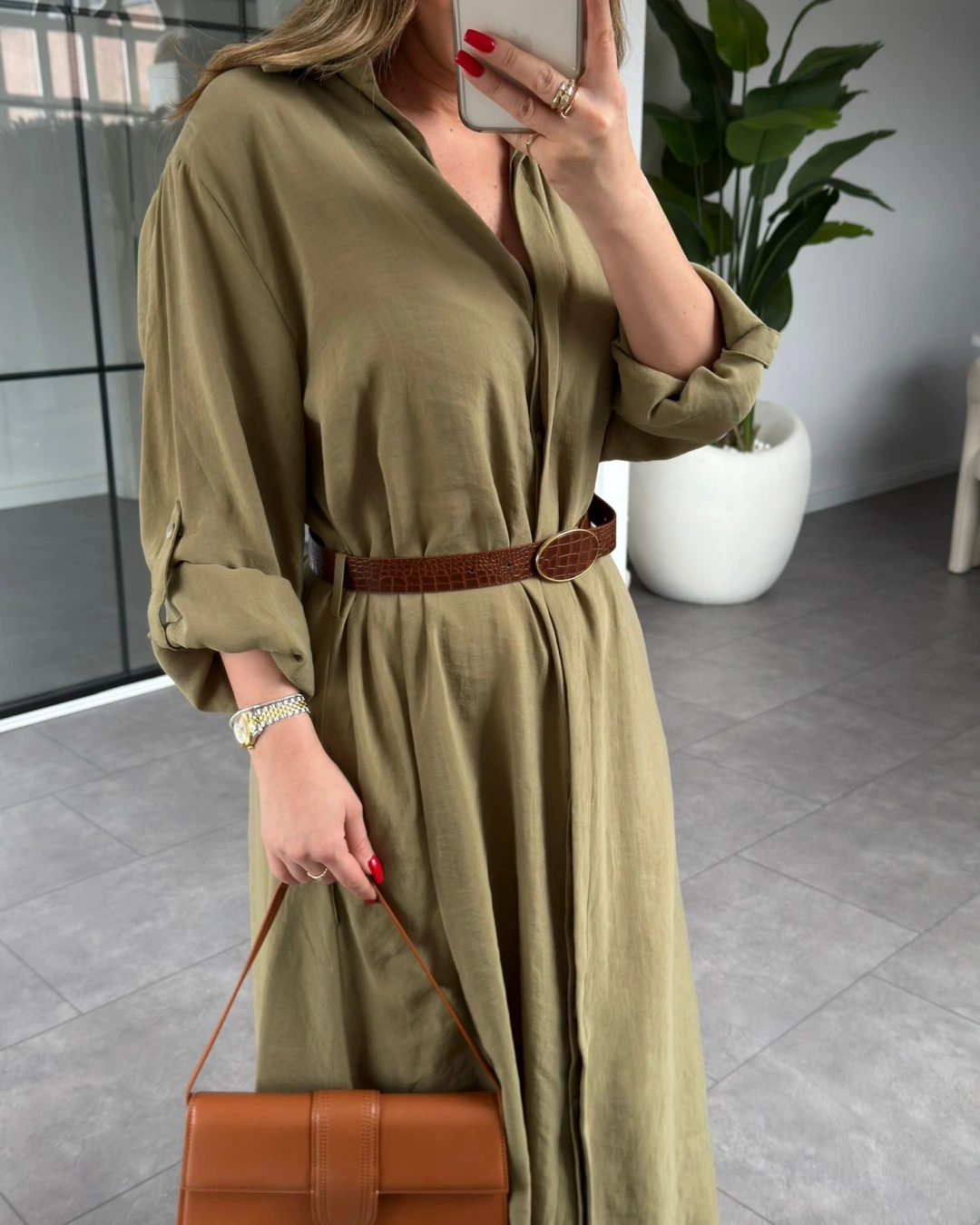 HAKİ KEMERLİ PREMİUM KALİTE MODAL GÖMLEK ELBİSE 3270