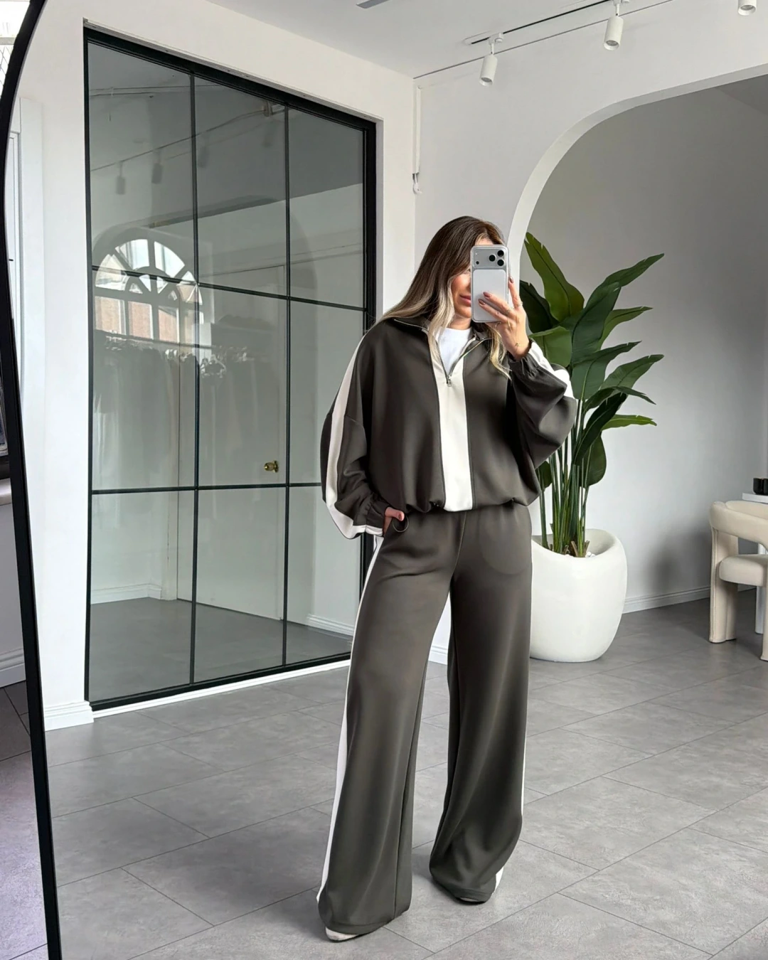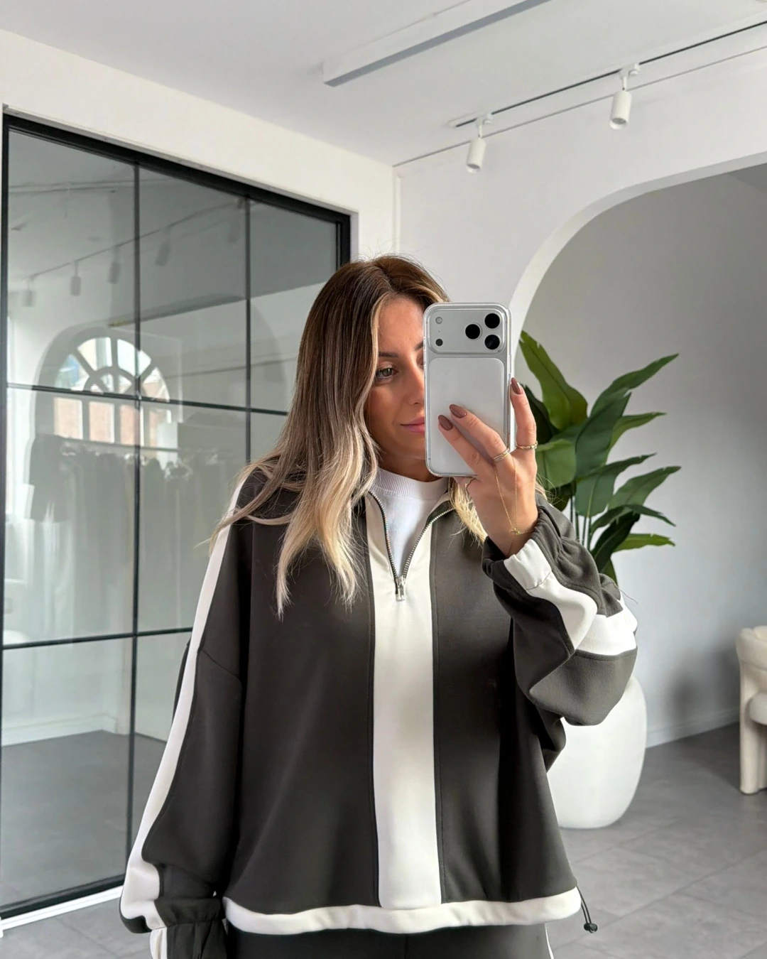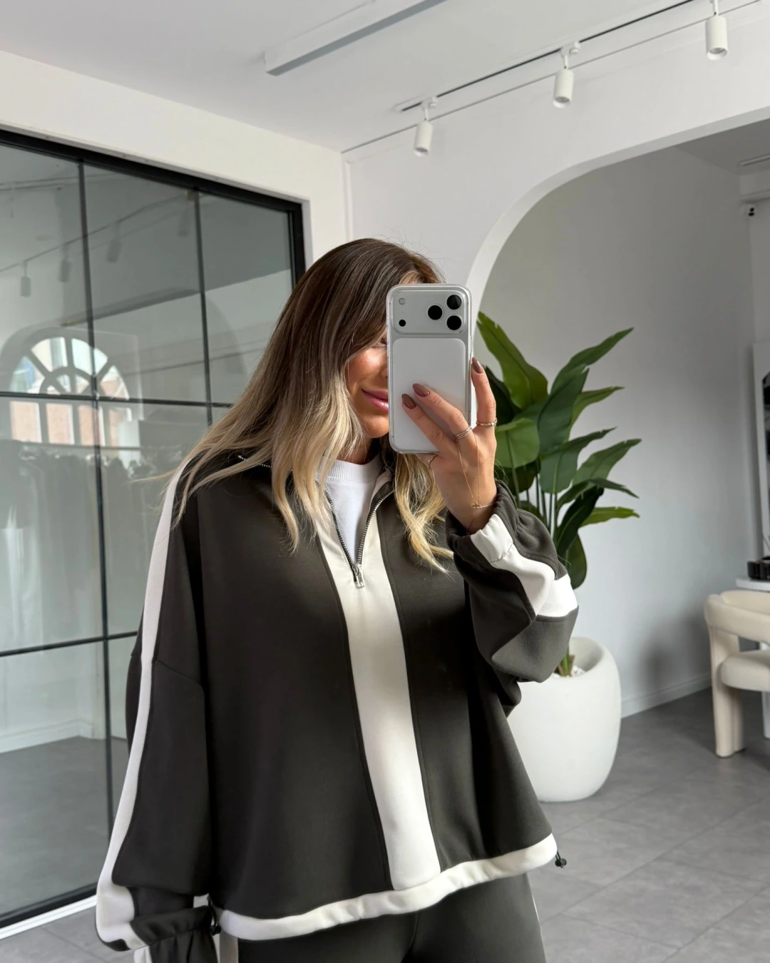 HAKİ KREM ŞERİT DETAYLI MODAL TAKIM